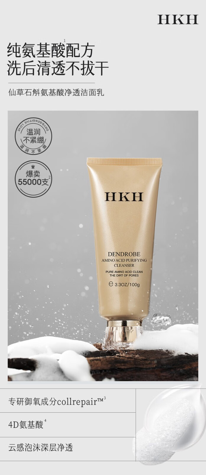 HKH小金管16重氨基酸洗面奶保湿洁面乳男女士深层清洁【效期26年3月 100g