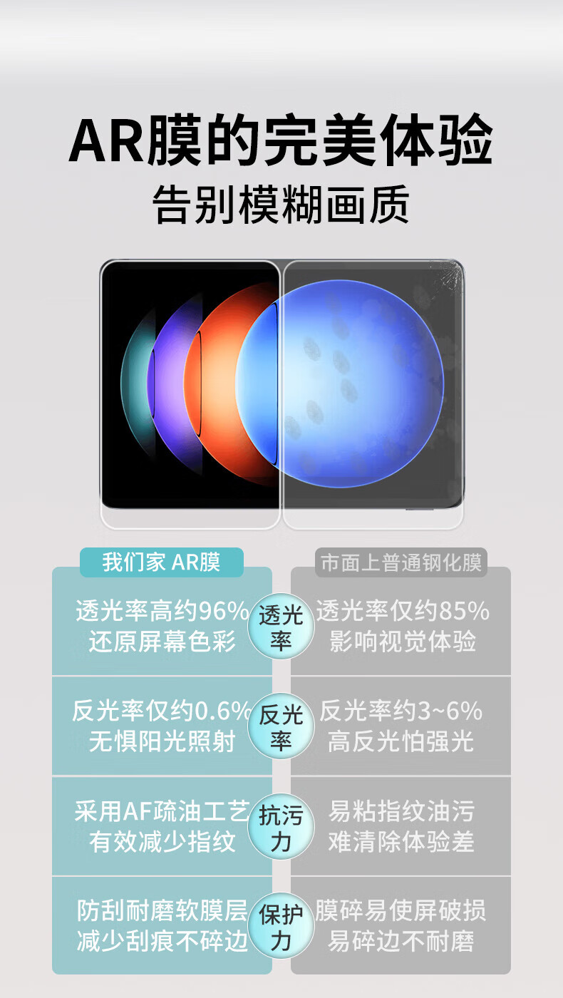 莞膜适用小米平板保护膜AR增透降反射高清防摔屏幕贴膜3A类纸膜 贴合式【AR膜】超清增透降低反光 小米平板6 / 6 Pro 11寸