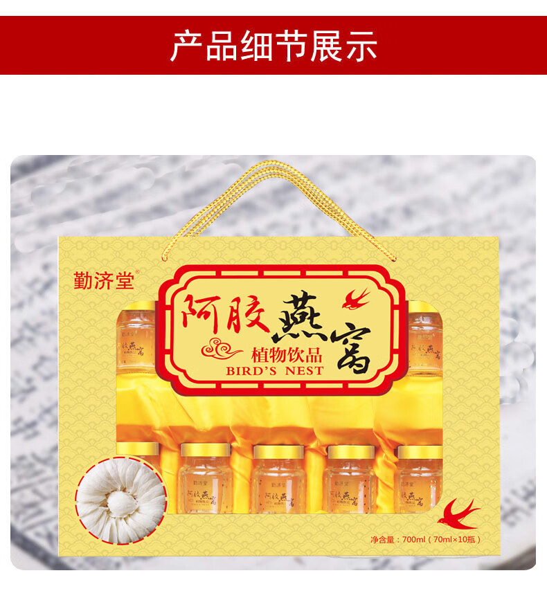 勤济堂礼盒 阿胶燕窝礼盒 即食燕窝 开盖即食 1礼盒(10瓶)
