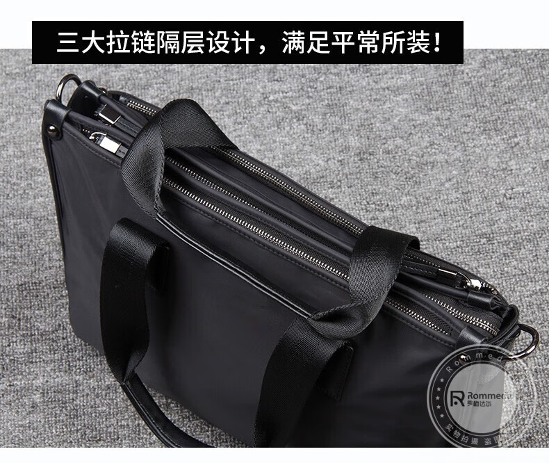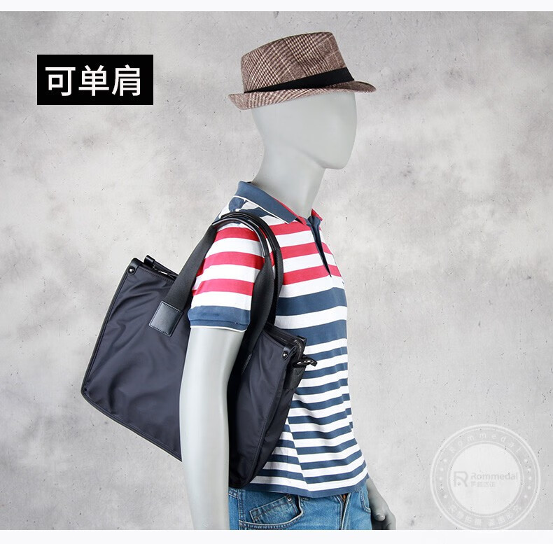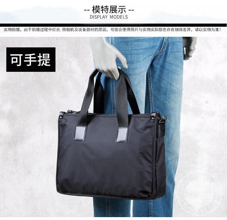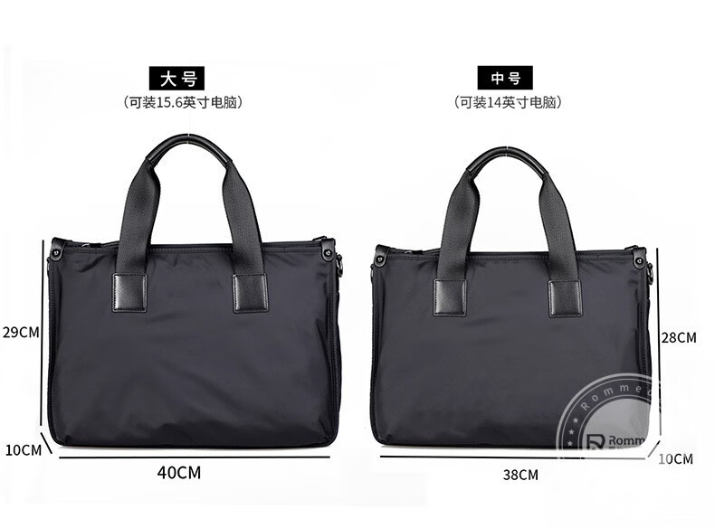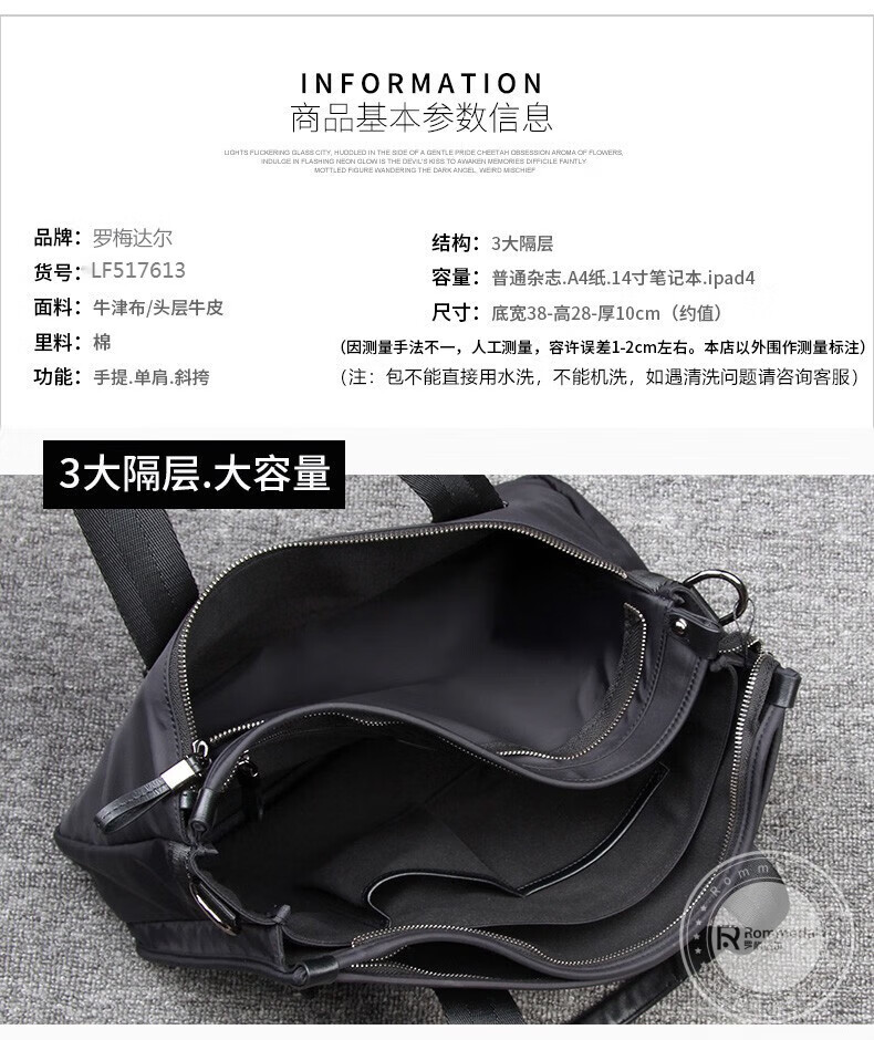罗梅达尔 商务公文包男手提包休闲包男士出差手拎包时尚简约单肩包电脑包 黑色大号