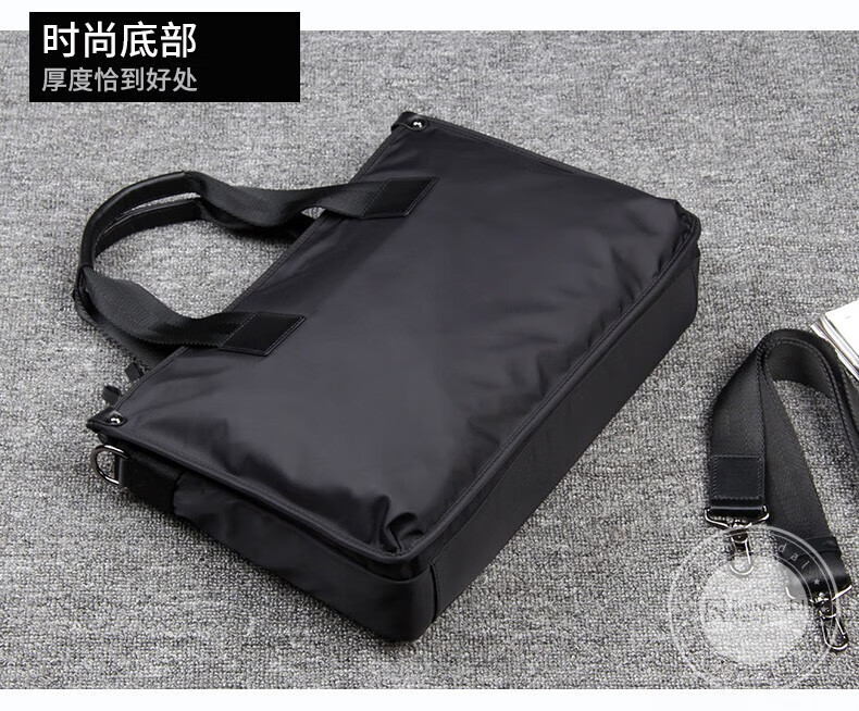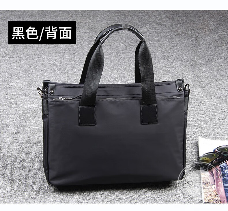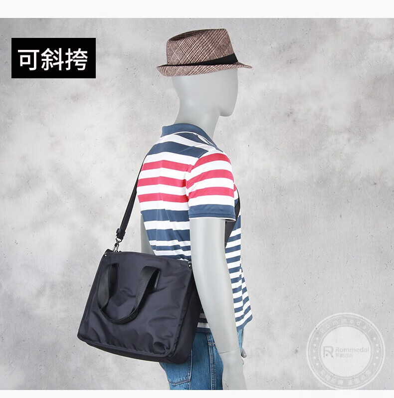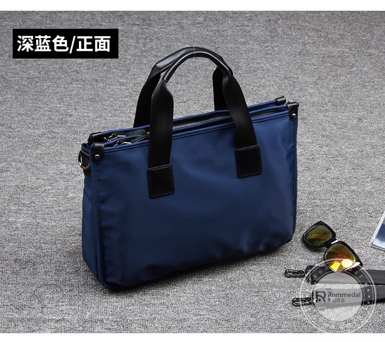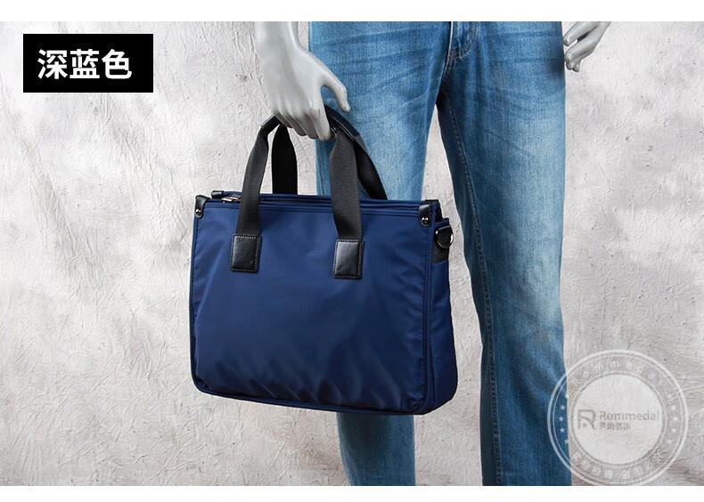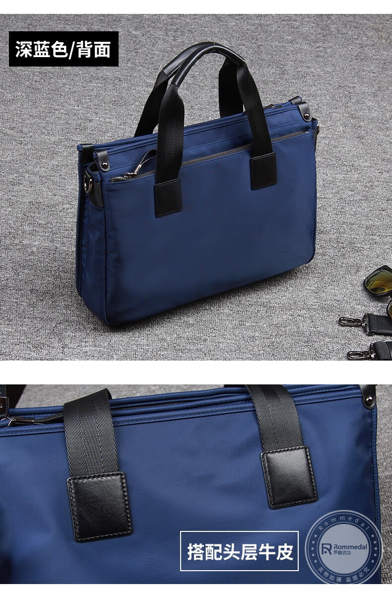 罗梅达尔 商务公文包男手提包休闲包男士出差手拎包时尚简约单肩包电脑包 黑色大号