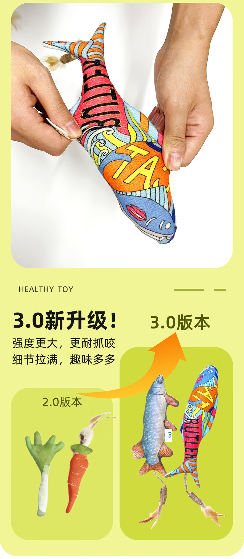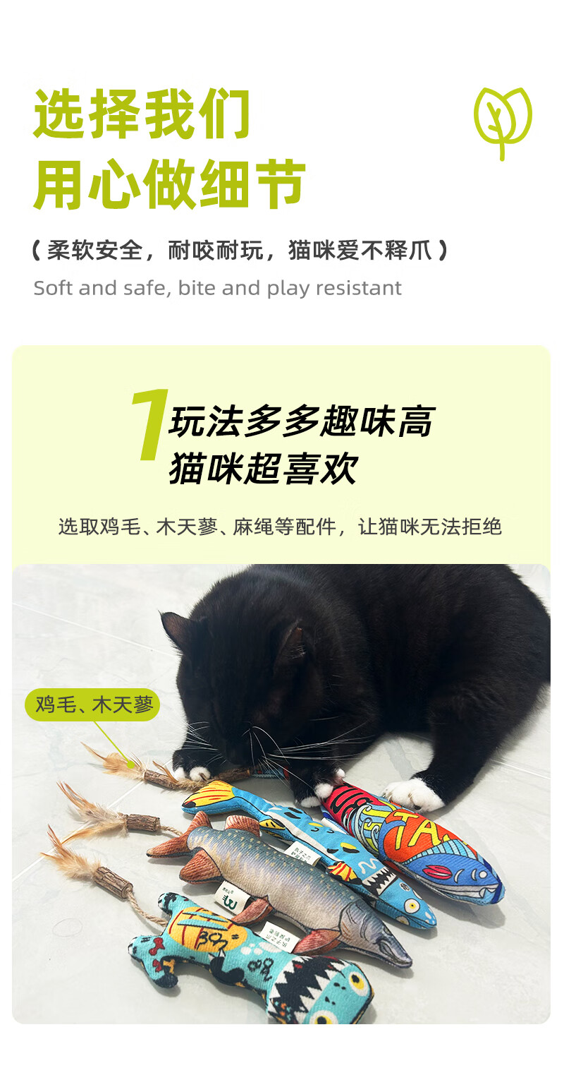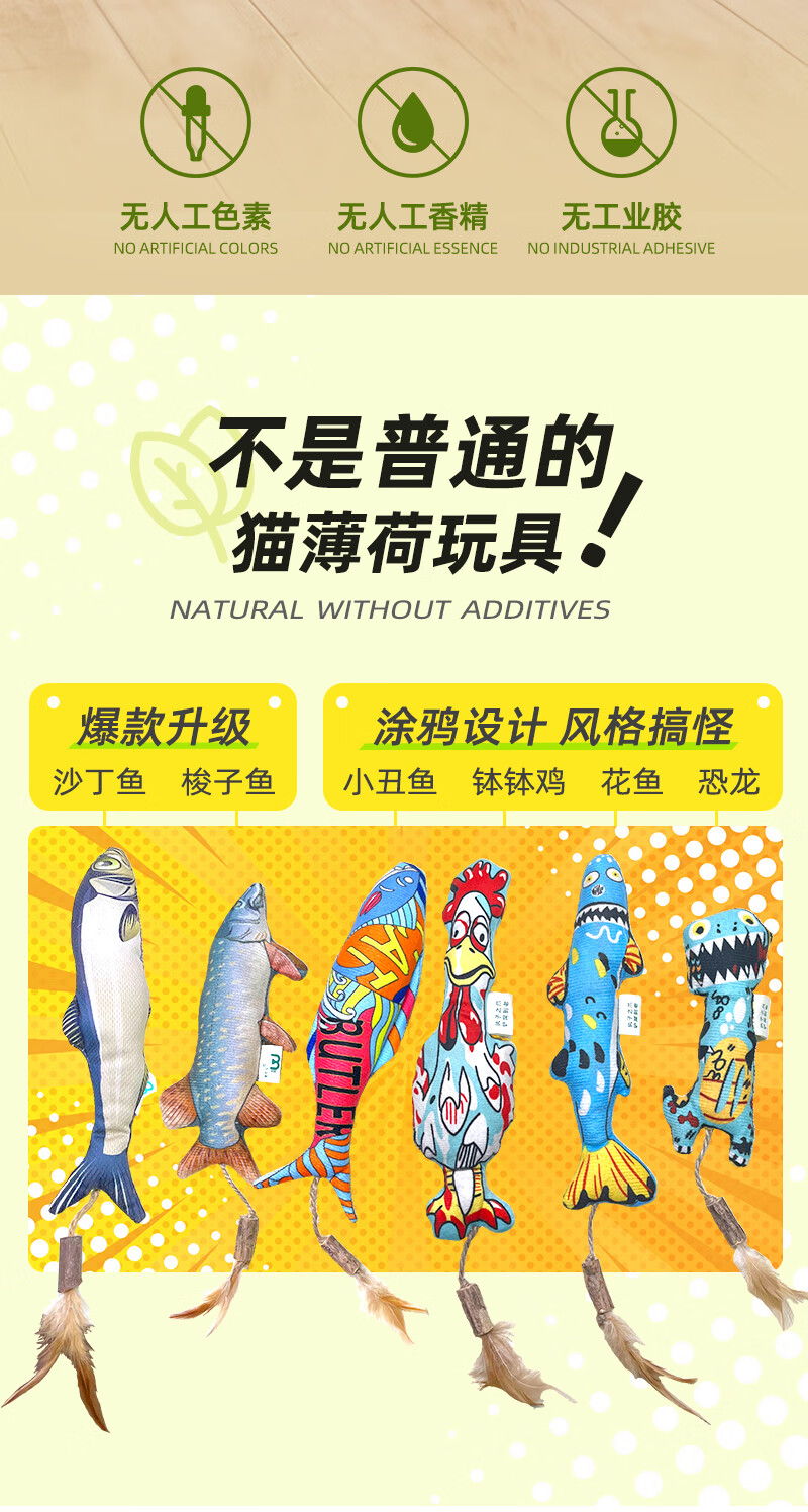 贪吃马猫薄荷玩具仿真猫薄荷鱼猫咪自嗨神器逗猫磨牙幼猫玩具羽毛木天蓼 2.0大葱