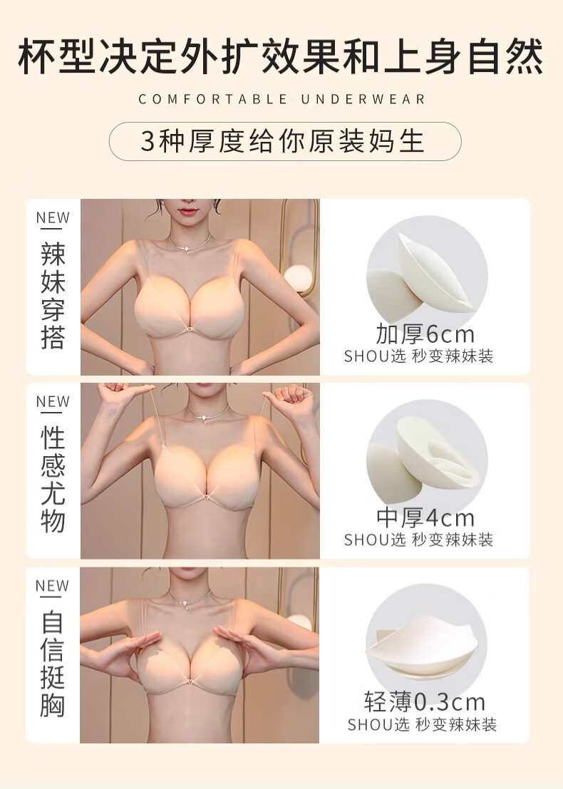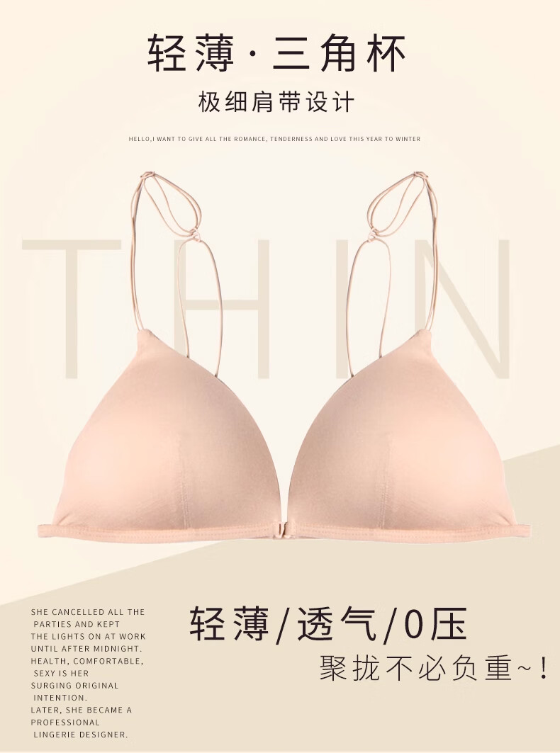 泊莉小姐粉底液隐形超细肩带内衣文胸女无痕肤色美背肉色配吊带裙专用夏季 麦芽肤(0.3CM+6CM胸垫) L 【建议36/80ABC】