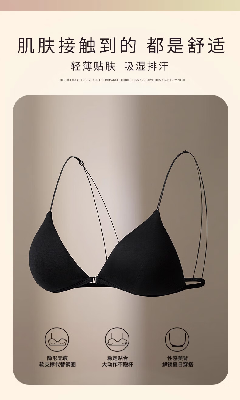 甜蜜邂逅2件装文胸女美背无痕运动内衣前扣式胸罩调整型无钢圈聚拢收副乳 2件装(黑+肤) 3XL=90BCD(140-160斤)