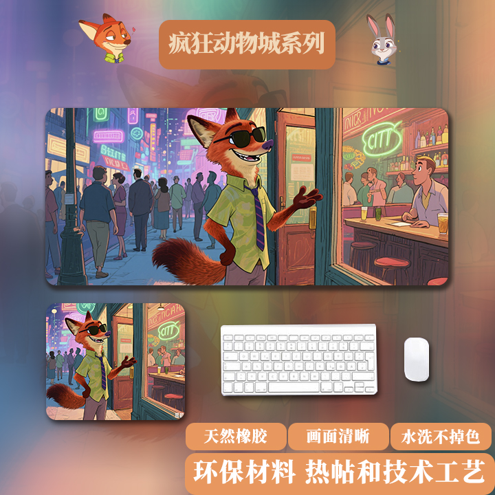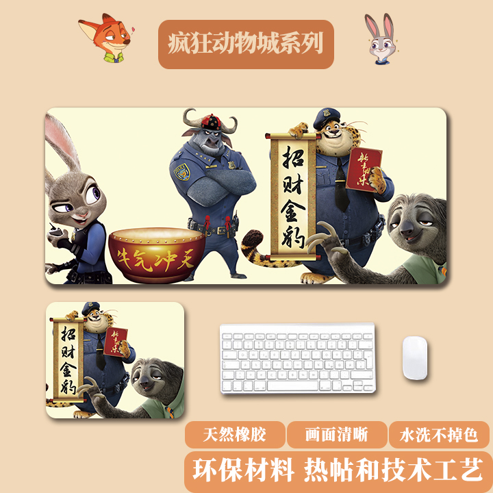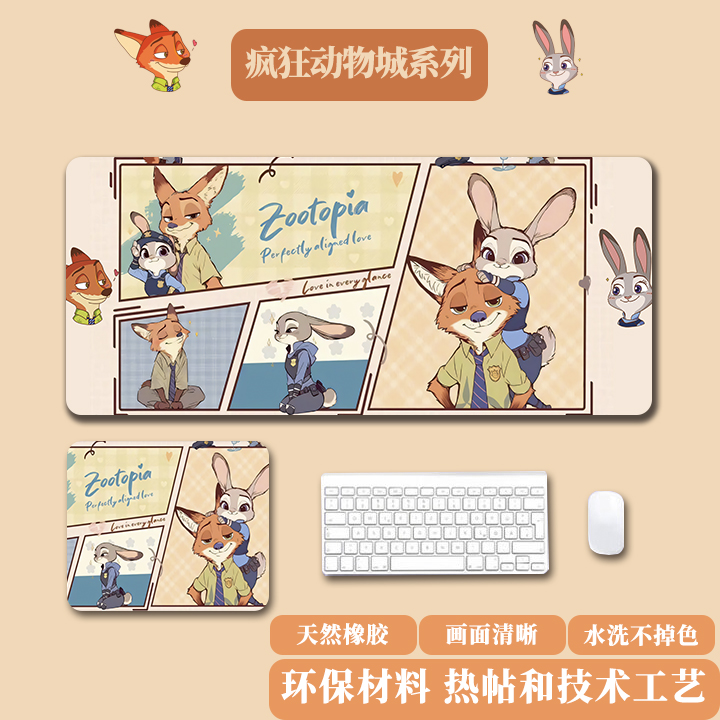 无品牌【厂家直发】动物城鼠标垫超大朱迪尼克宿舍办公护腕桌面 墨镜尼克 300*800*2mm(精密锁边)大号