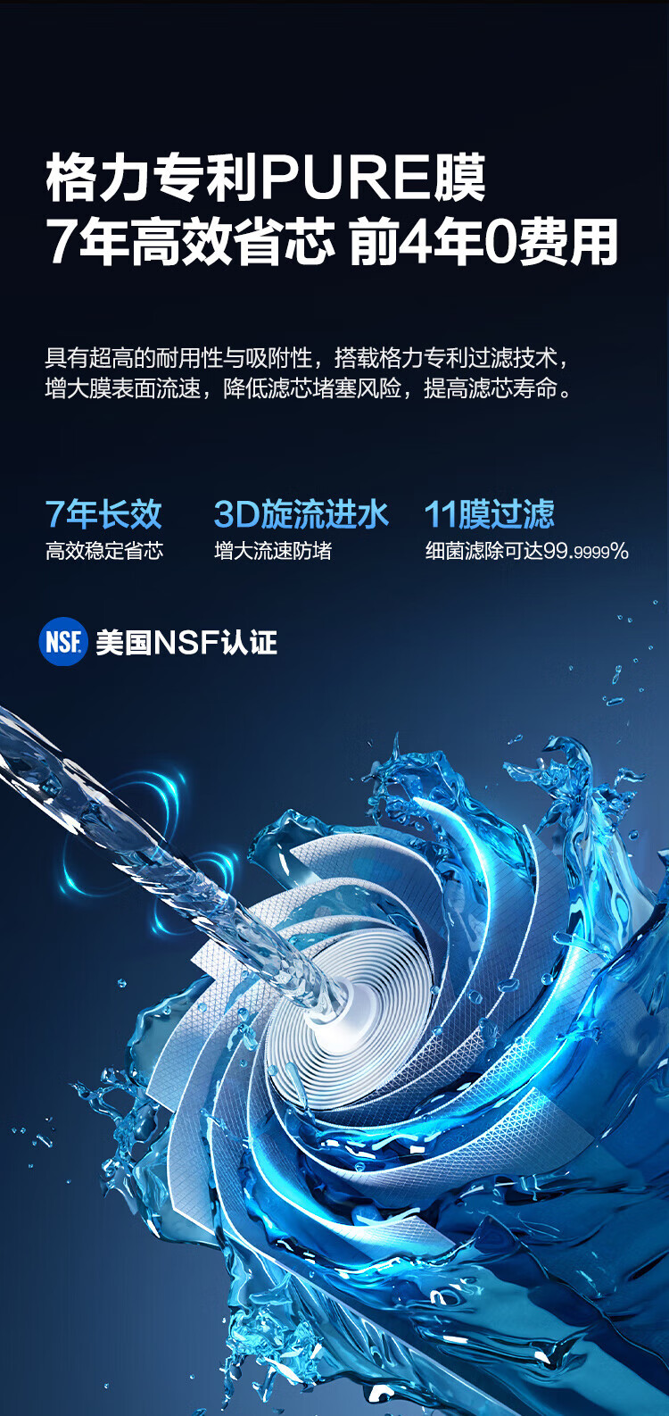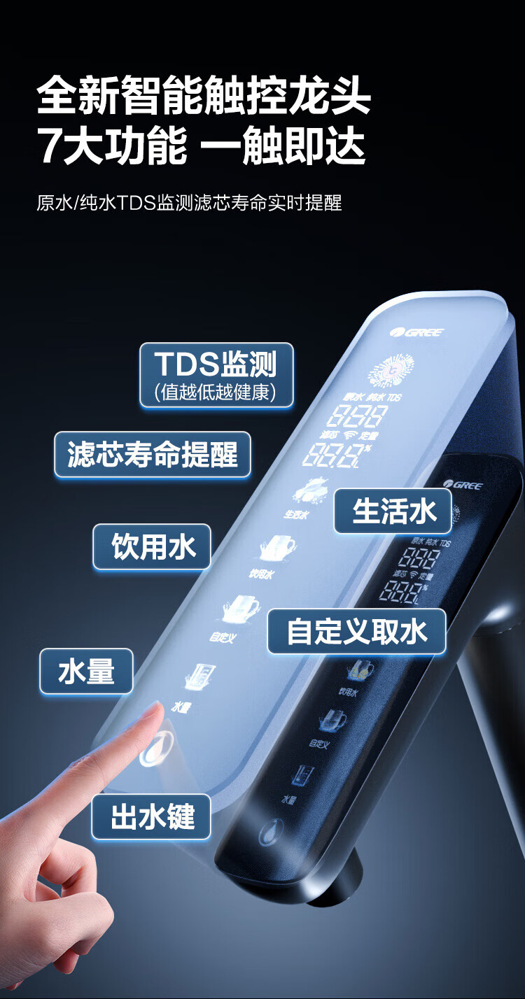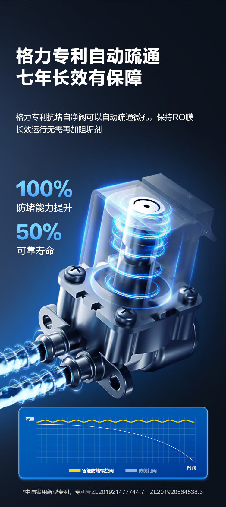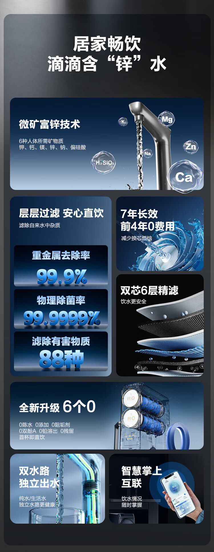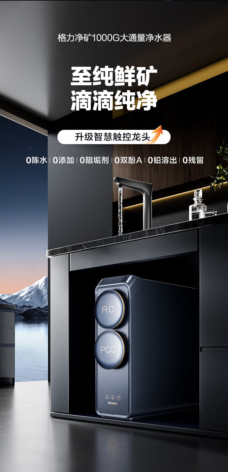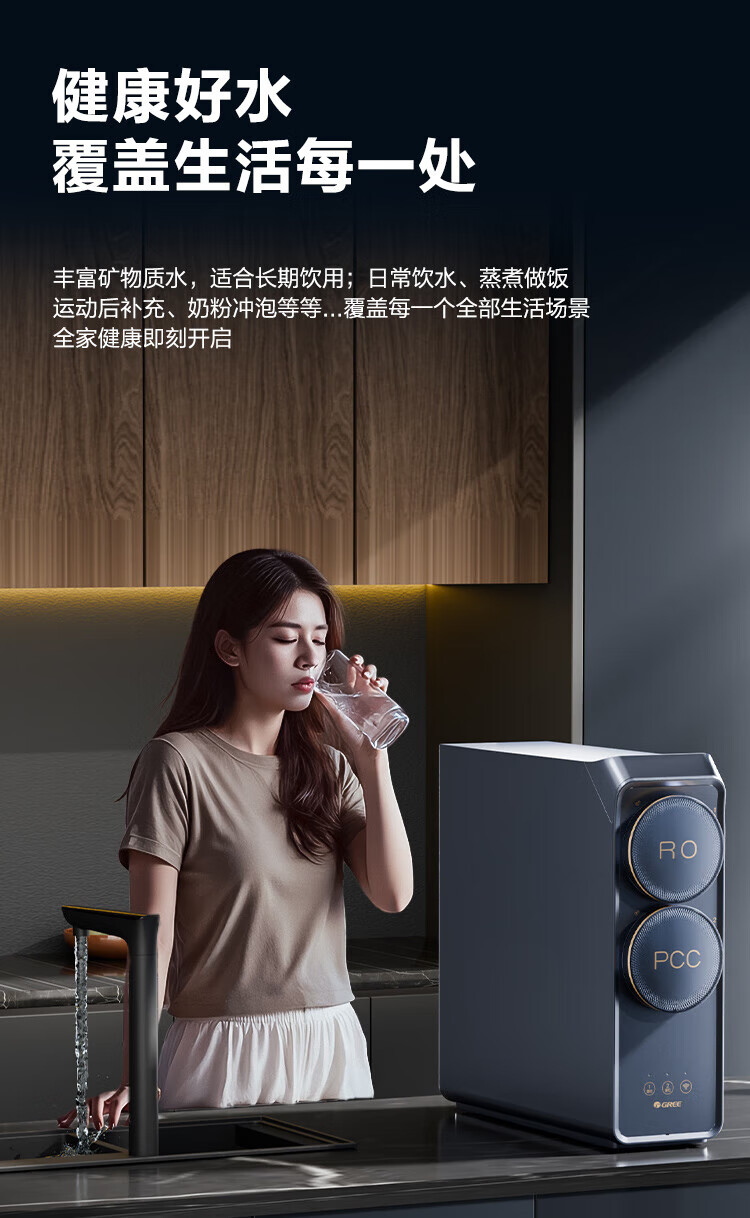格力(GREE)净水机鲸涛锌矿净水器双水直饮1000G7年RO矿物质0阻垢剂 反渗透厨下式净饮机2X720S