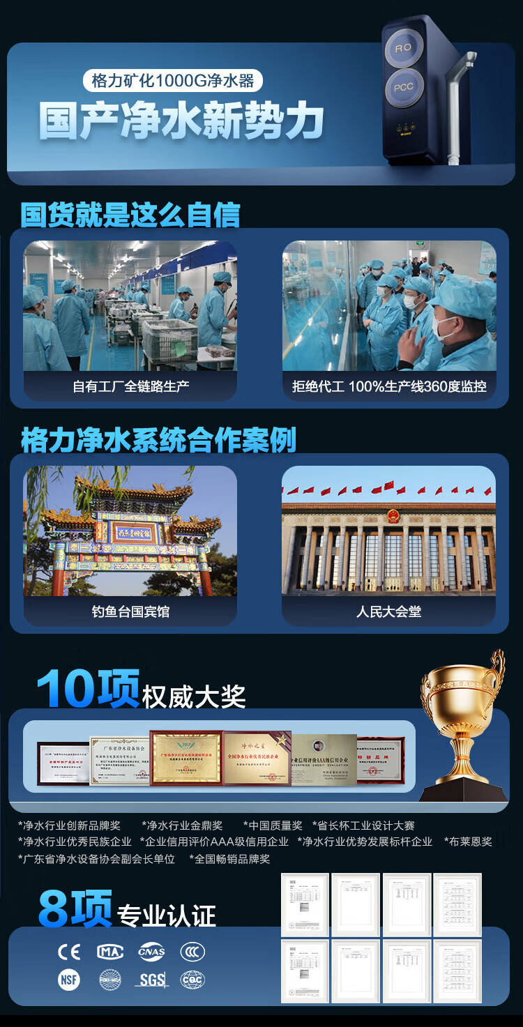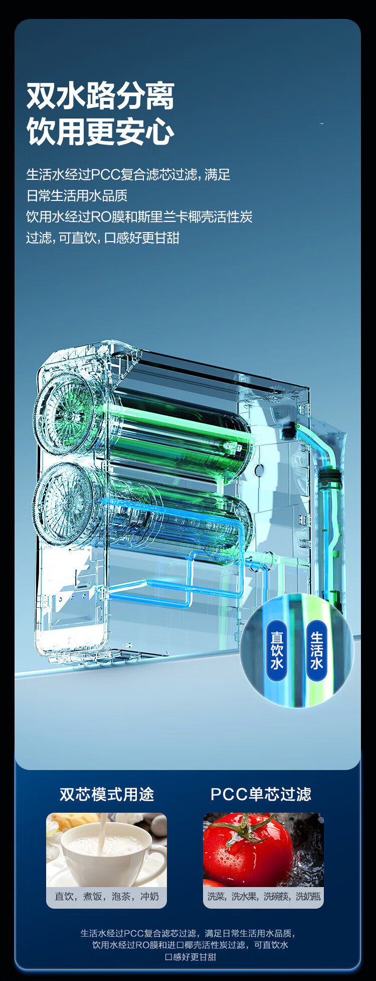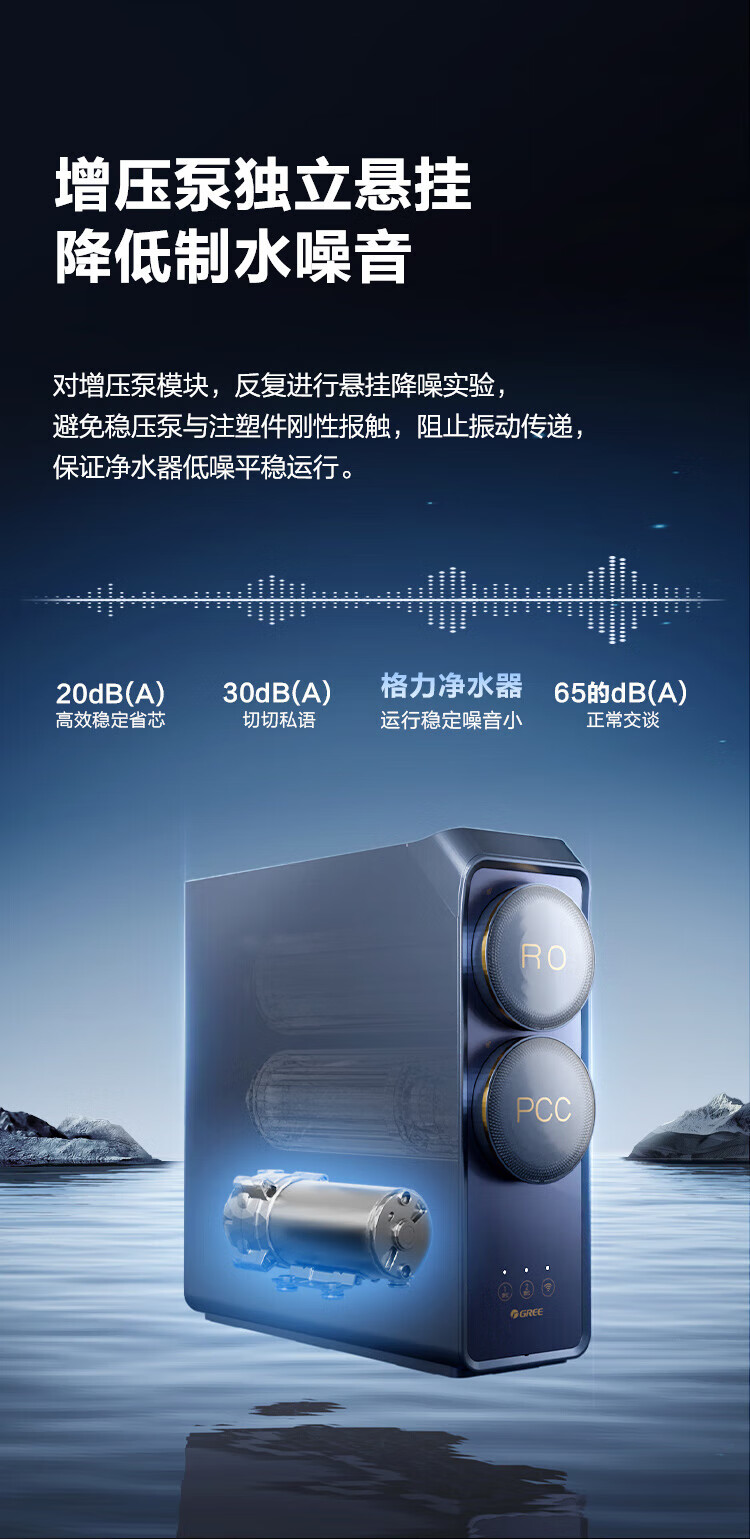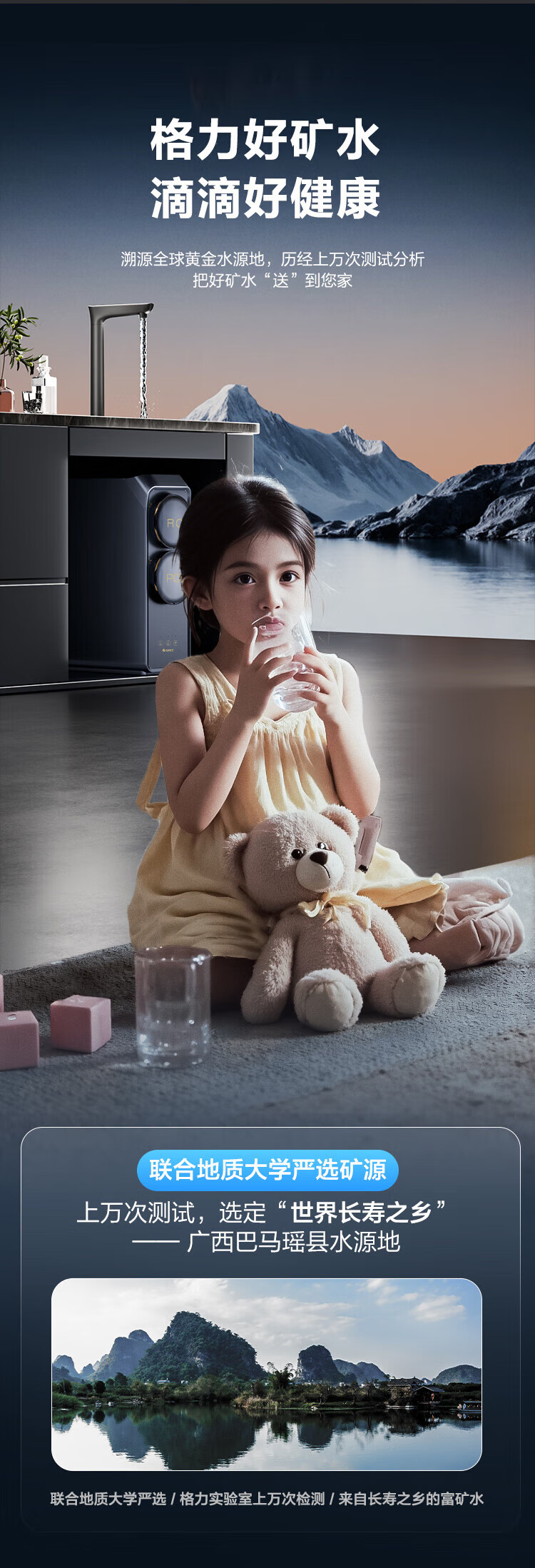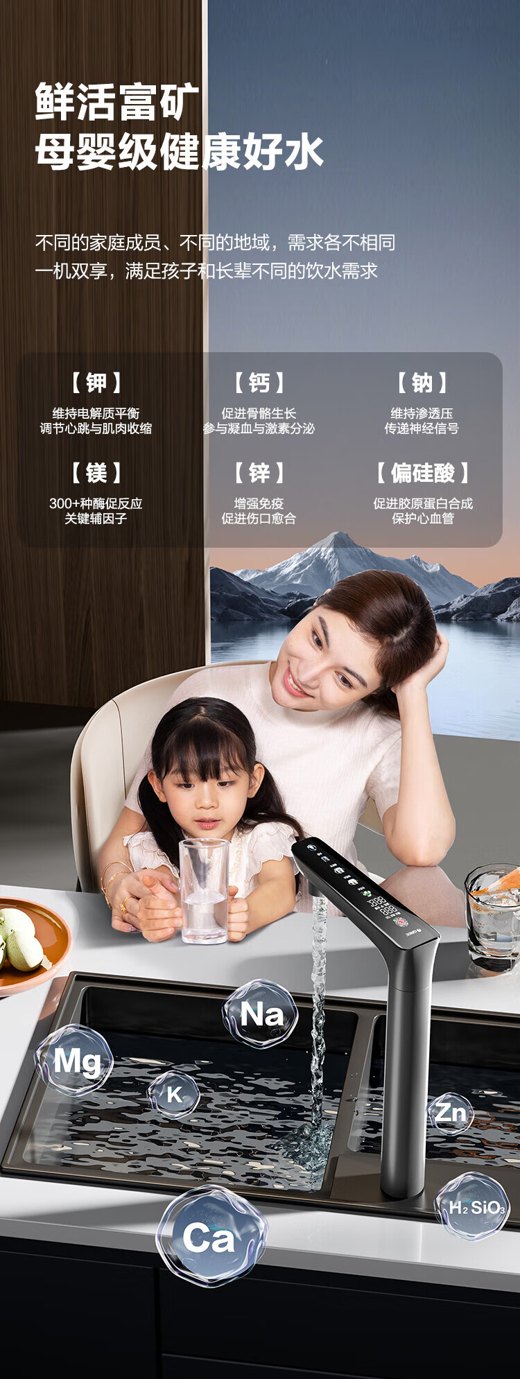 格力(GREE)净水机鲸涛锌矿净水器双水直饮1000G7年RO矿物质0阻垢剂 反渗透厨下式净饮机2X720S