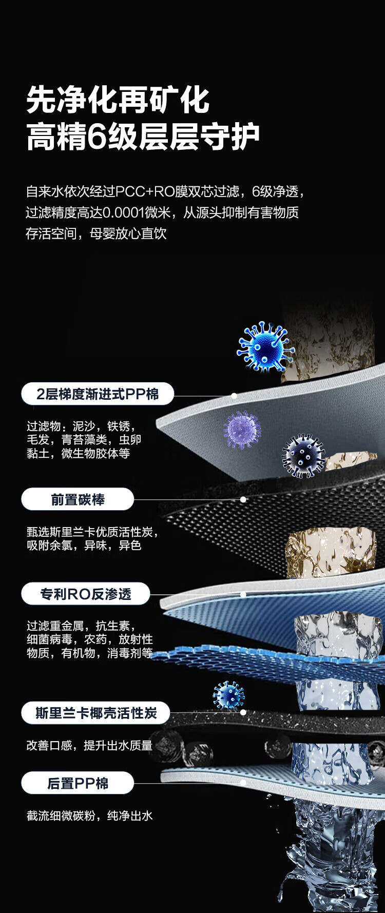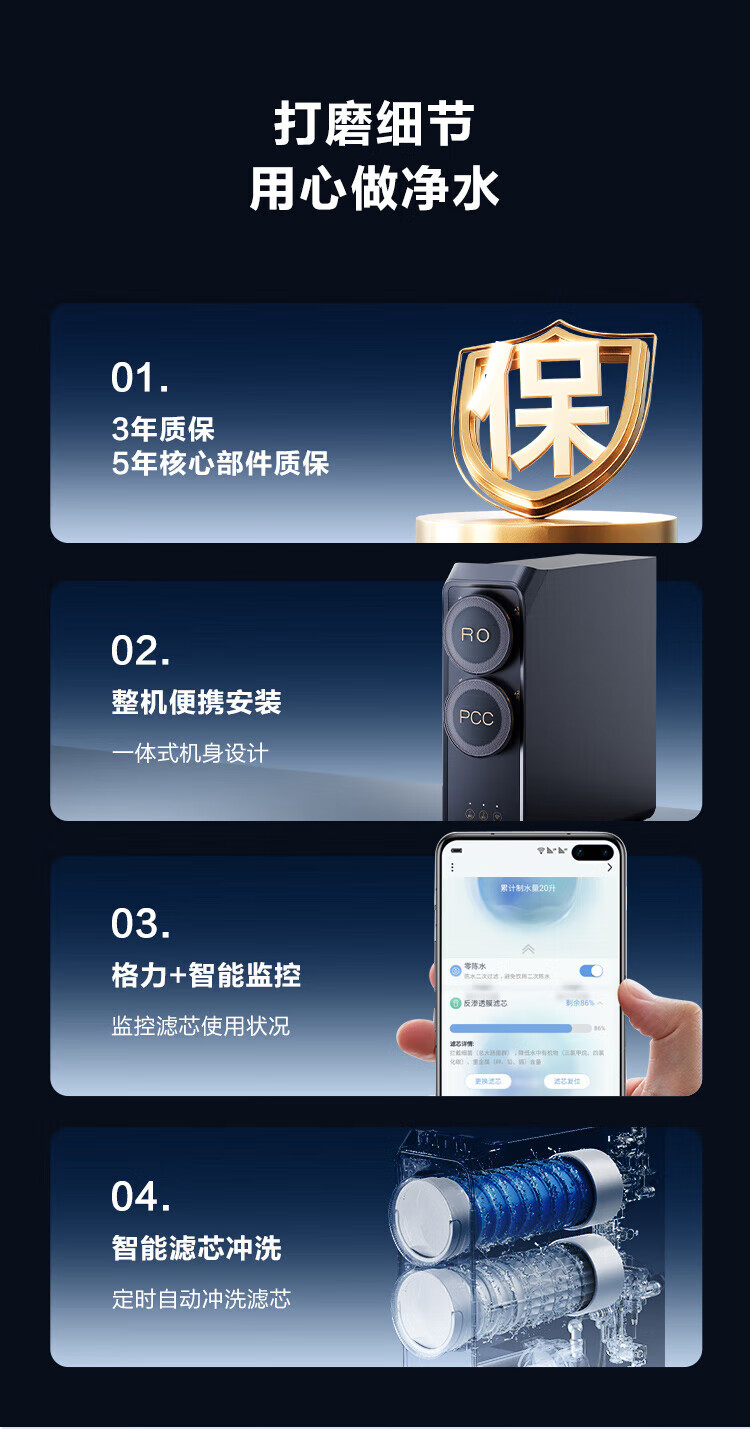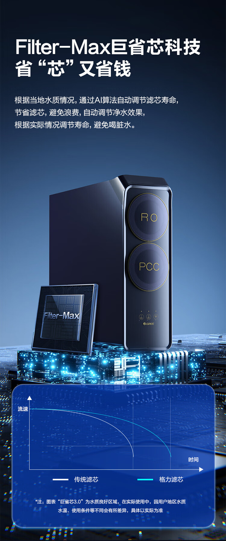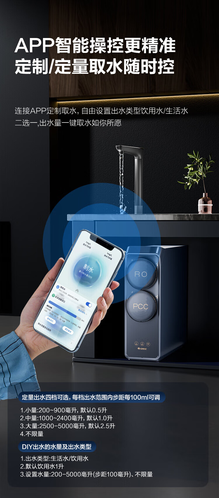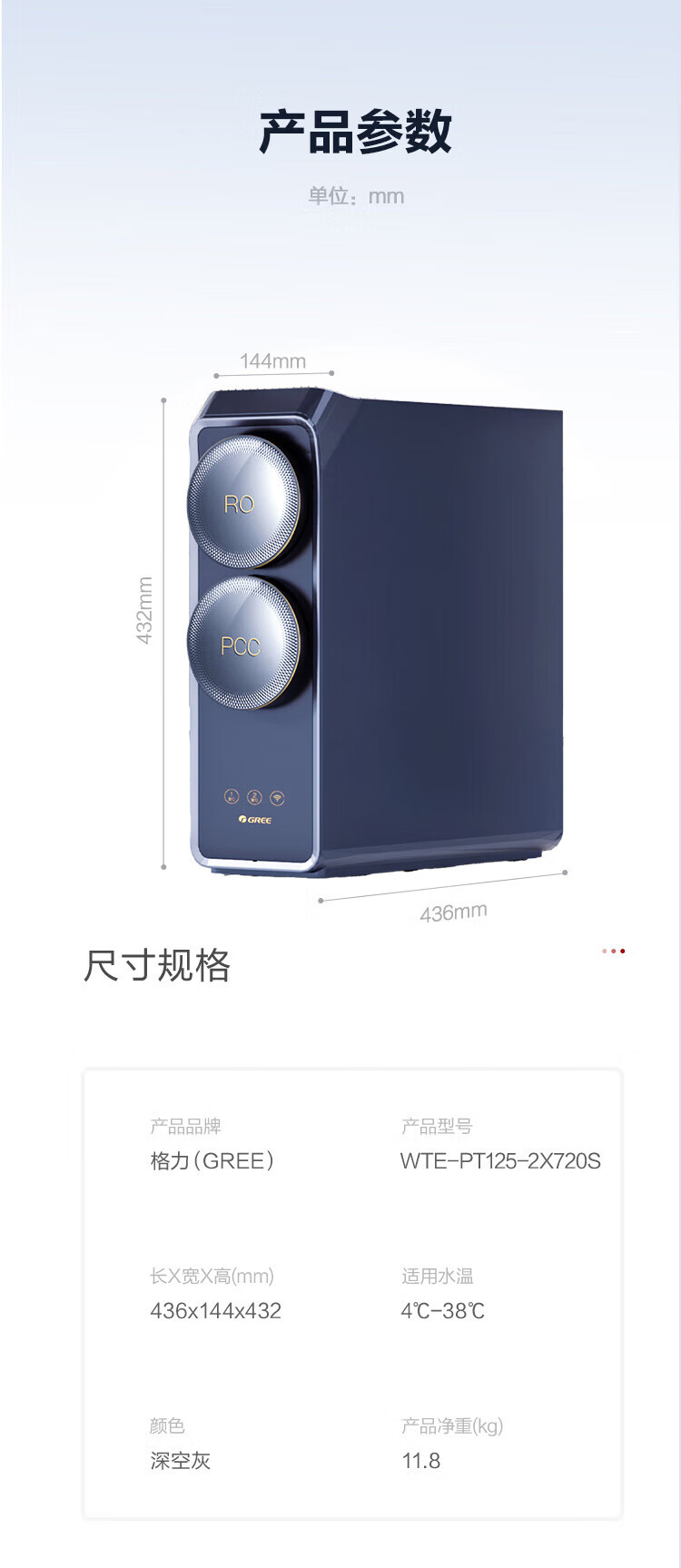 格力(GREE)净水机鲸涛锌矿净水器双水直饮1000G7年RO矿物质0阻垢剂 反渗透厨下式净饮机2X720S