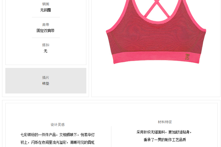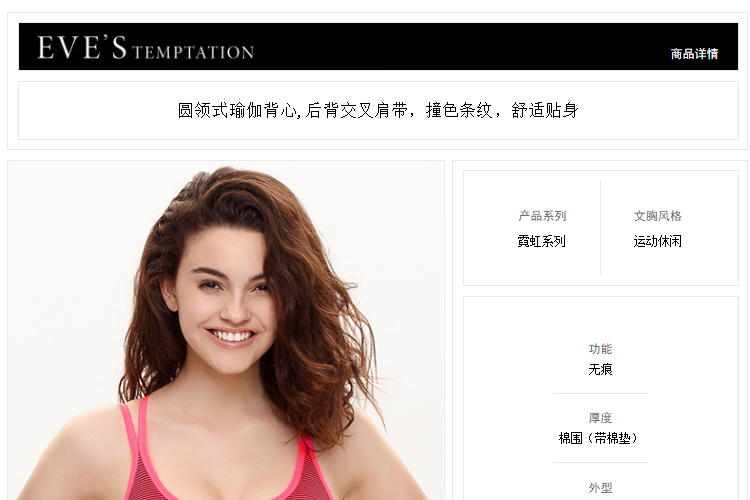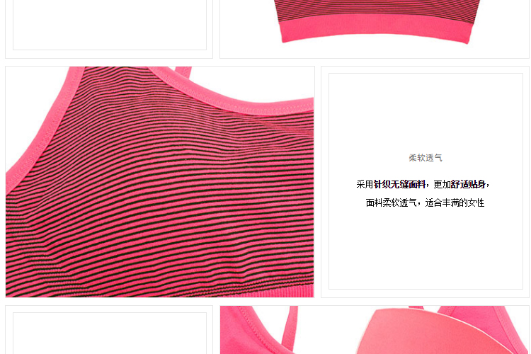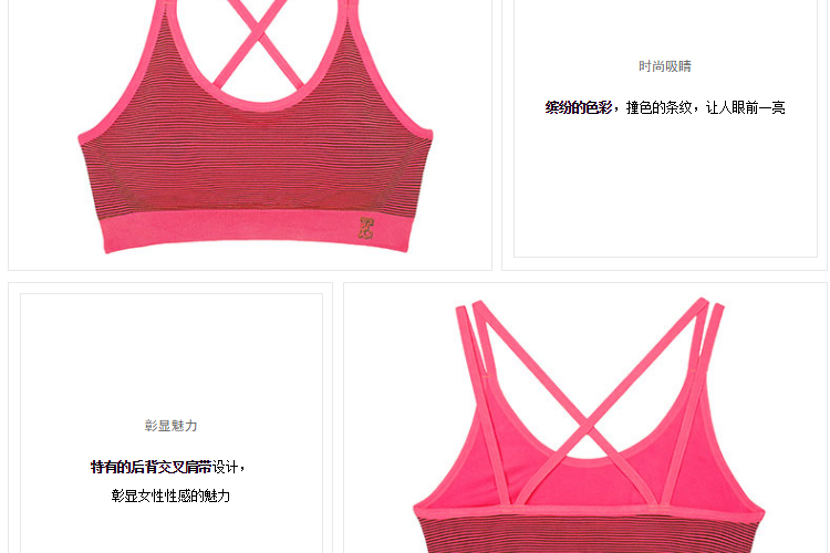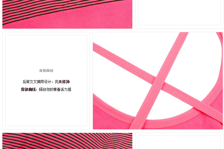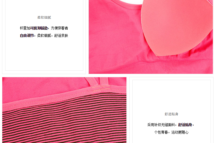 夏娃的诱惑霓虹运动圆领背心式无钢圈无痕美背撞色条纹运动文胸女 玫红色 S 【推荐70B/70C/75A】