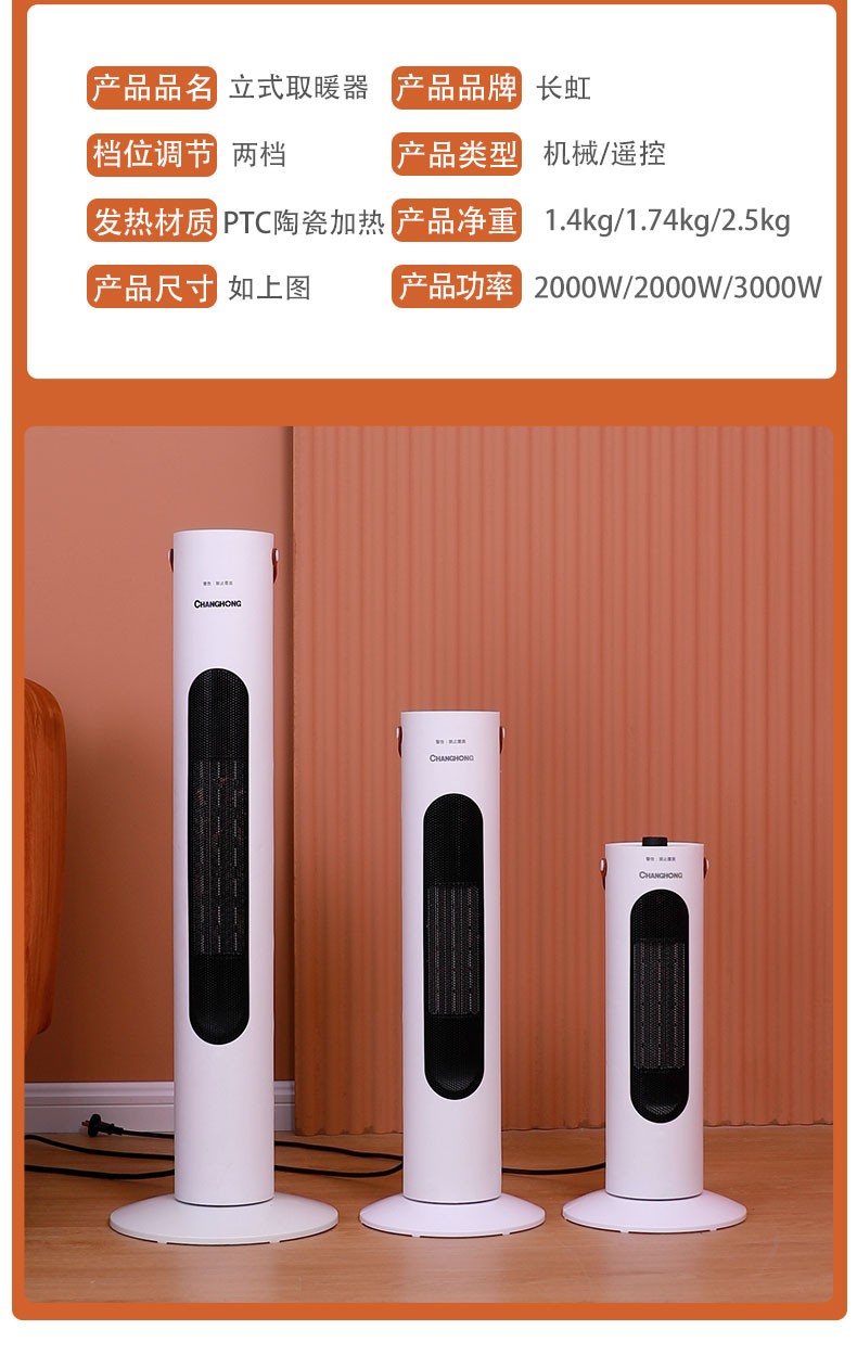 长虹(CHANGHONG) 取暖器立式暖风机台式电暖器电暖气家用塔式立式摇头暖风扇电暖扇暖风电暖炉 豪华立式遥控3000W(摇头款高910mm)