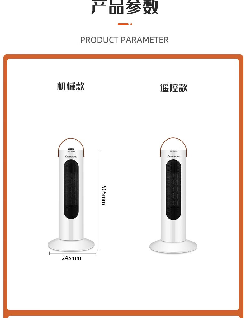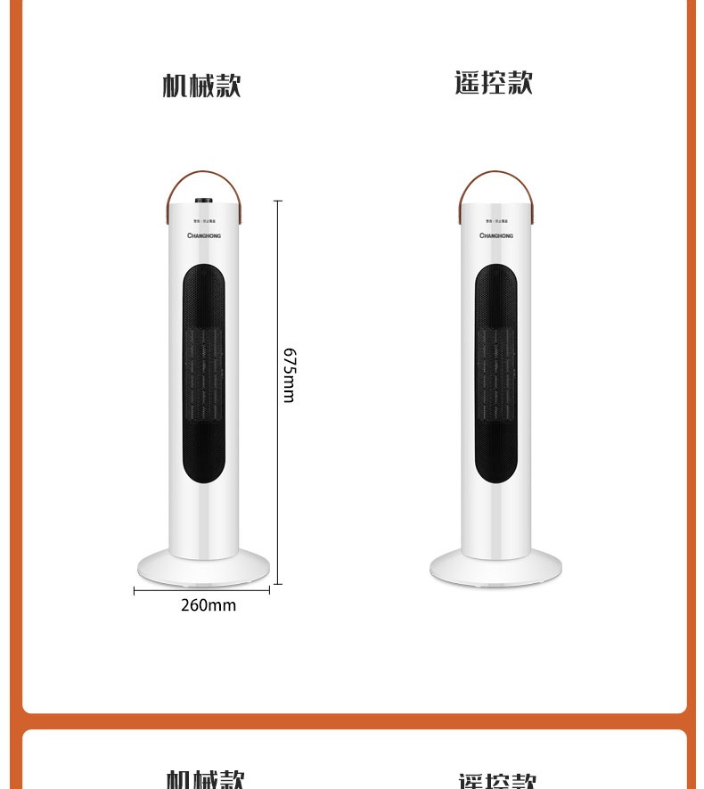 长虹(CHANGHONG)取暖器暖风机电暖气电暖器家用热风机小太阳塔式立式广角办公室卧室 机械标准款【即开即热】 1
