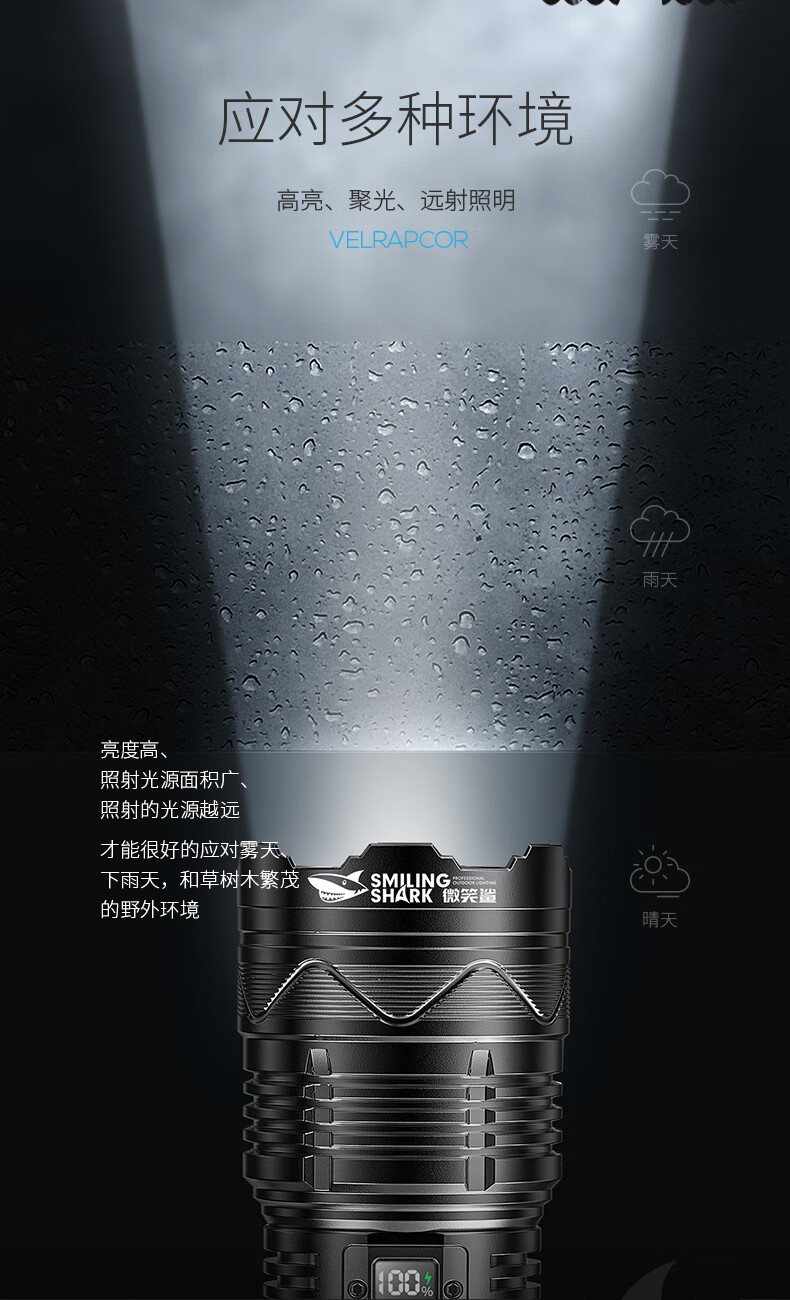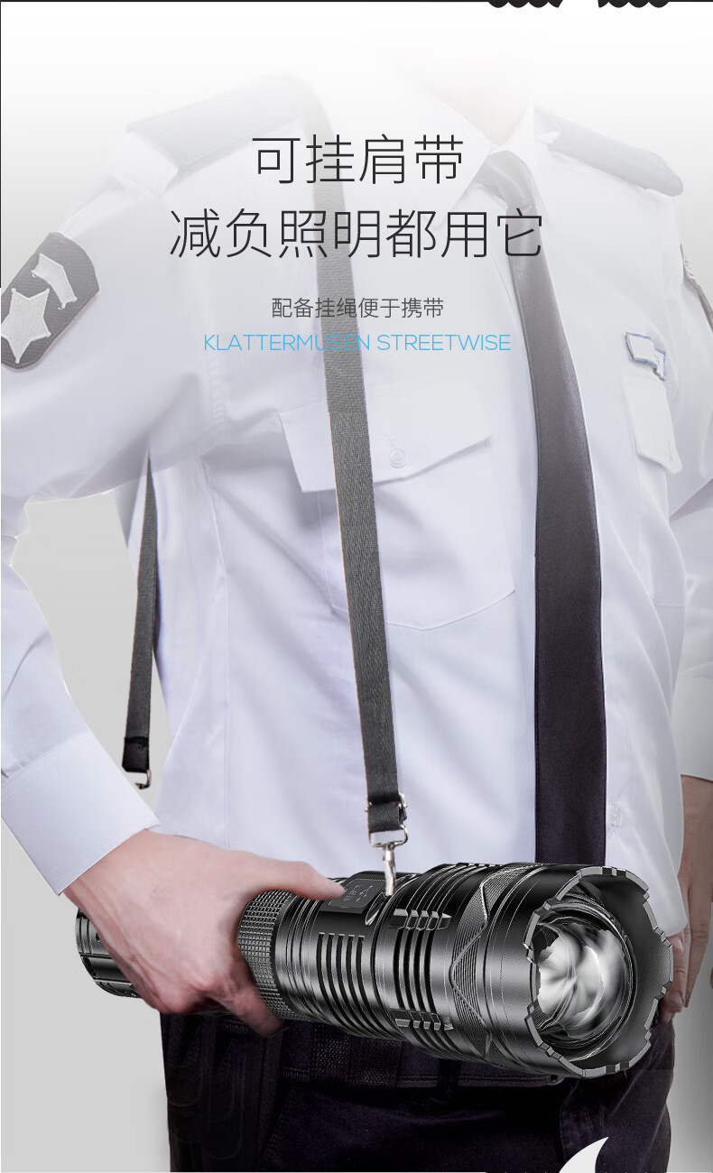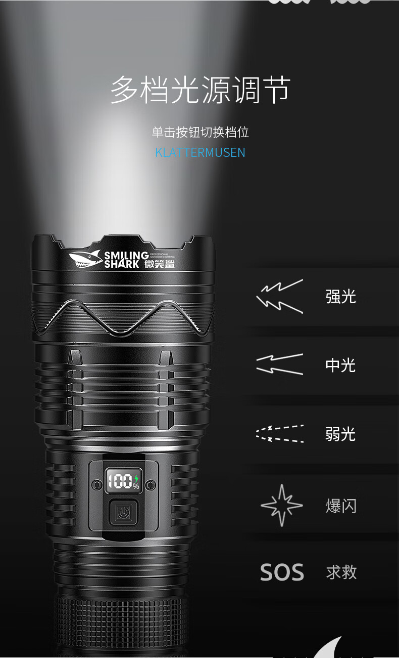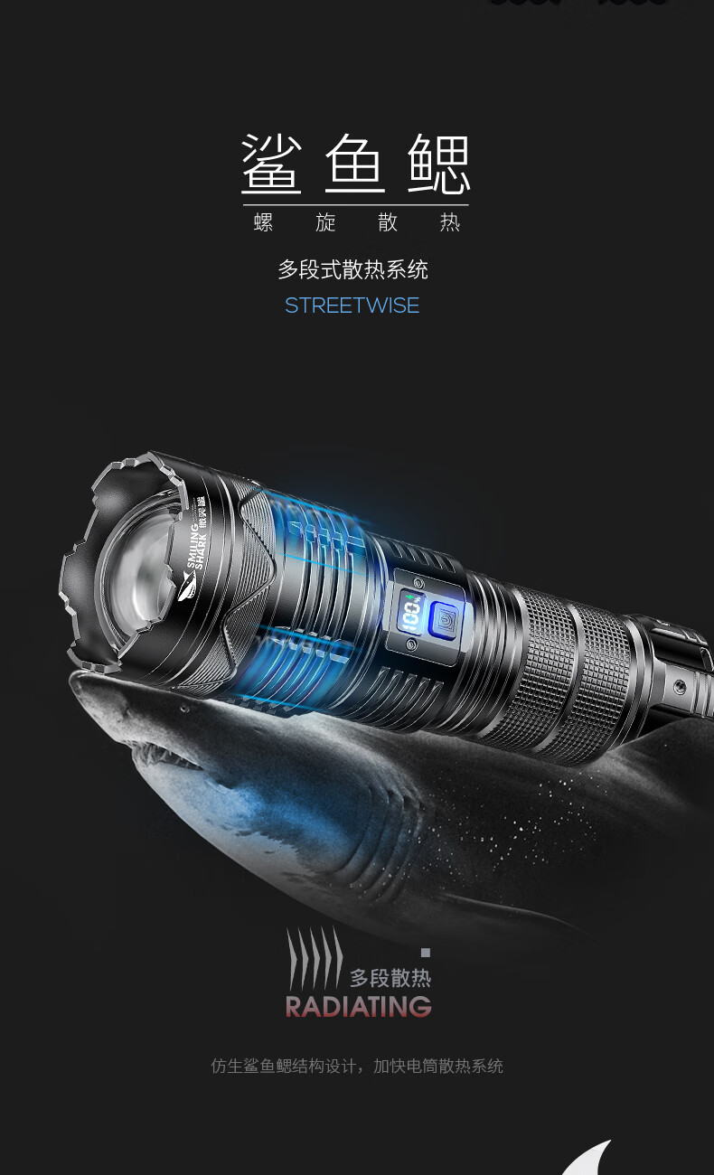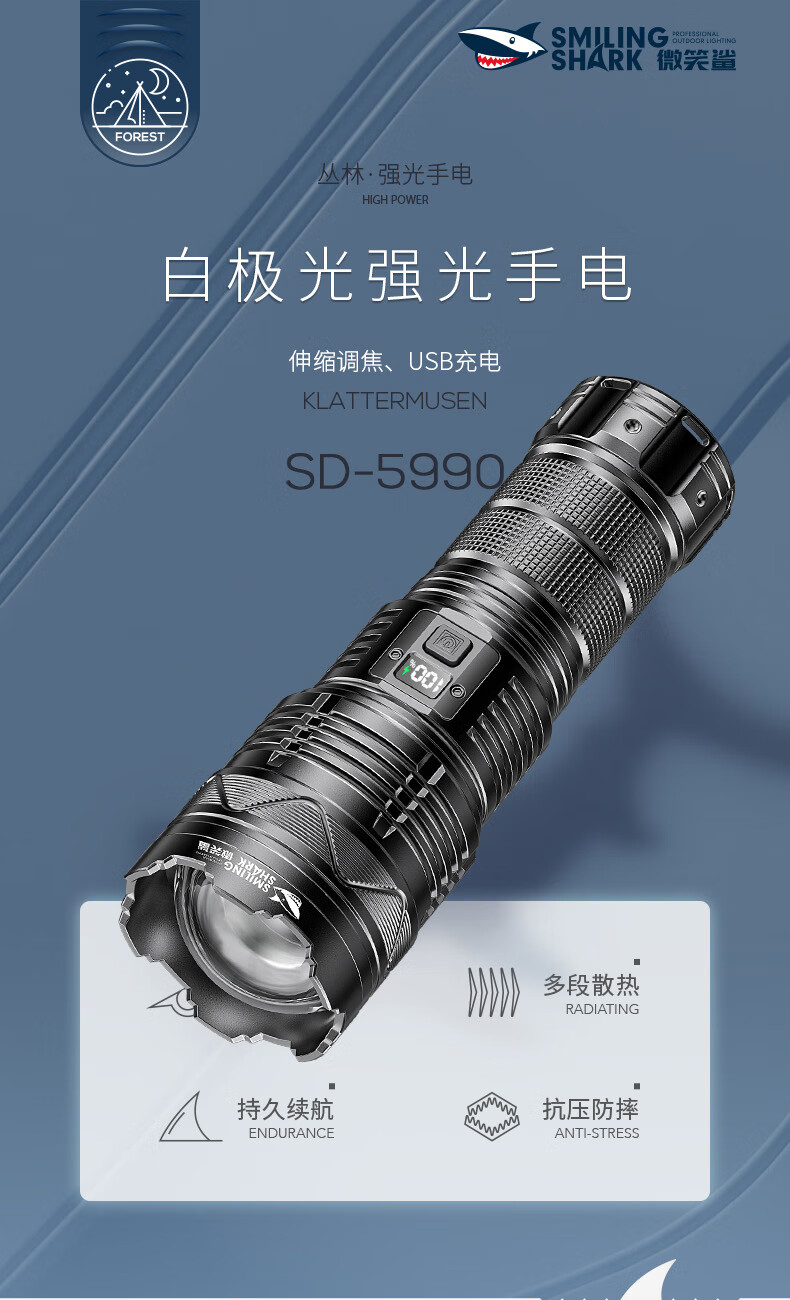 微笑鲨白激光手电筒户外强光破窗安全锤超长续航巡逻超亮变焦探照应急灯 【升级长款-4节181300锂电池】