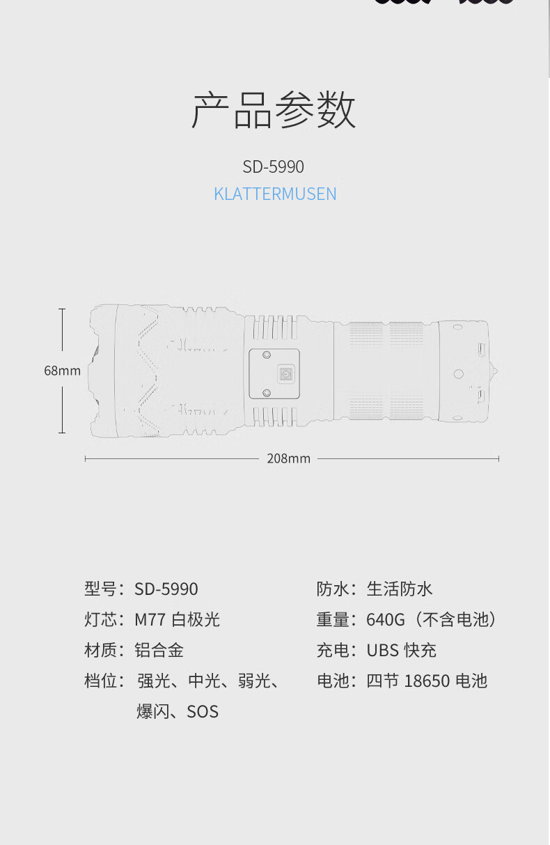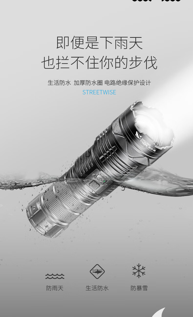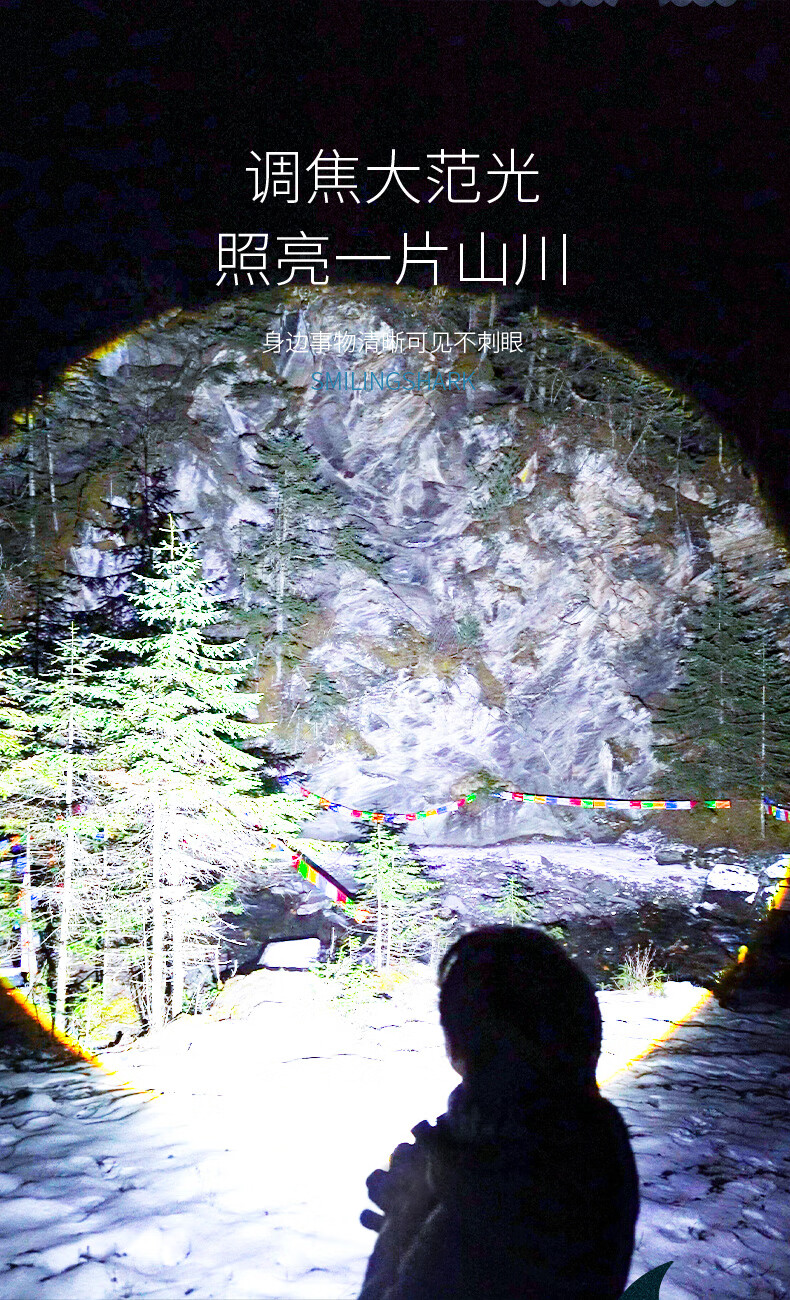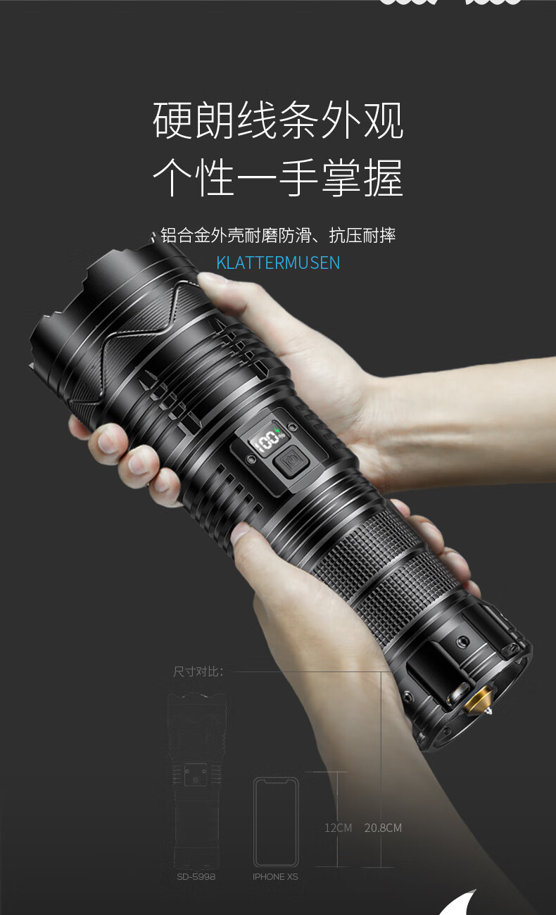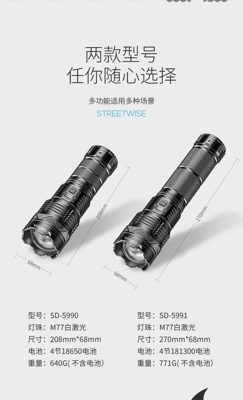 微笑鲨白激光手电筒户外强光破窗安全锤超长续航巡逻超亮变焦探照应急灯 【升级长款-4节181300锂电池】