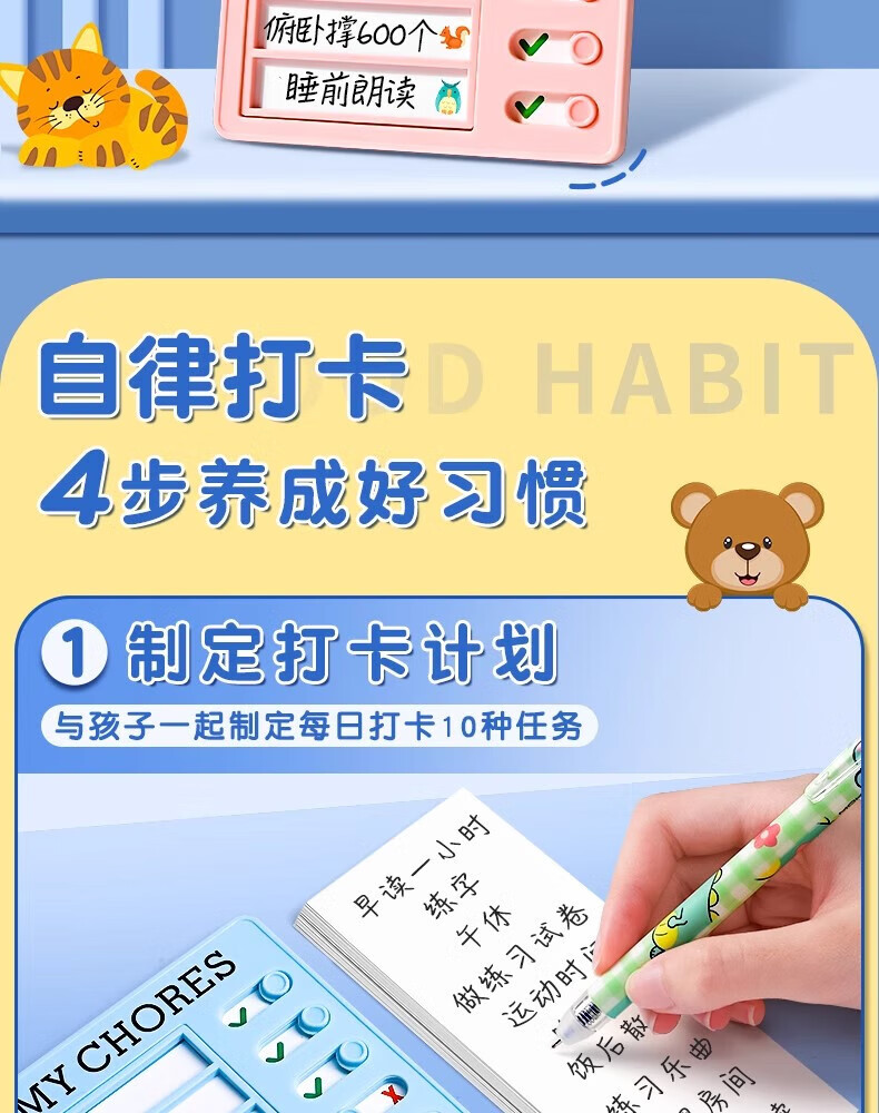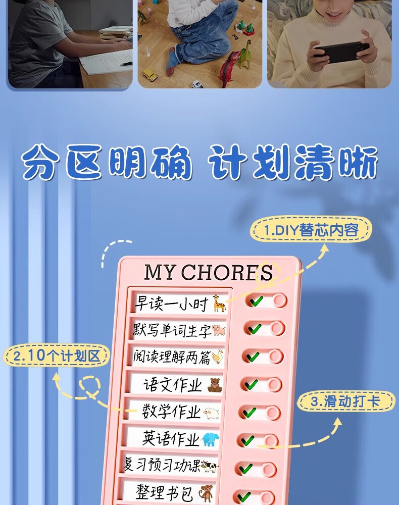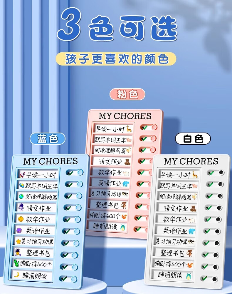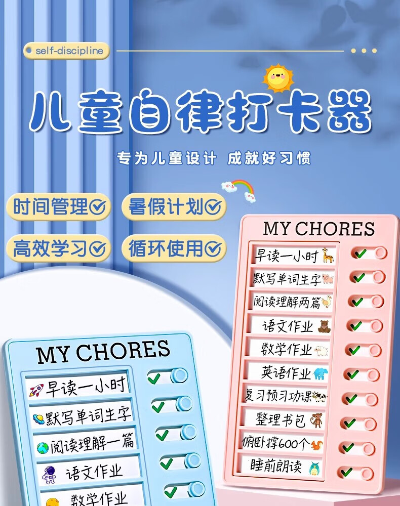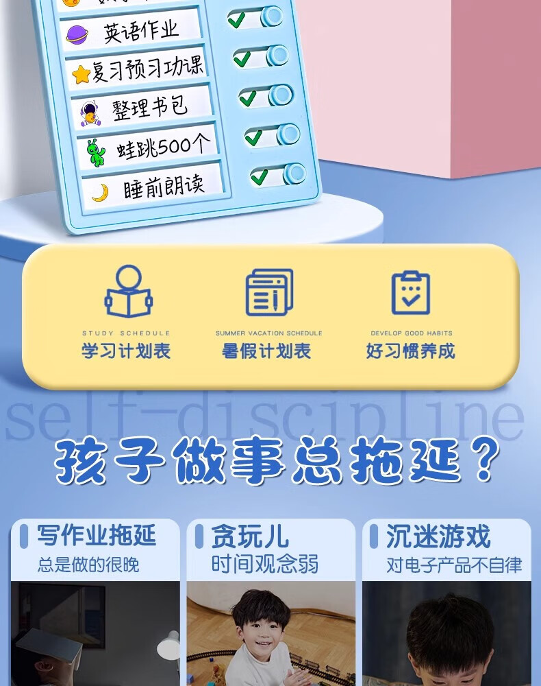 【甄选好物】学得乐自律打卡器小学生每日学习计划表自律管理时间 自律打卡器-蓝色白卡款-1个装