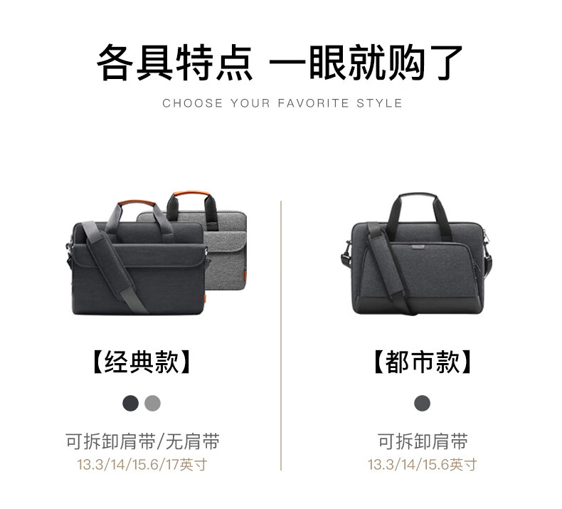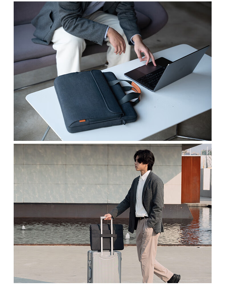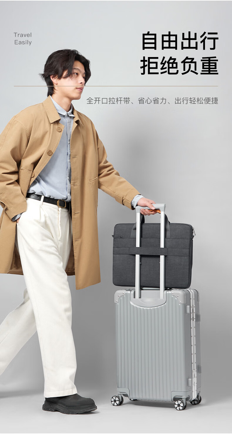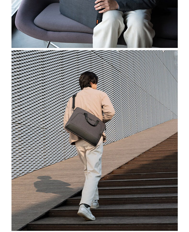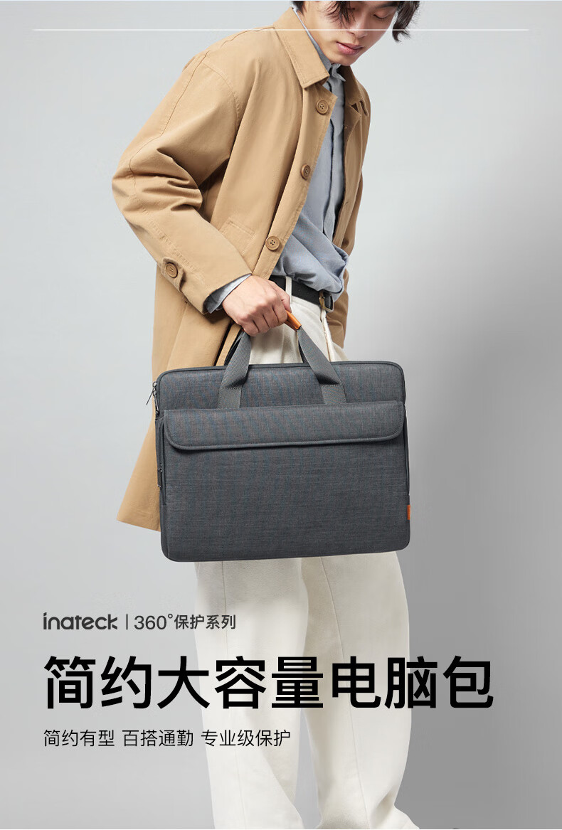 inateck笔记本电脑包手提单肩斜挎包13-15.6英寸适用MacBook苹果华为联想 【肩带可调款】黑灰色 15.6英寸