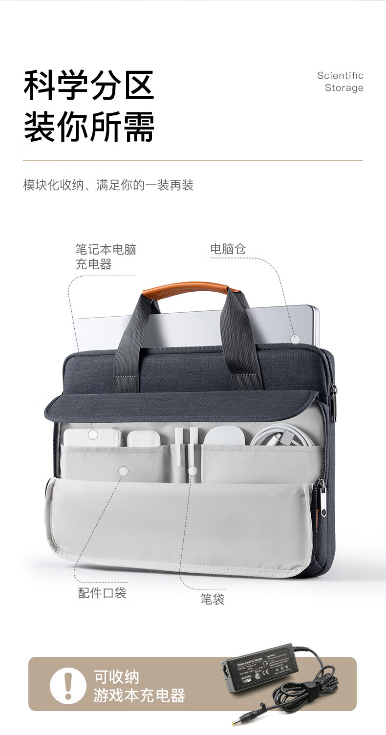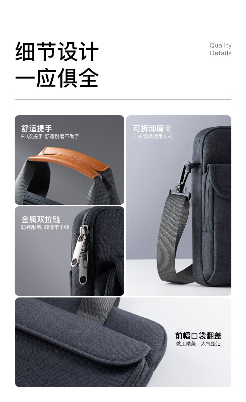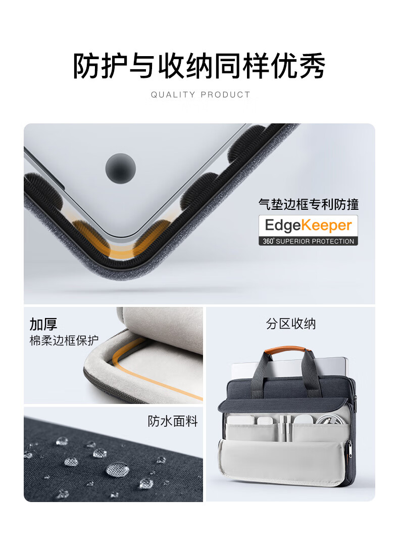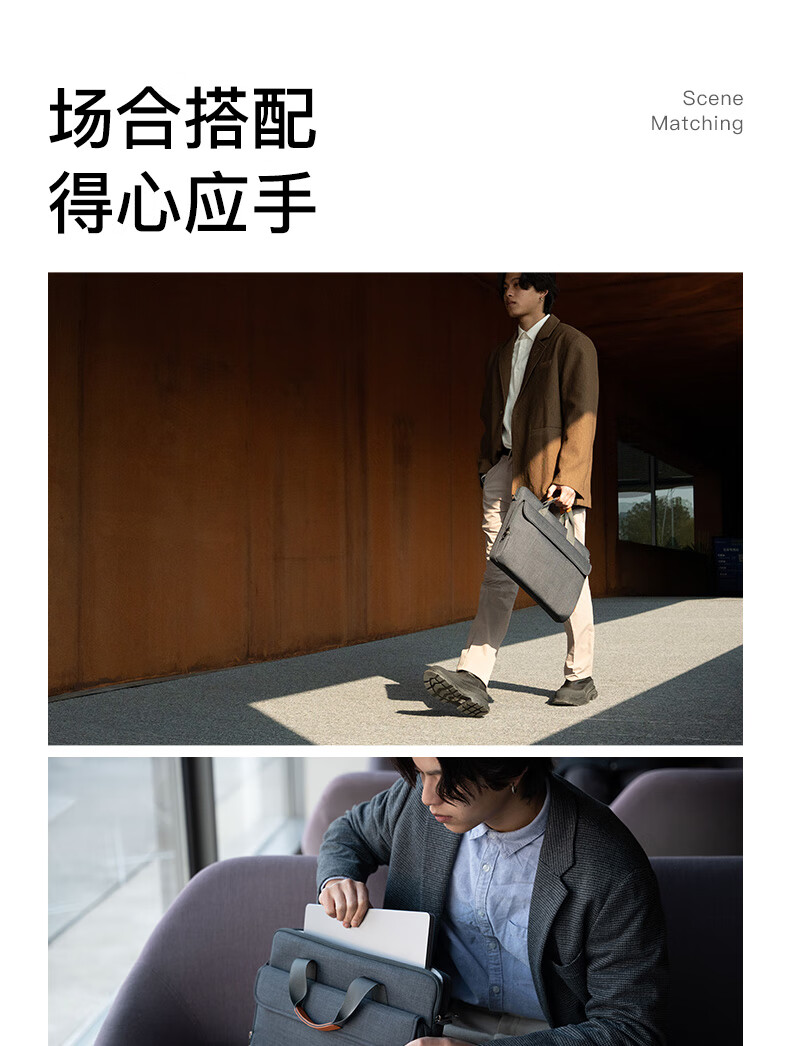 inateck笔记本电脑包手提单肩斜挎包13-15.6英寸适用MacBook苹果华为联想 【肩带可调款】黑灰色 15.6英寸