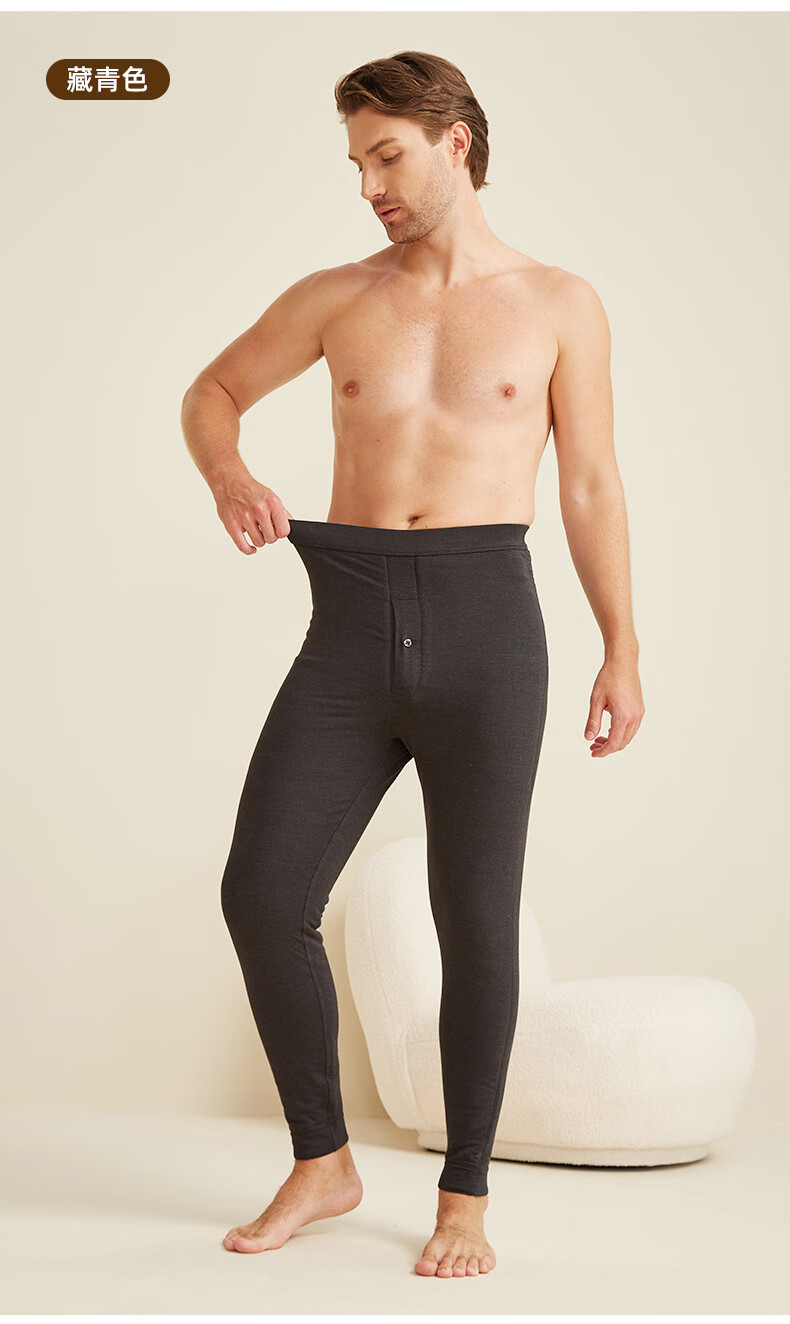 度森鹿王东北男士蚕丝保暖裤加厚双面磨绒亲肤舒适贴身保暖打底棉裤冬季款 加浓加厚藏青色 男士蚕丝保暖裤 L