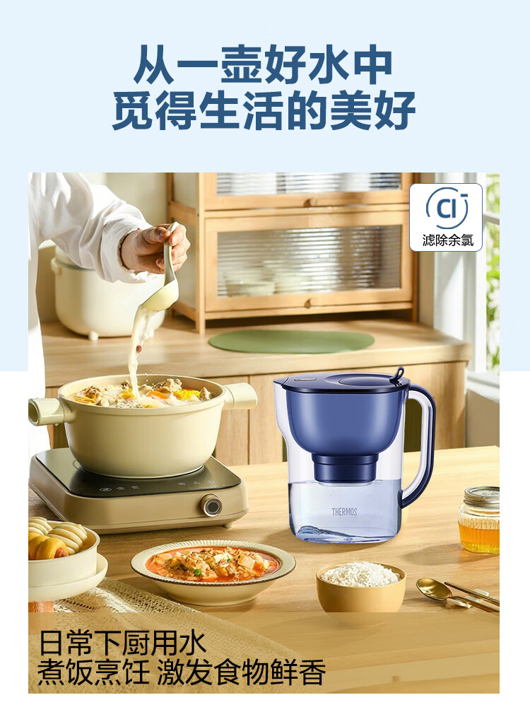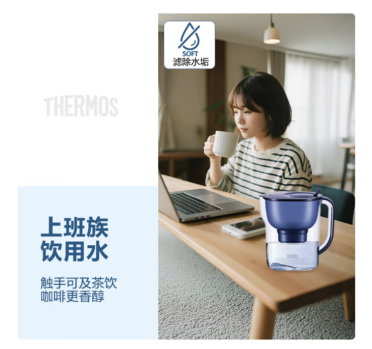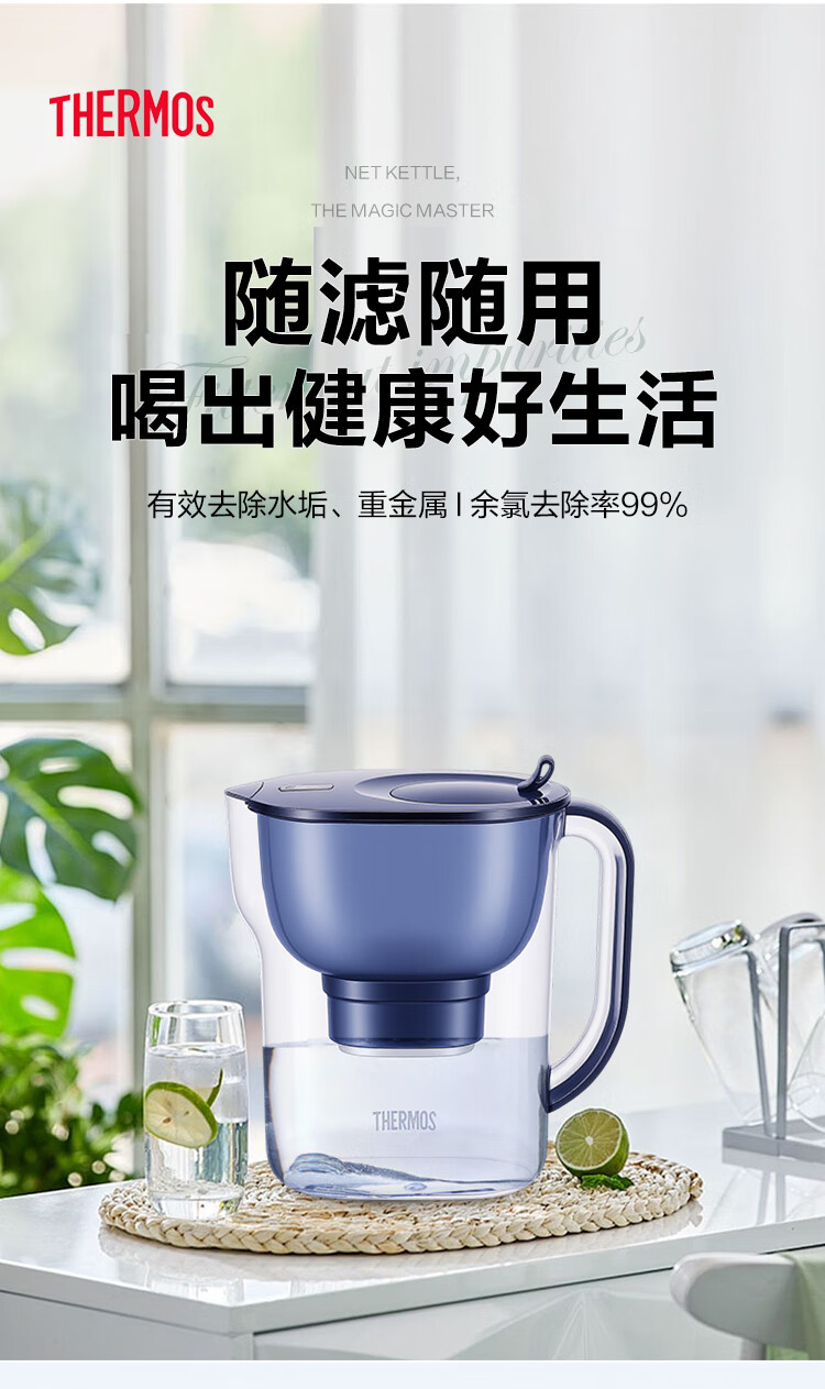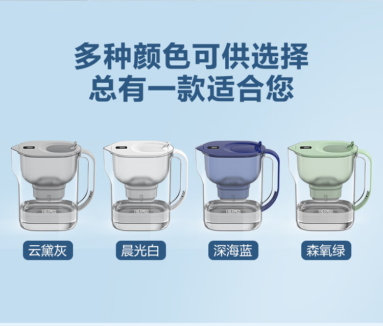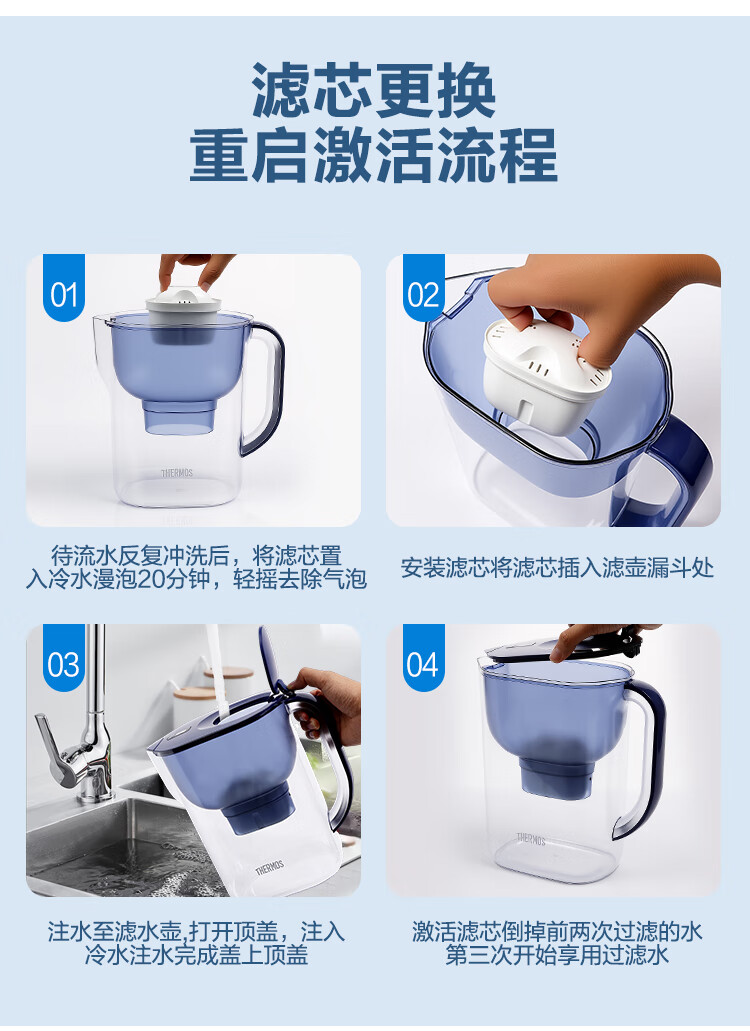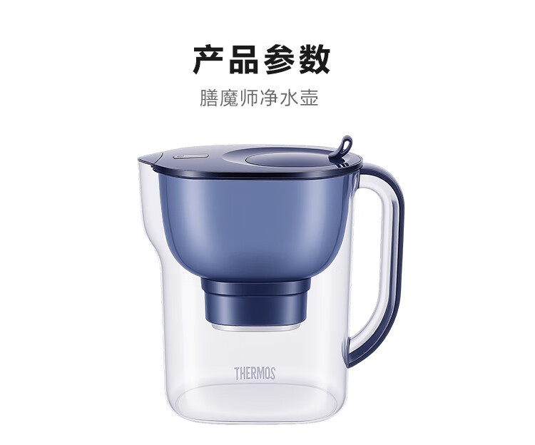膳魔师净水壶 滤水壶 家用过滤器 净水器 4.5L大容量 四重过滤 智能换芯提醒 1壶7芯套装 深海蓝1壶7芯