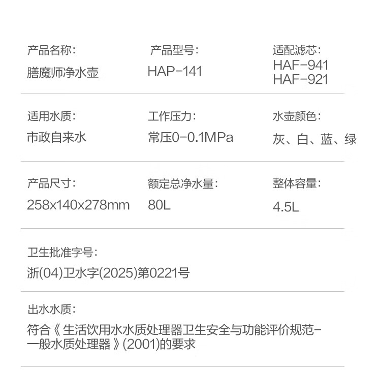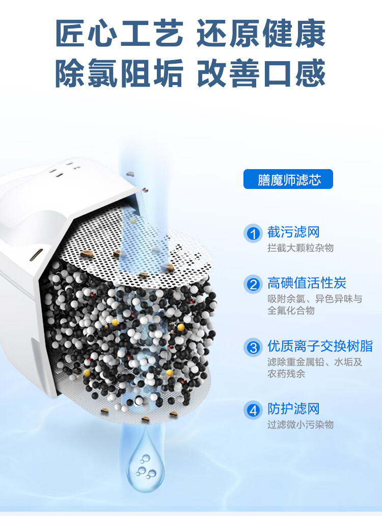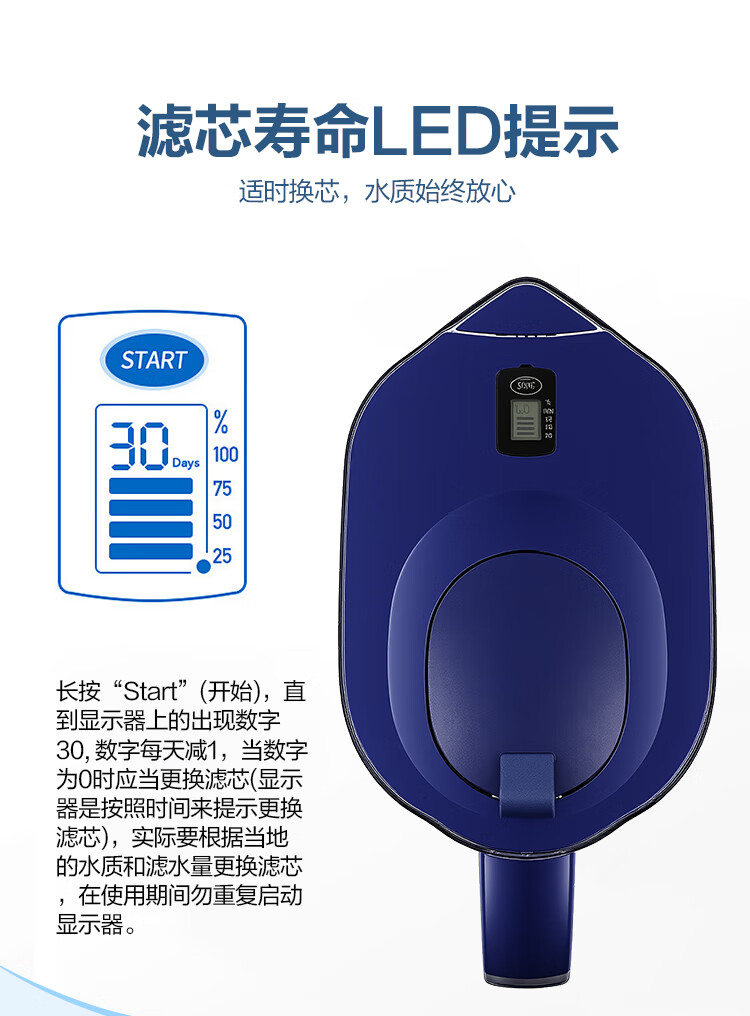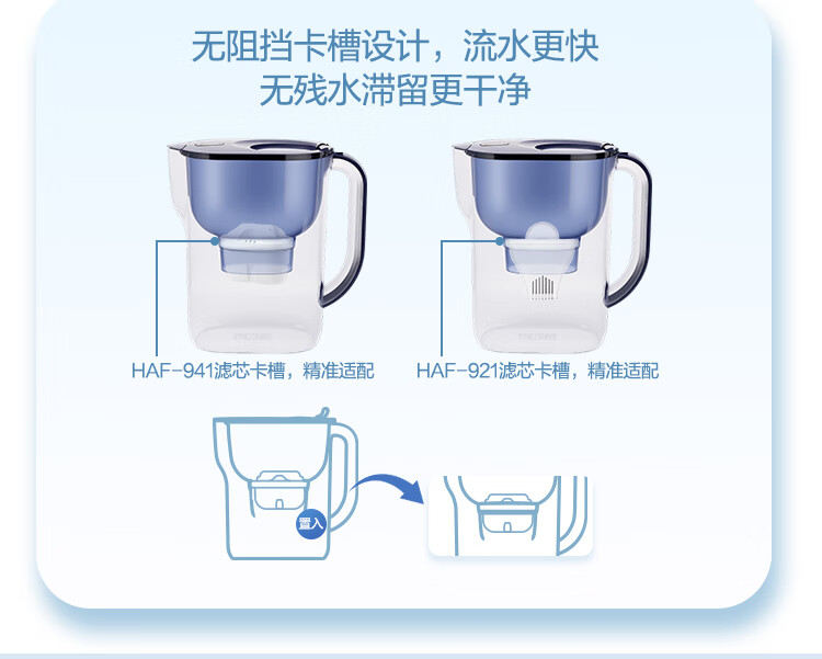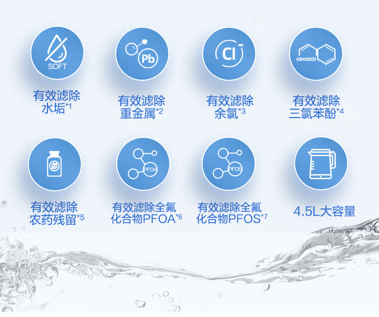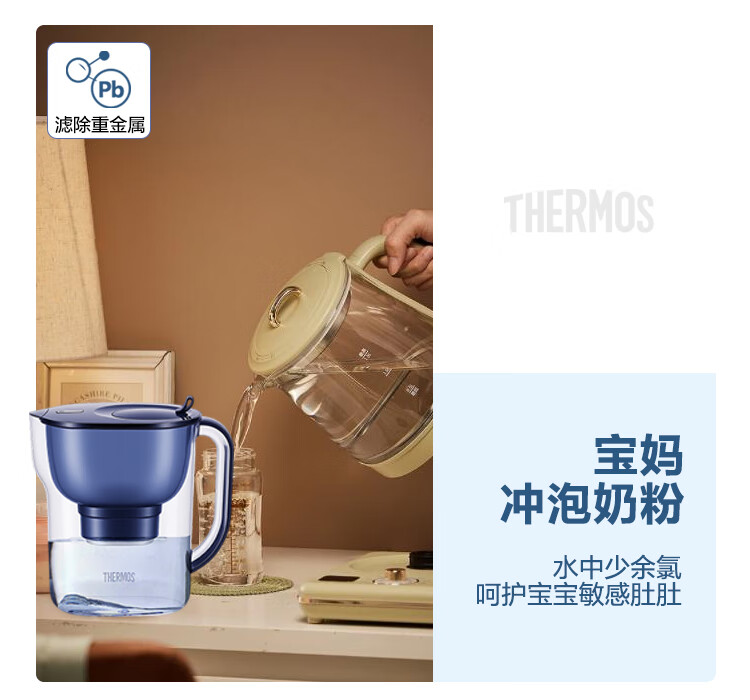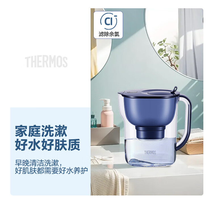 膳魔师净水壶 滤水壶 家用过滤器 净水器 4.5L大容量 四重过滤 智能换芯提醒 1壶7芯套装 深海蓝1壶7芯