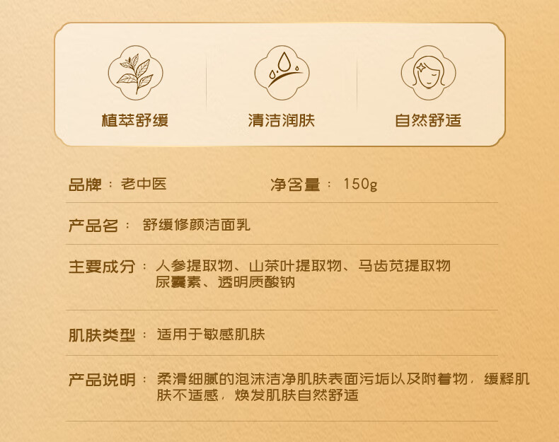 老中医舒缓修颜洁面啫喱敏感肌肤专用洗面奶缓解肌肤不适减缓刺激洁面乳 舒缓修颜洁面乳150g