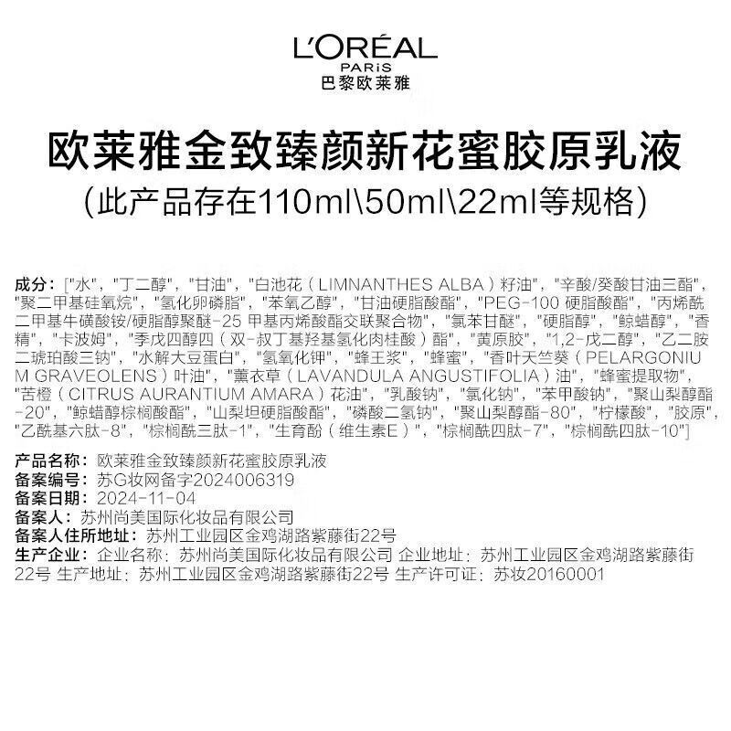 欧莱雅 L'OREAL欧莱雅滋润小蜜罐面霜全新升级水乳霜胶原抗皱抗老补水护肤品送礼 【新升级】四代花蜜胶原面霜30ml .
