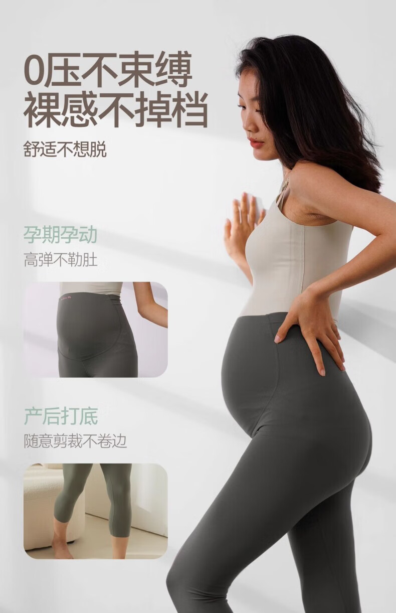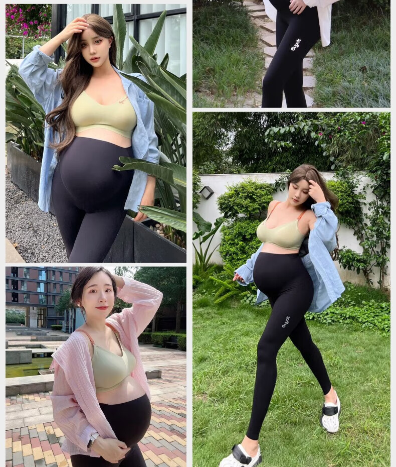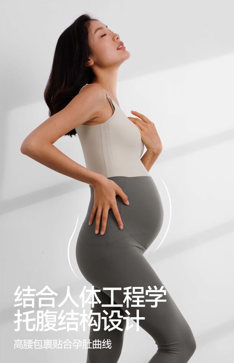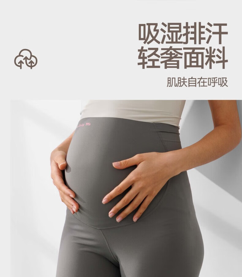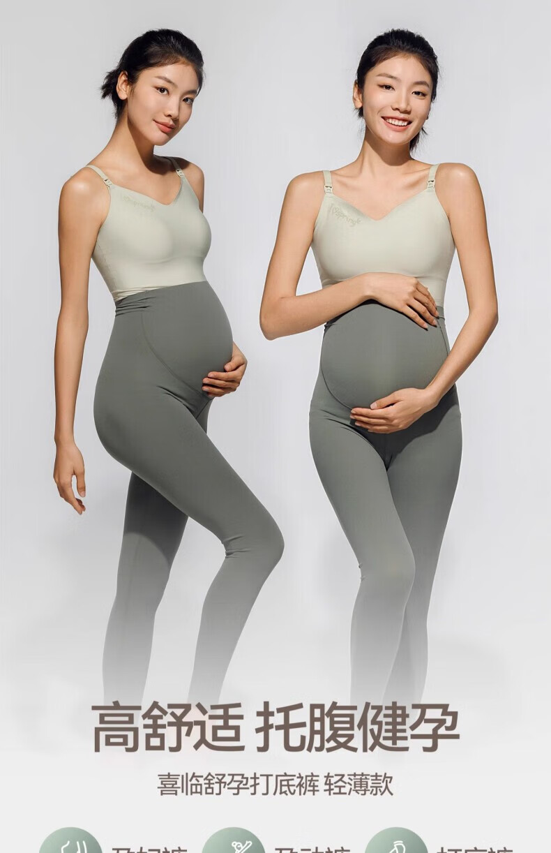 Spring Maternity喜临孕妇裤四季薄款打底裤时尚外穿瑜伽鲨鱼托腹提臀裤宽松不勒肚 奶灰色 L-XL