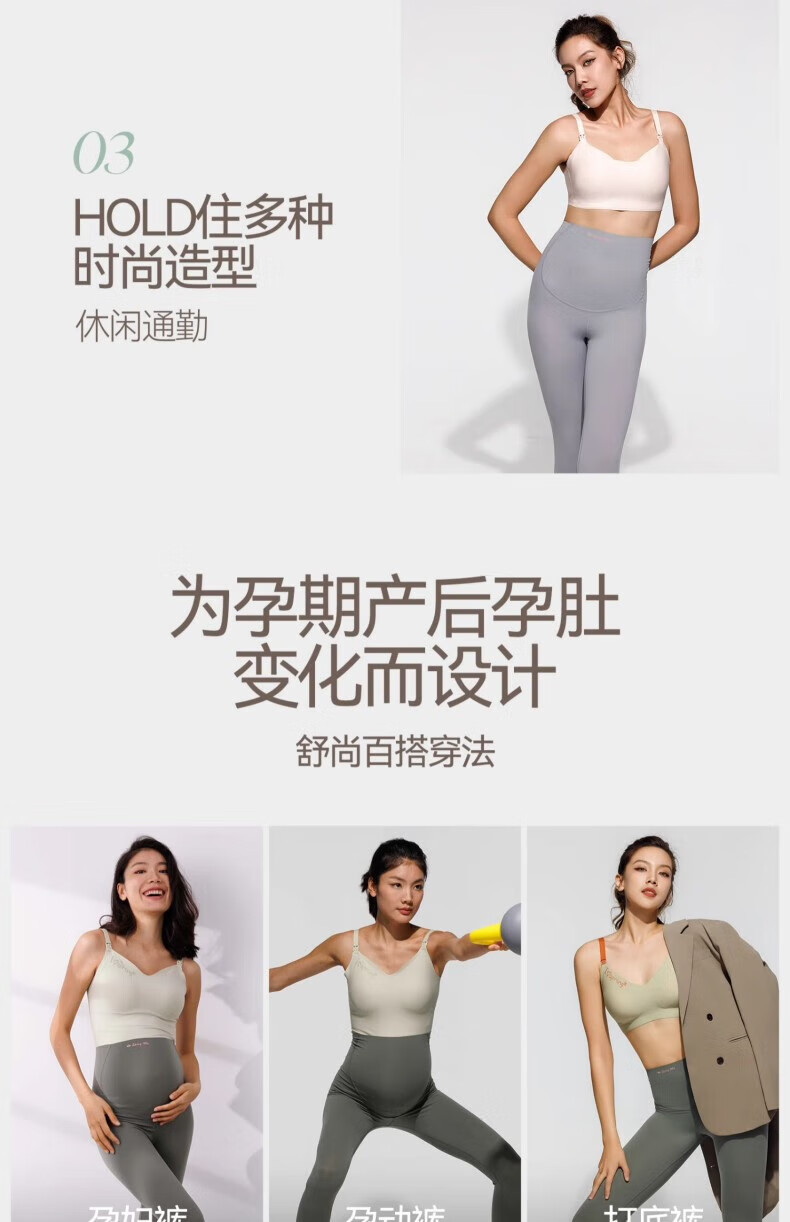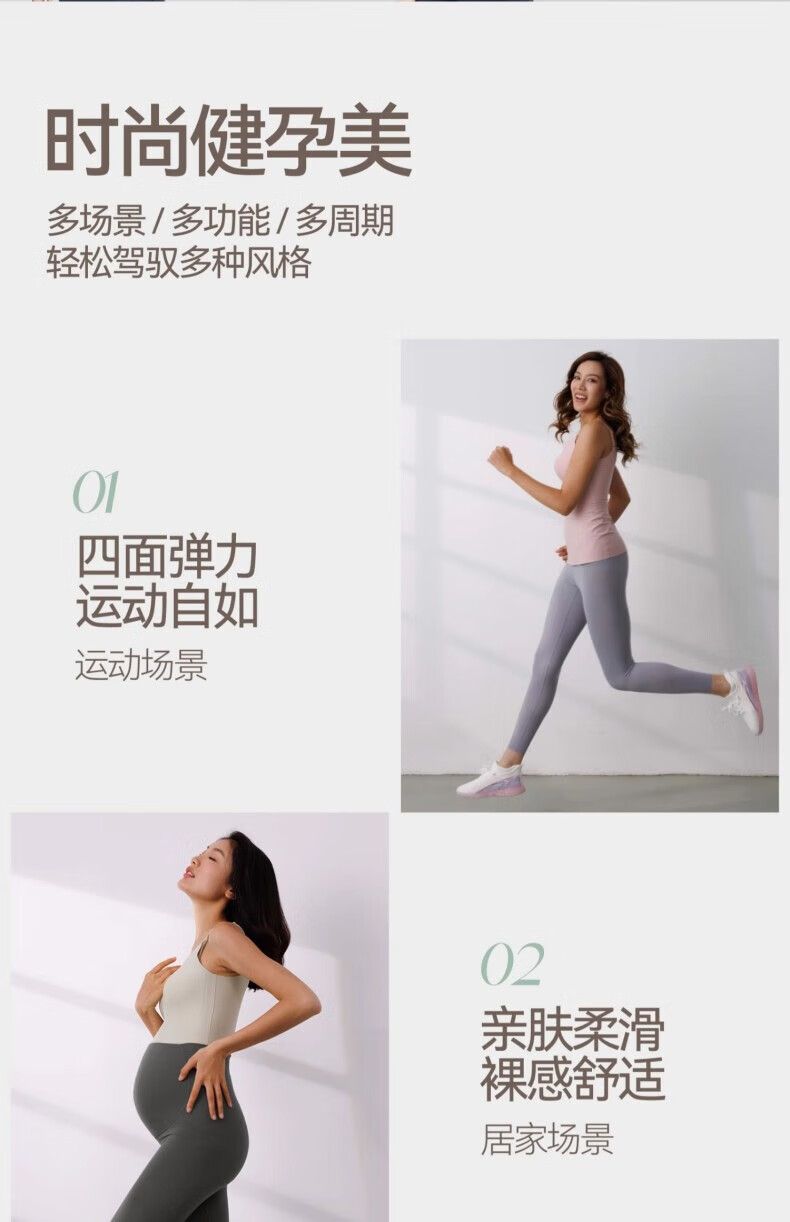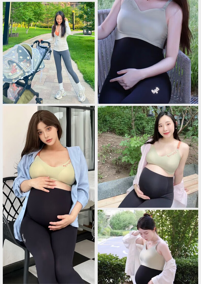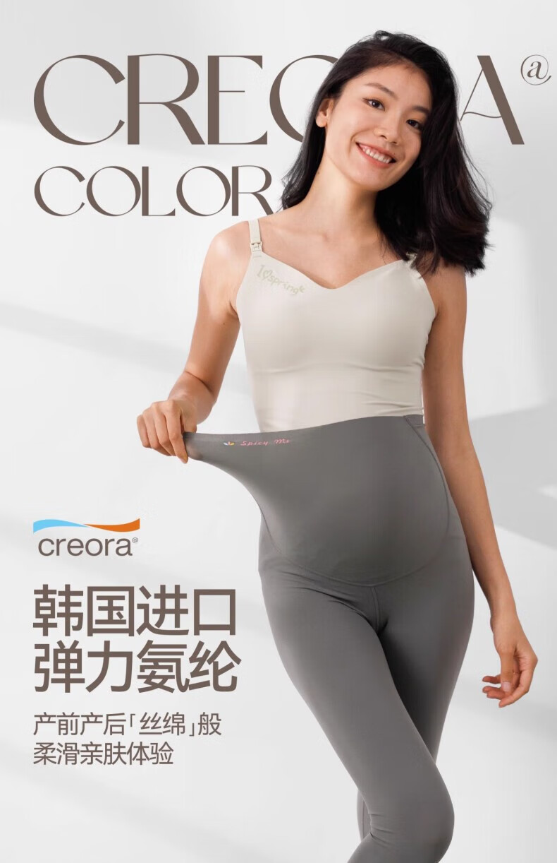 Spring Maternity喜临孕妇裤四季薄款打底裤时尚外穿瑜伽鲨鱼托腹提臀裤宽松不勒肚 奶灰色 L-XL