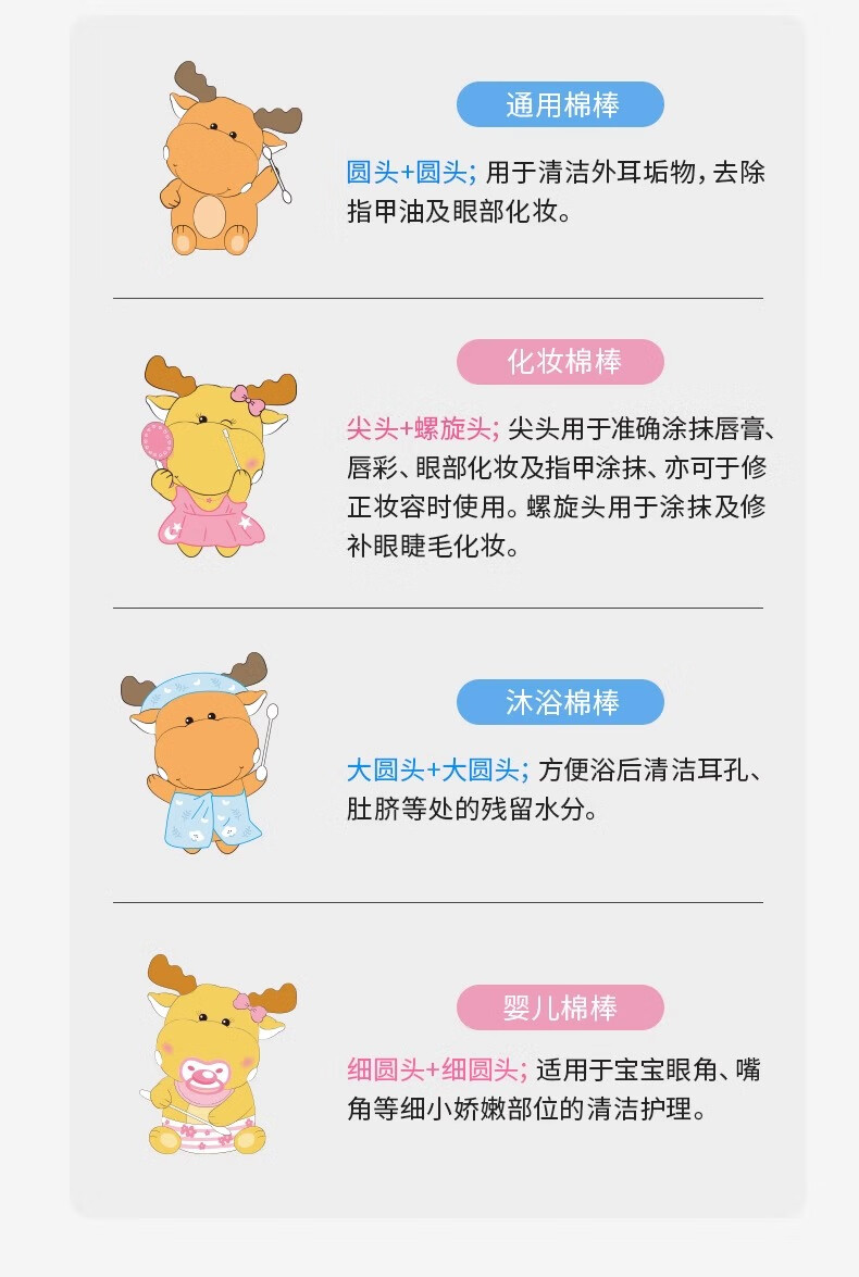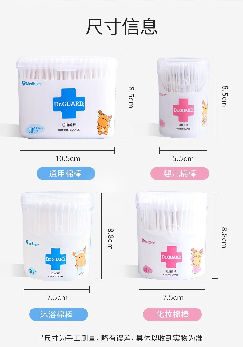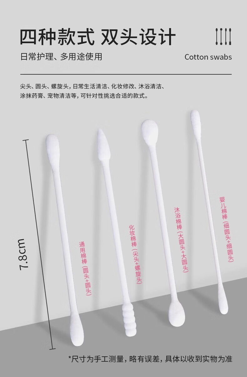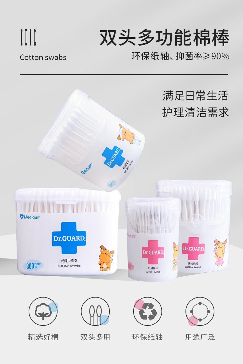 Medicom麦迪康双头棉签棉棒圆头尖头掏耳卸妆化妆纯棉婴儿宝宝 【化妆棉棒】200支/盒