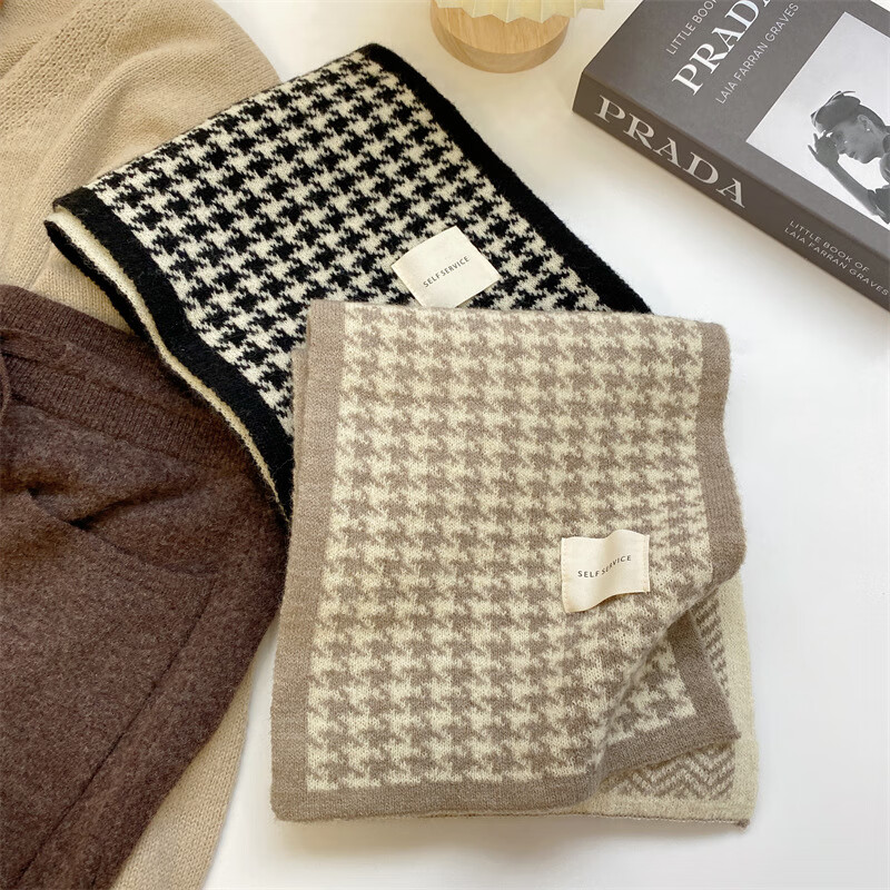 【甄选严选】千鸟格围巾女冬季2024新款韩系百搭学生情侣针织保暖 黑色 160*20CM