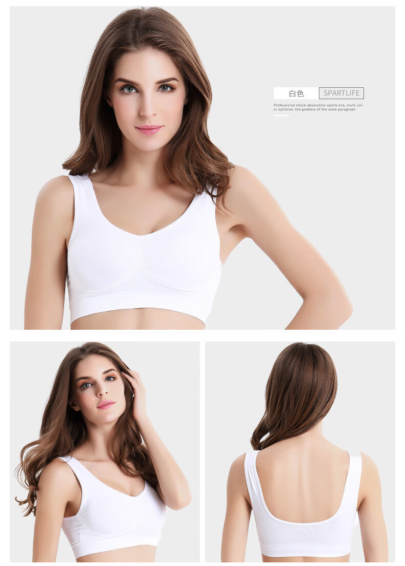 【现货直发】无痕内衣女士文胸背心式大码薄款收副乳聚拢运动无钢 白色 S