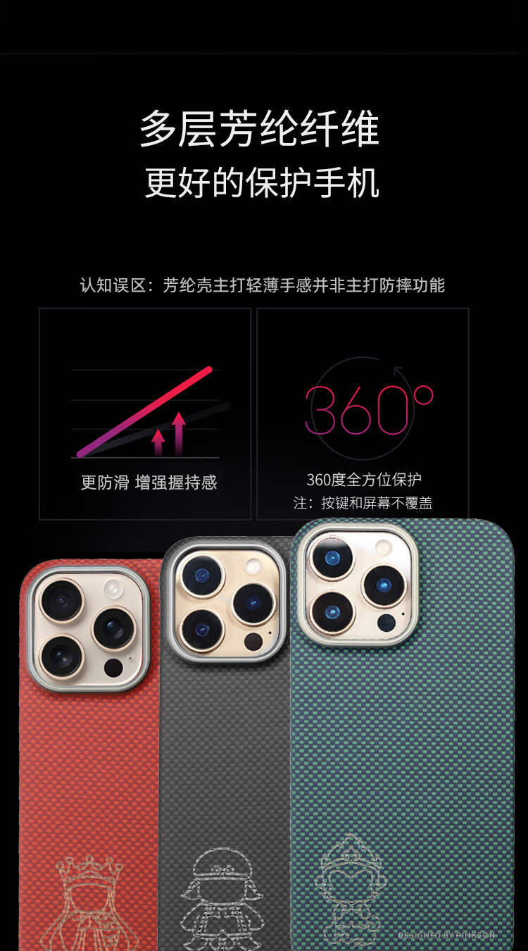Pinkson苹果iPhone16ProMax手机壳16Pro保护套凯夫拉芳纶碳纤维纹轻薄全包磨砂硬壳男女新款商务高档轻薄 【细纹600D/软边防摔磁吸款】 【苹果16ProMax】