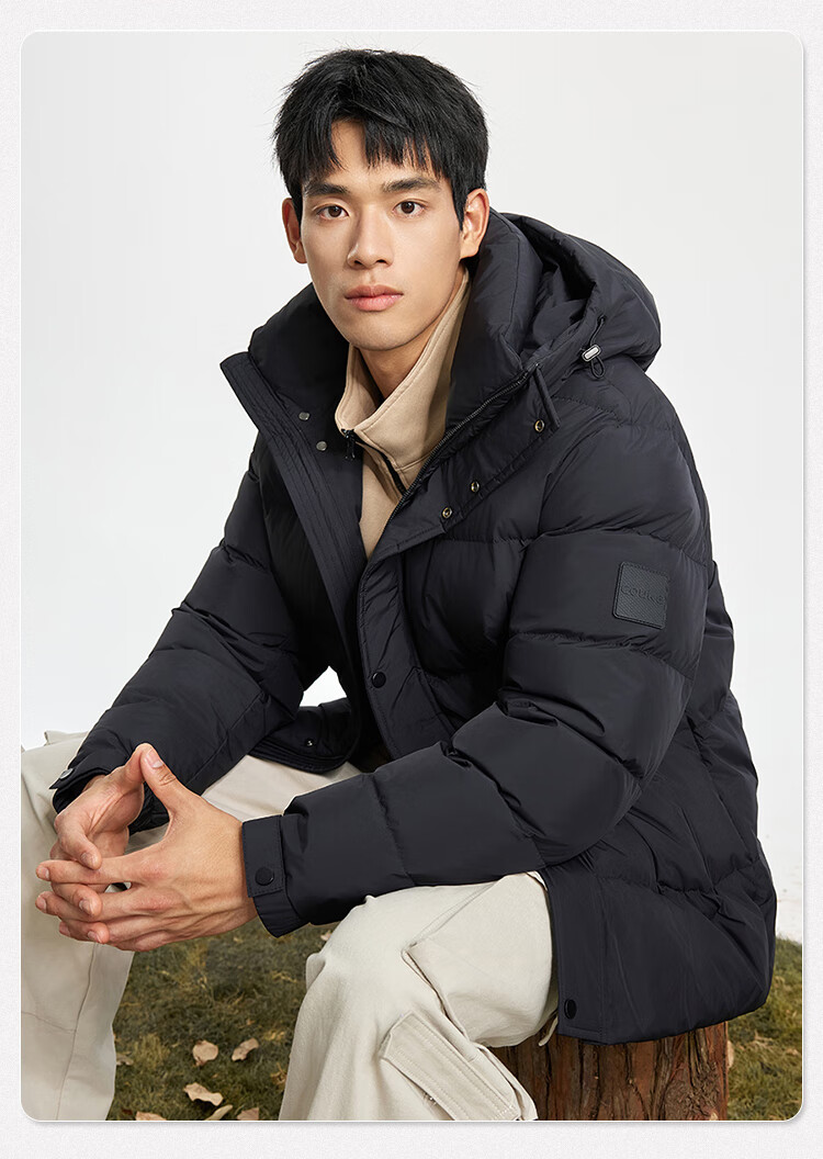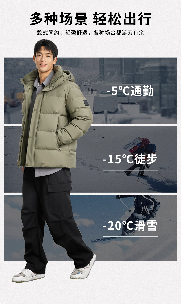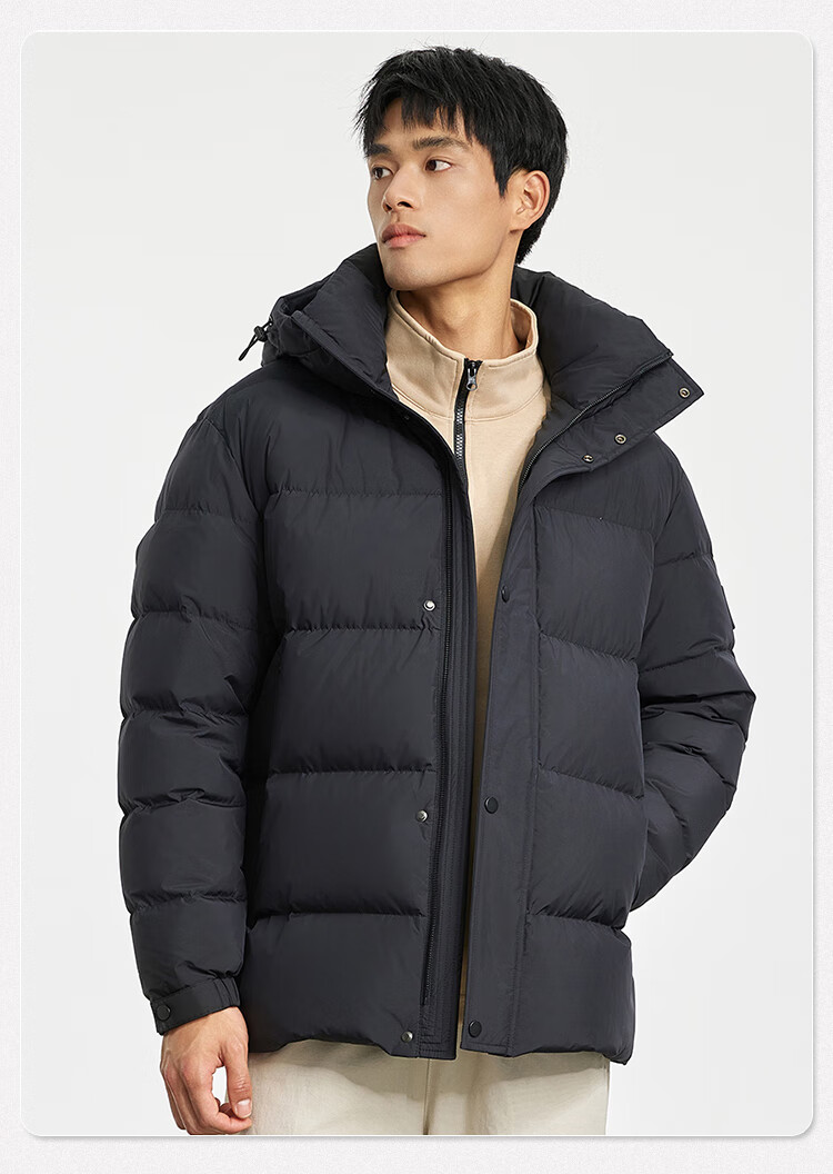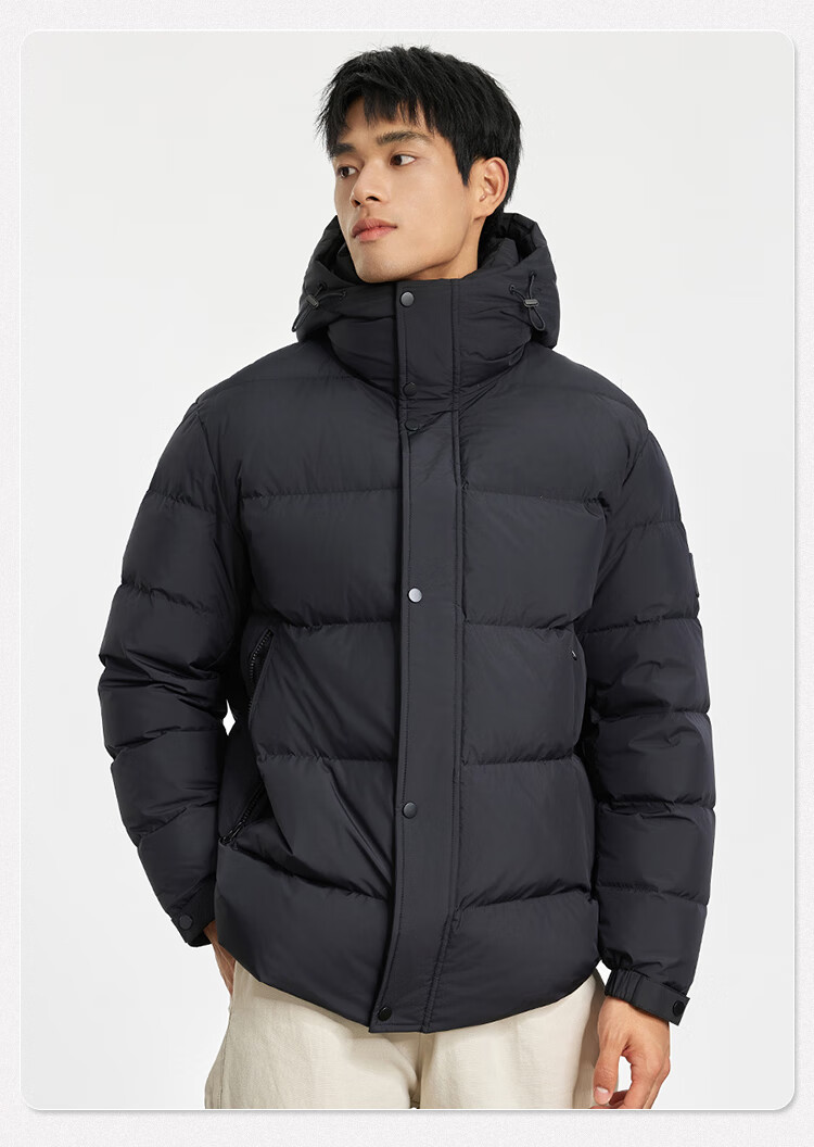 雪中飞高充绒连帽羽绒服男士冬季户外出勤休闲三层保暖防寒科技羽绒外套 黑色 L (175)
