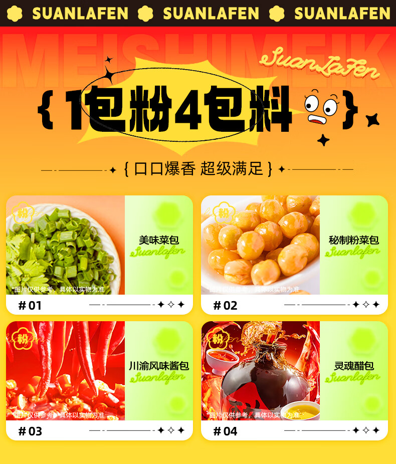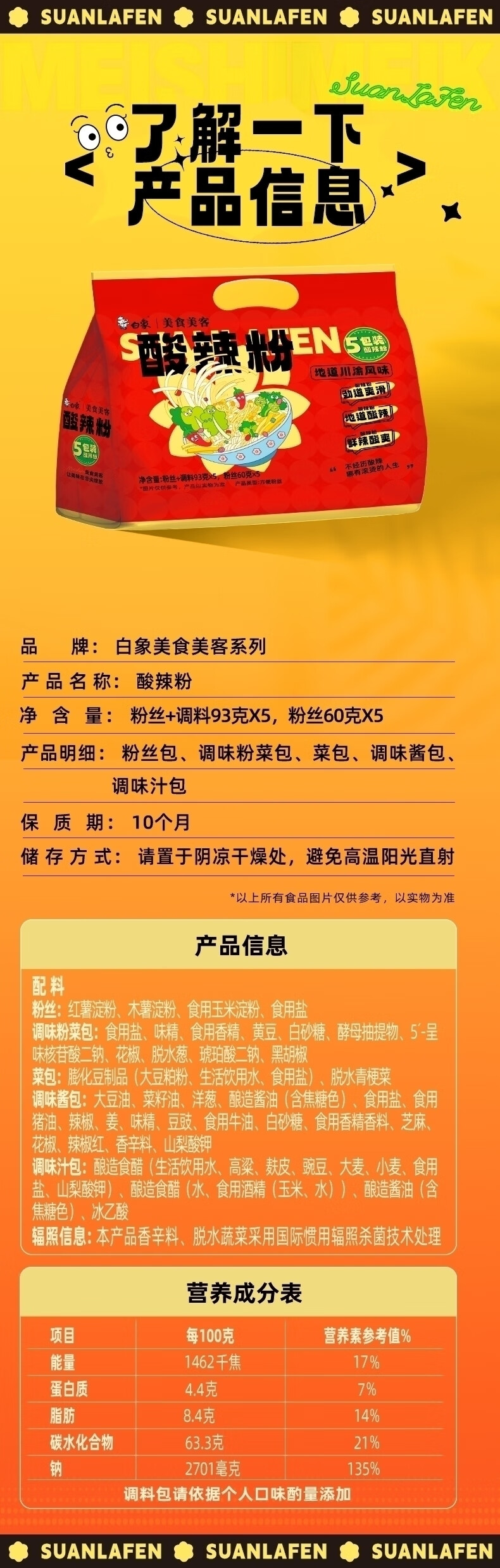白象 酸辣粉5袋 正宗川渝风味袋装酸辣粉93g*5 非油炸方便粉丝五连包