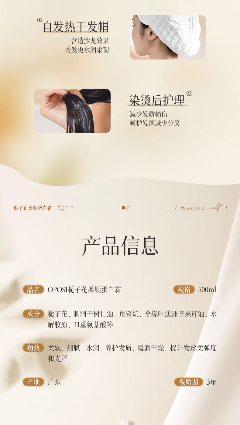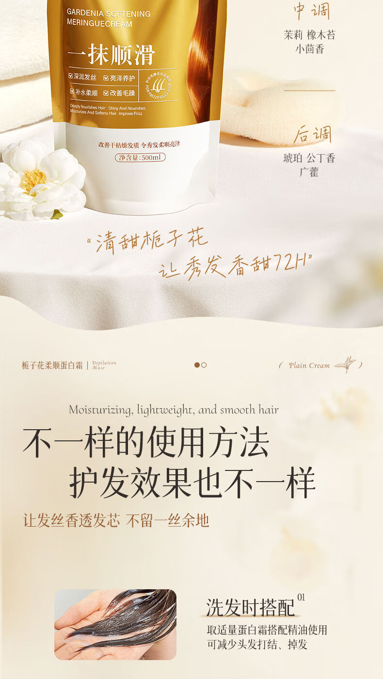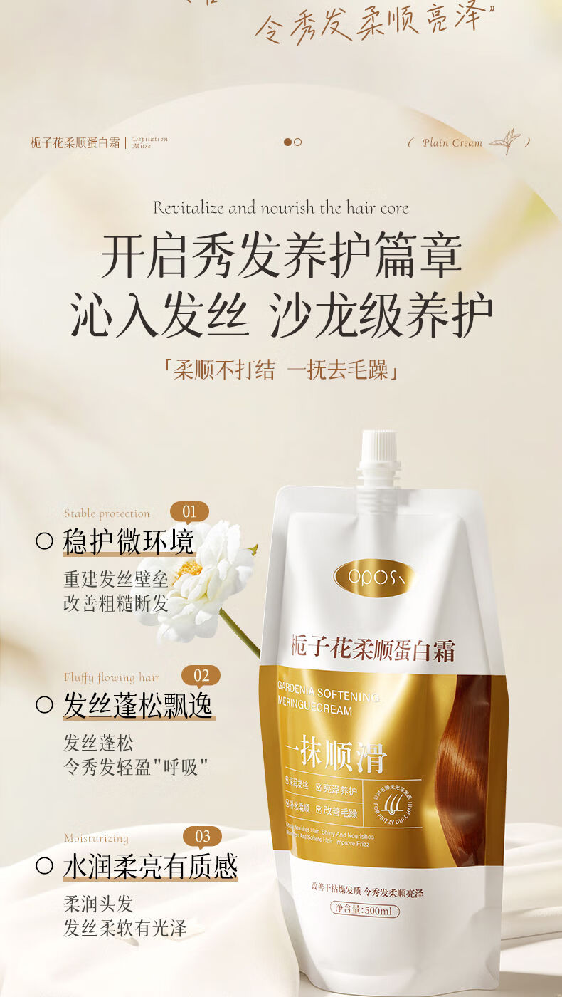 OPOSi栀子花香柔顺蛋白霜护发素修复烫染修护发膜干枯毛躁顺滑抖音同款 【护发养发】栀子花柔顺蛋白霜*1