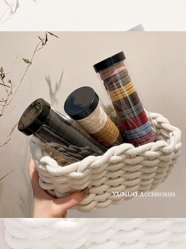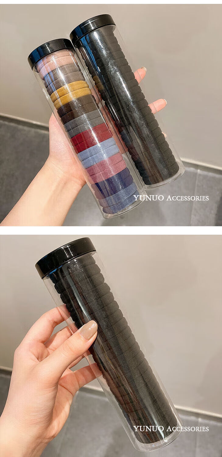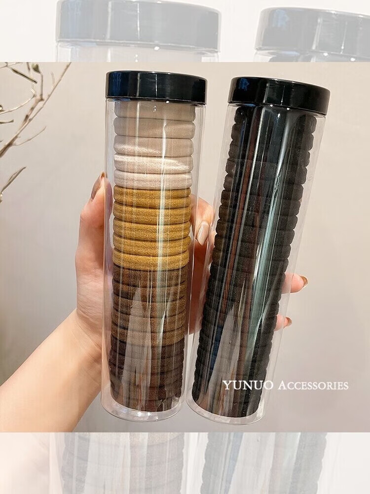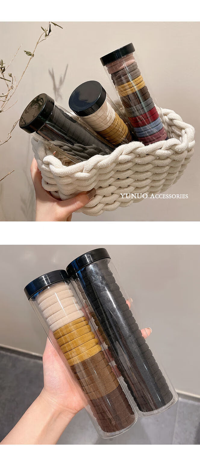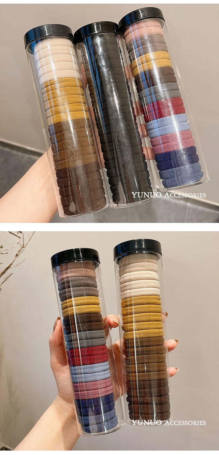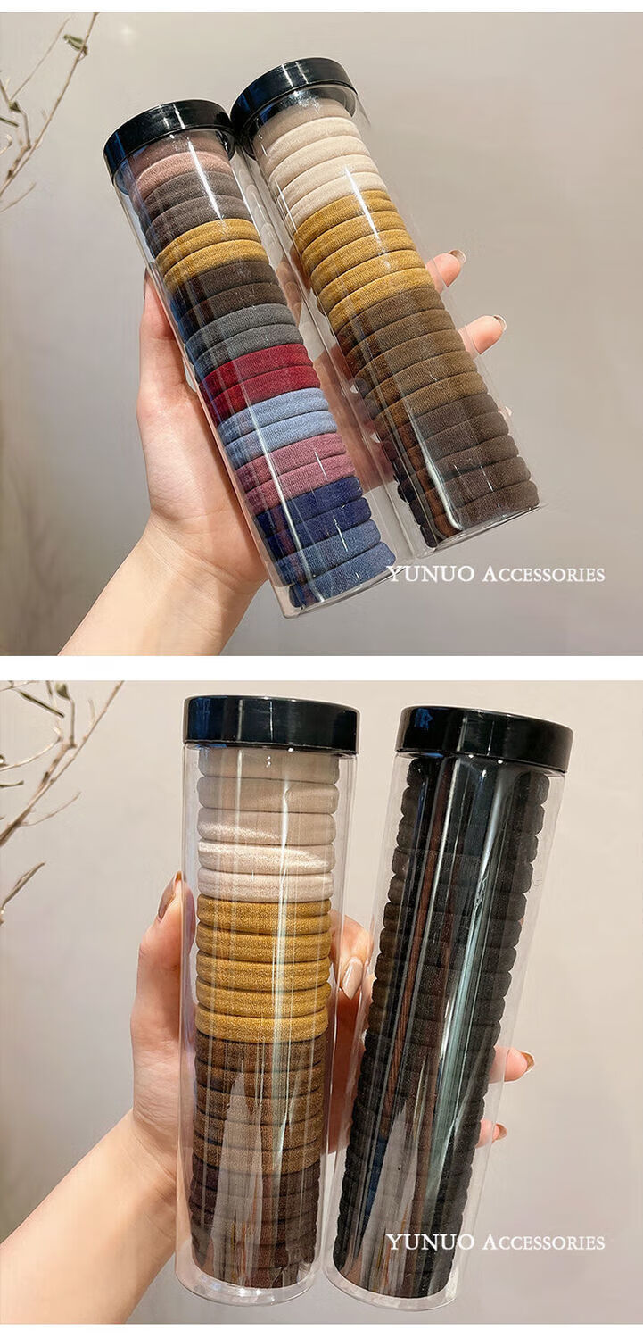 儿童莫兰迪色系高弹力头绳无缝不伤发发绳无痕布艺清新发饰 无缝发圈袋装60根-黑+咖+莫兰迪