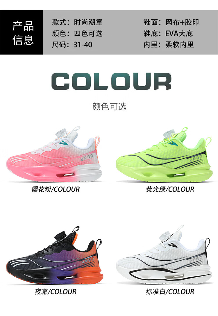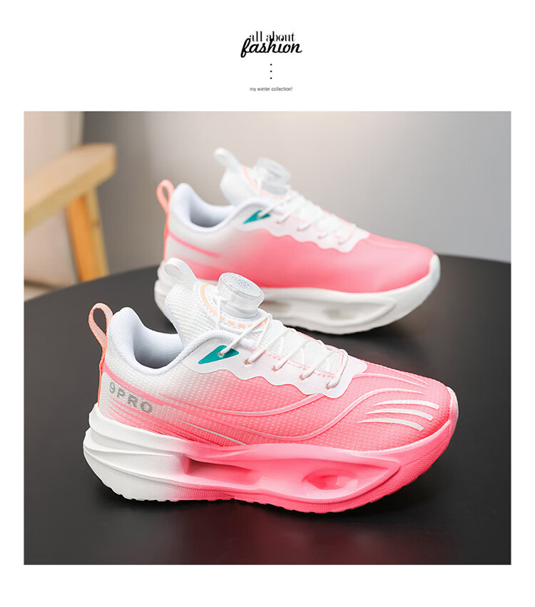 女童鞋赤兔9Pro儿童跑鞋男童学生网面透气中大童跑步鞋软底运动鞋 晨曦 【旋转纽扣款-免系带】 32
