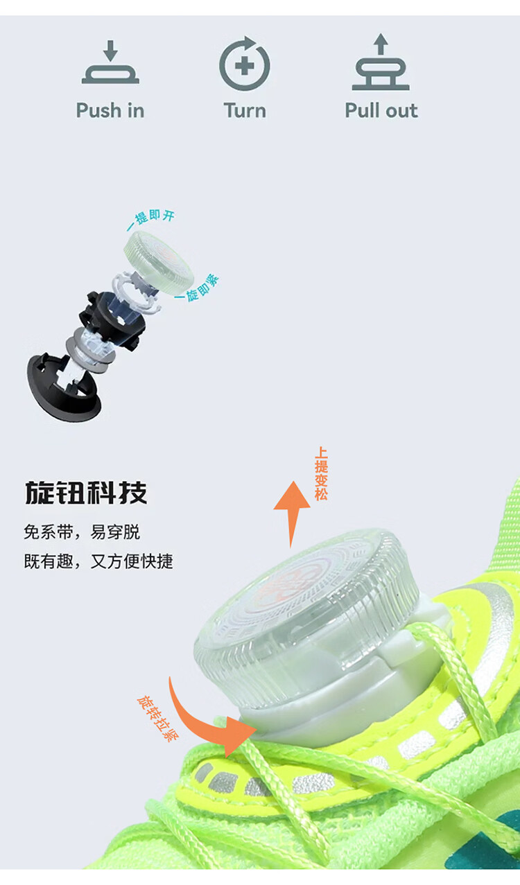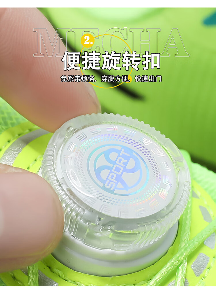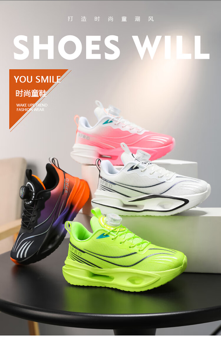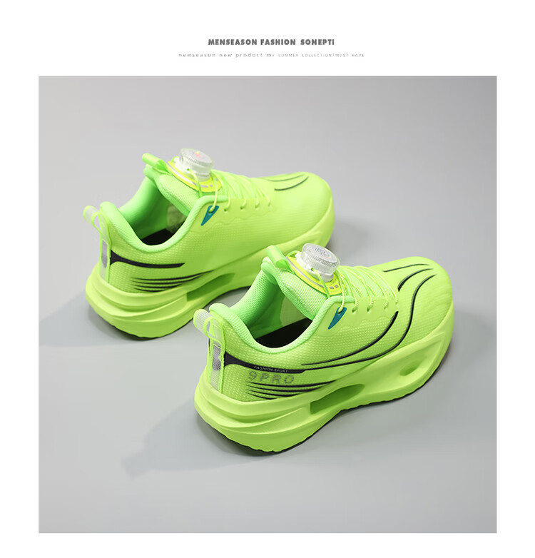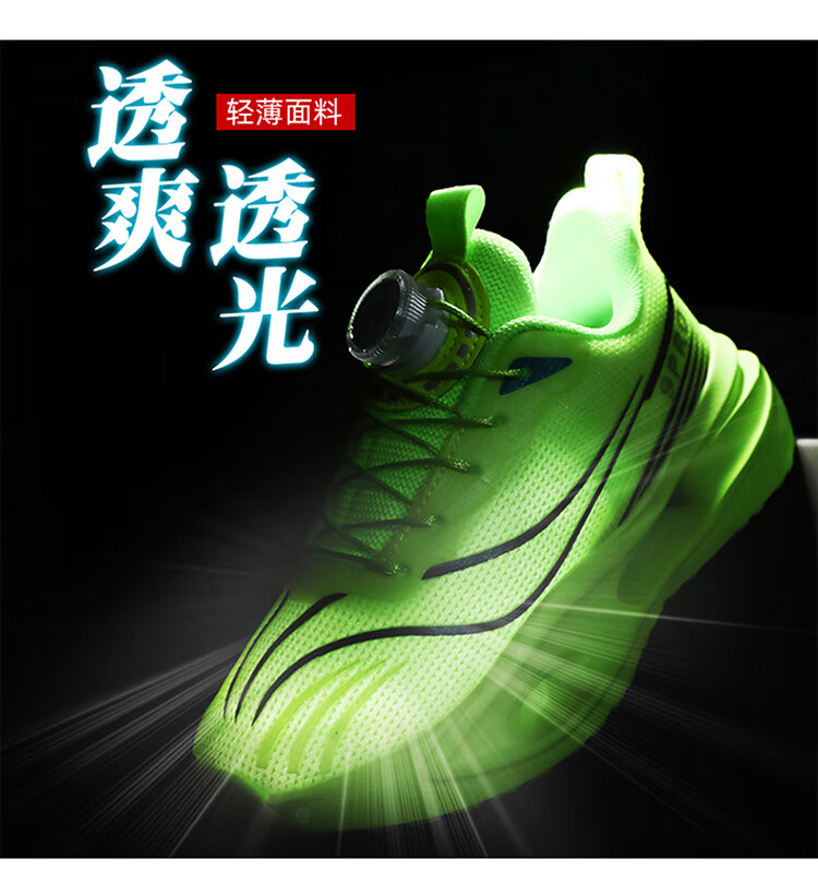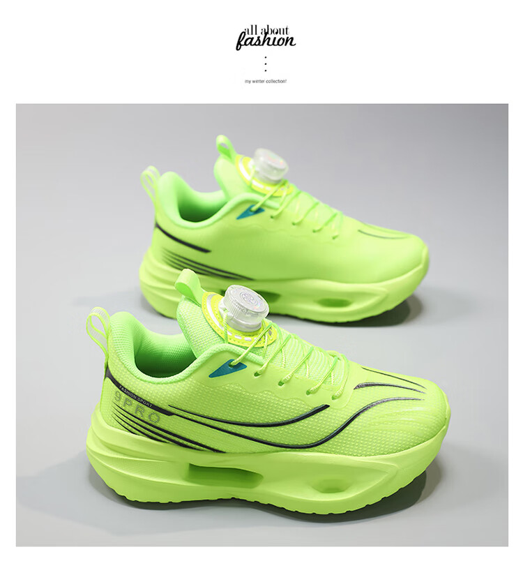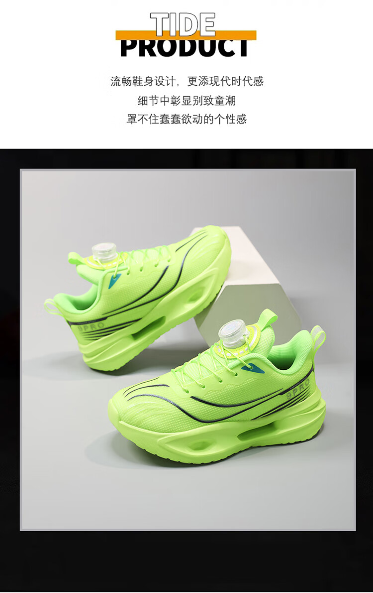 女童鞋赤兔9Pro儿童跑鞋男童学生网面透气中大童跑步鞋软底运动鞋 荧光绿 【旋转纽扣款-免系带】 40