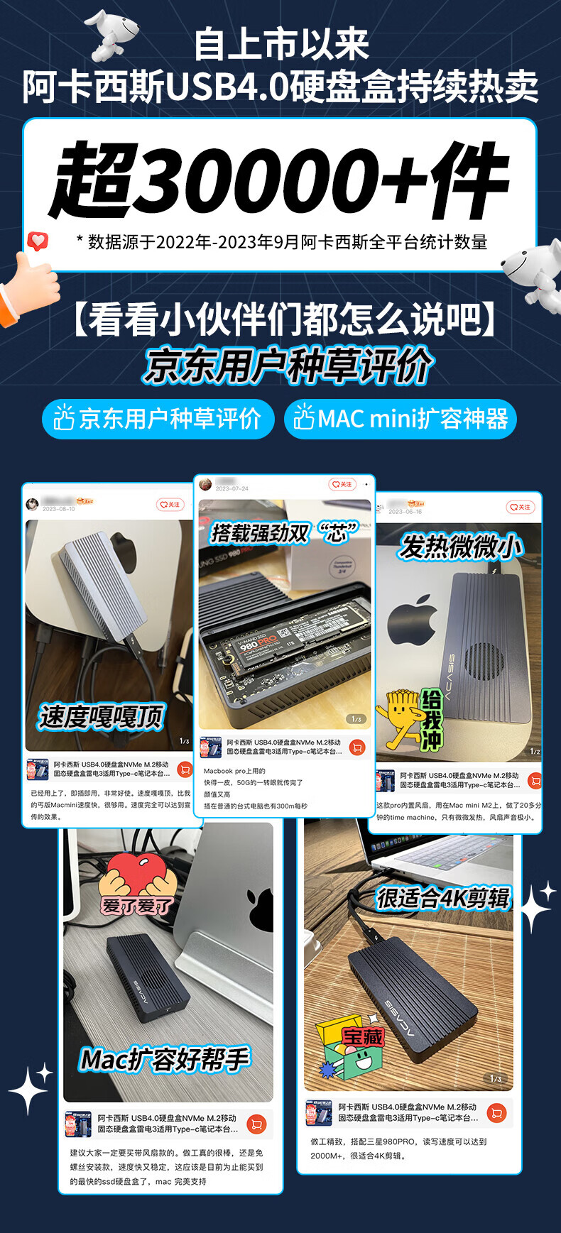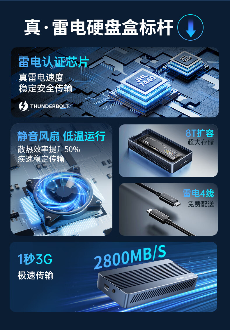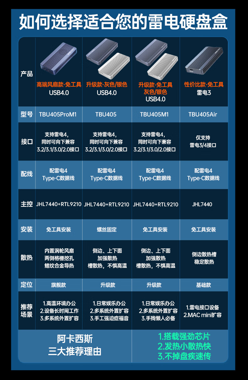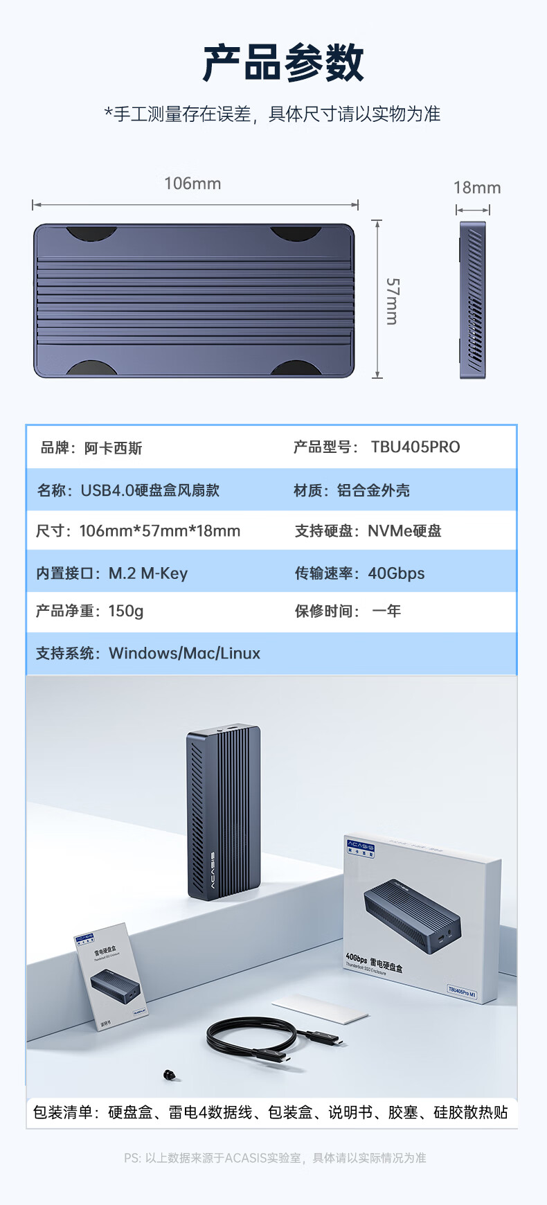阿卡西斯USB4.0硬盘盒NVMe M.2移动硬盘盒40Gbps兼容雷电5/4/3适用苹果Mac mini笔记本SSD固态TBU405ProM1 【高端风扇款】雷电4免工具USB4.0(向下兼容) 1