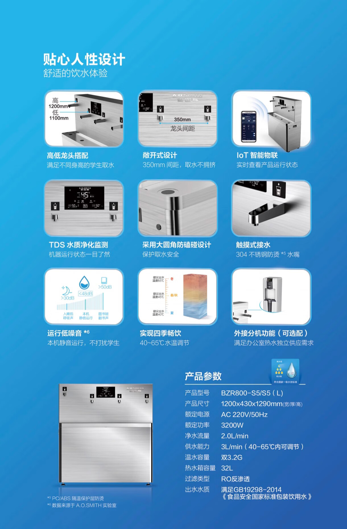 AOSmith商用净水器BZR800-S7饮水平台校园4龙头800G直饮机净水器 BZR800-S7