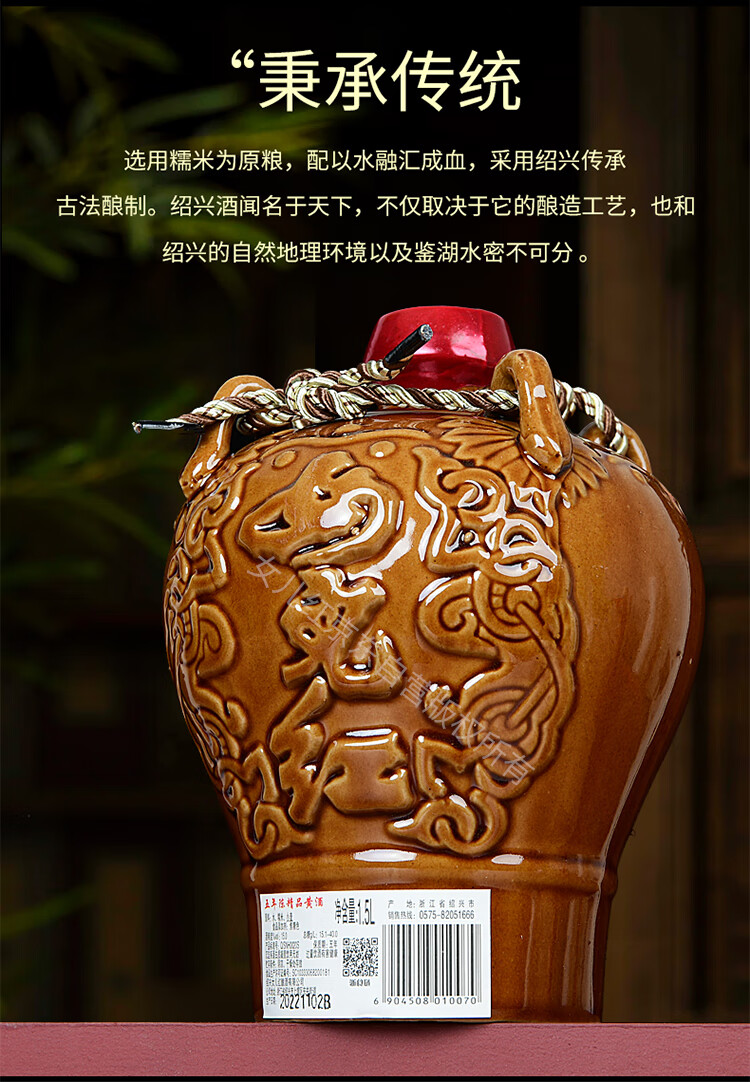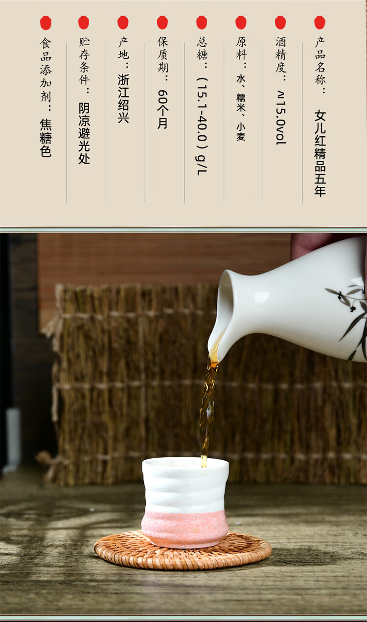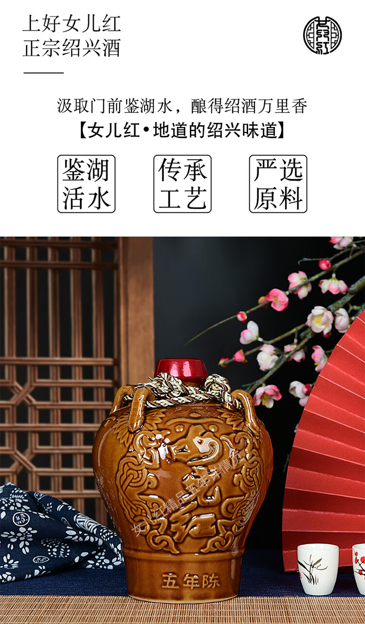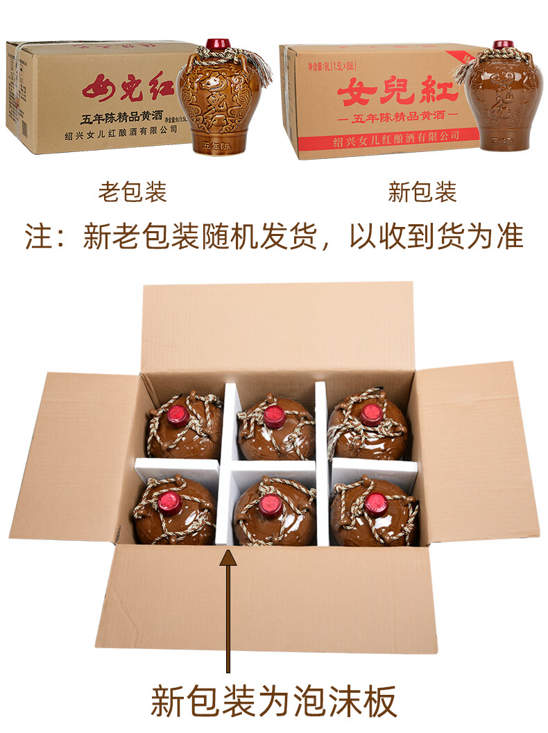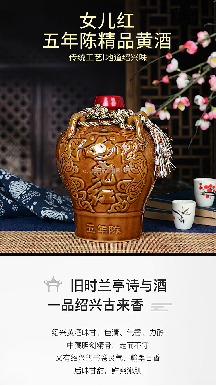 女兒红 精品五年 半干型 绍兴黄酒 1.5L*6坛 整箱装 中秋送礼