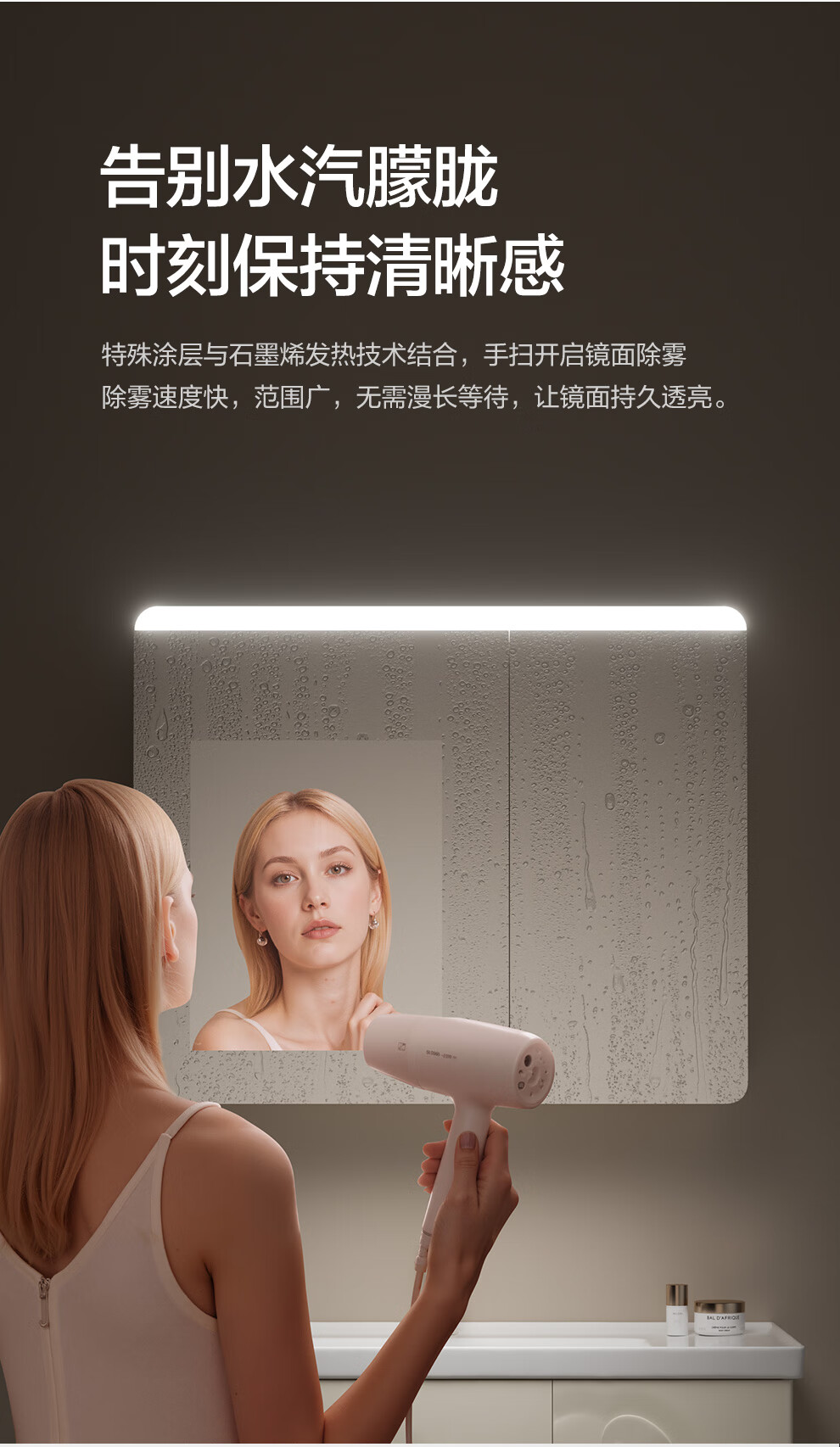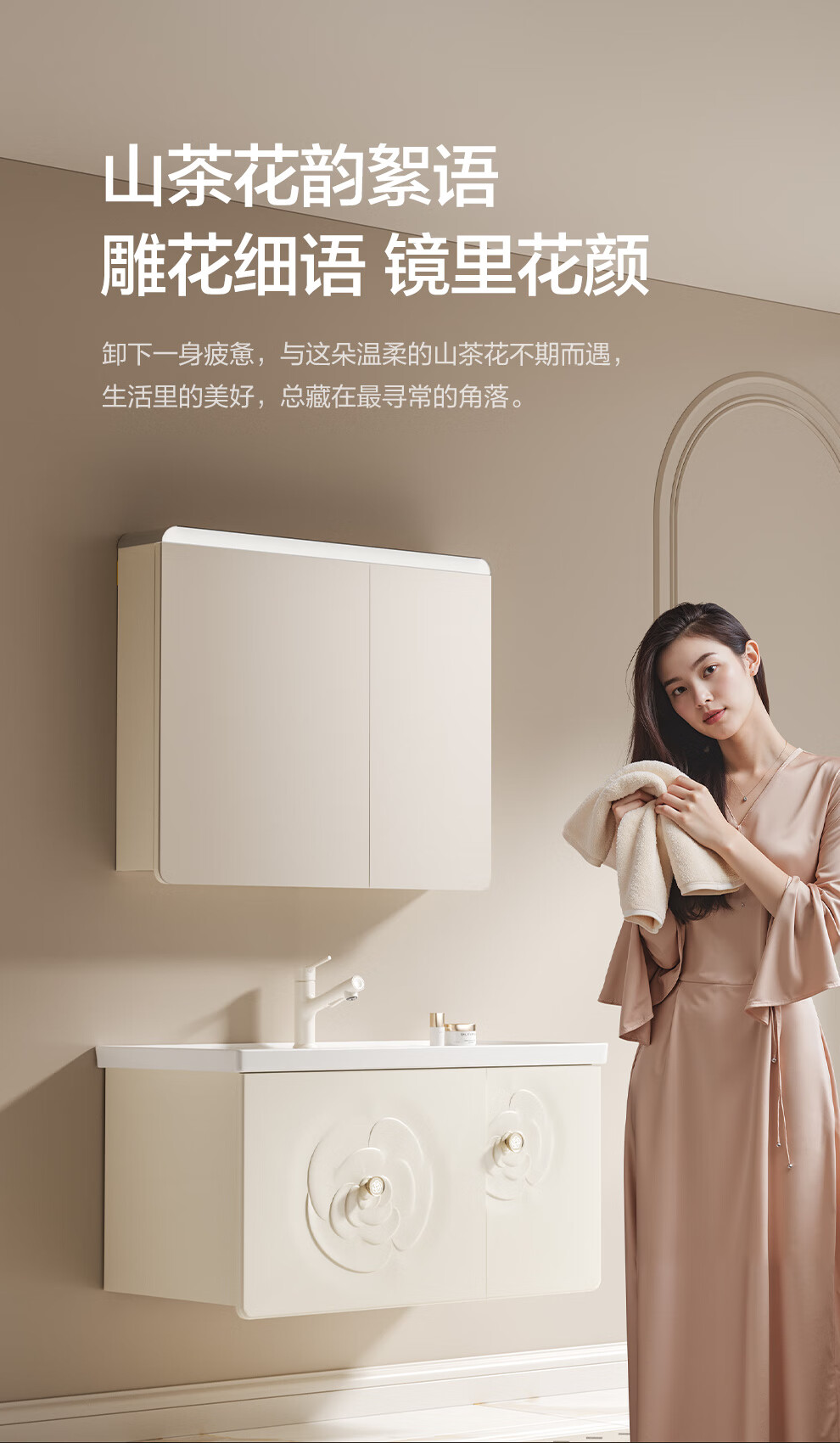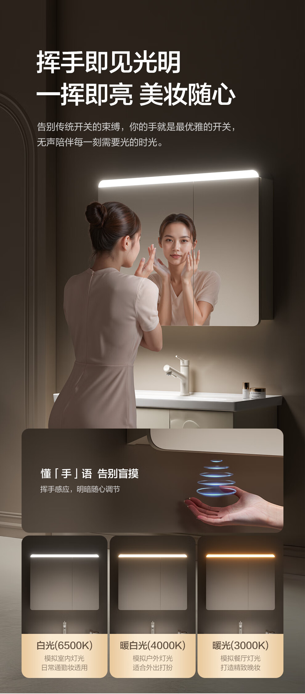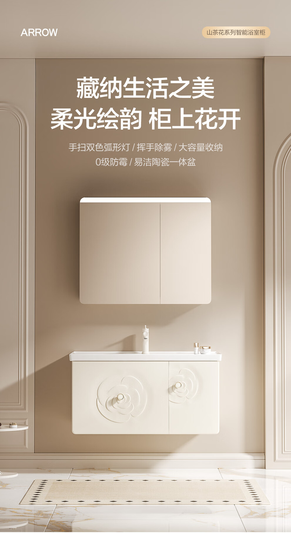 箭牌(ARROW)山茶花系列现代风美妆收纳智能镜柜洗脸盆洗漱台收纳柜浴室柜组合 挥手感应智能柜80cm