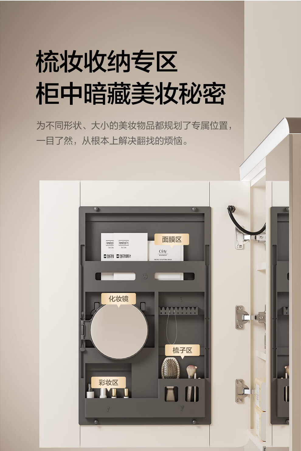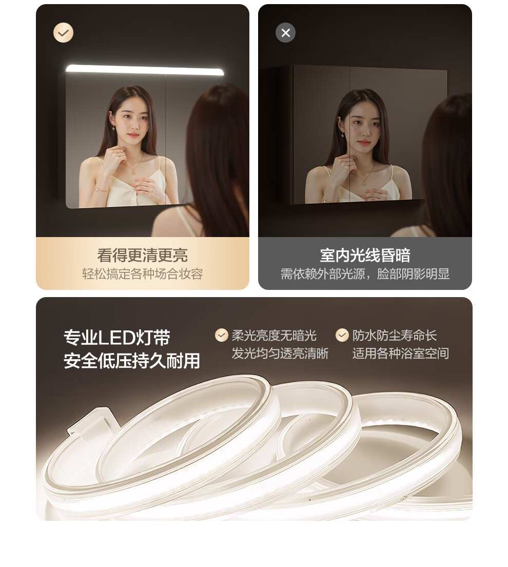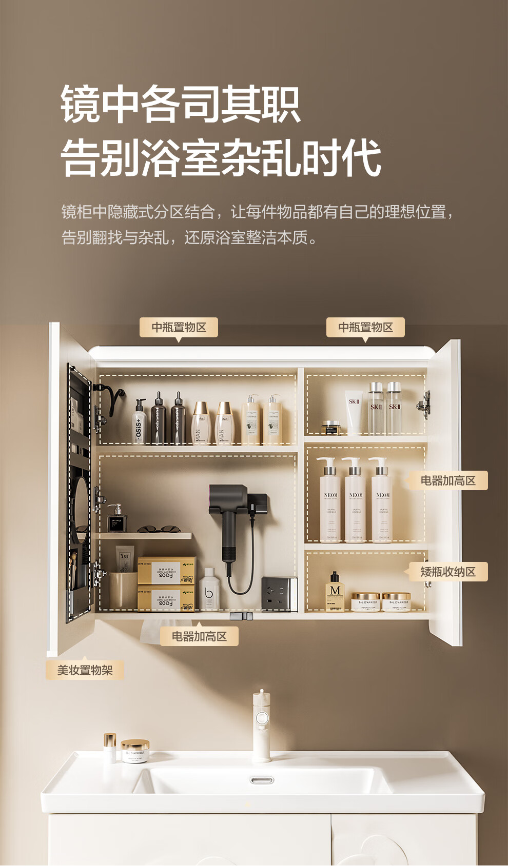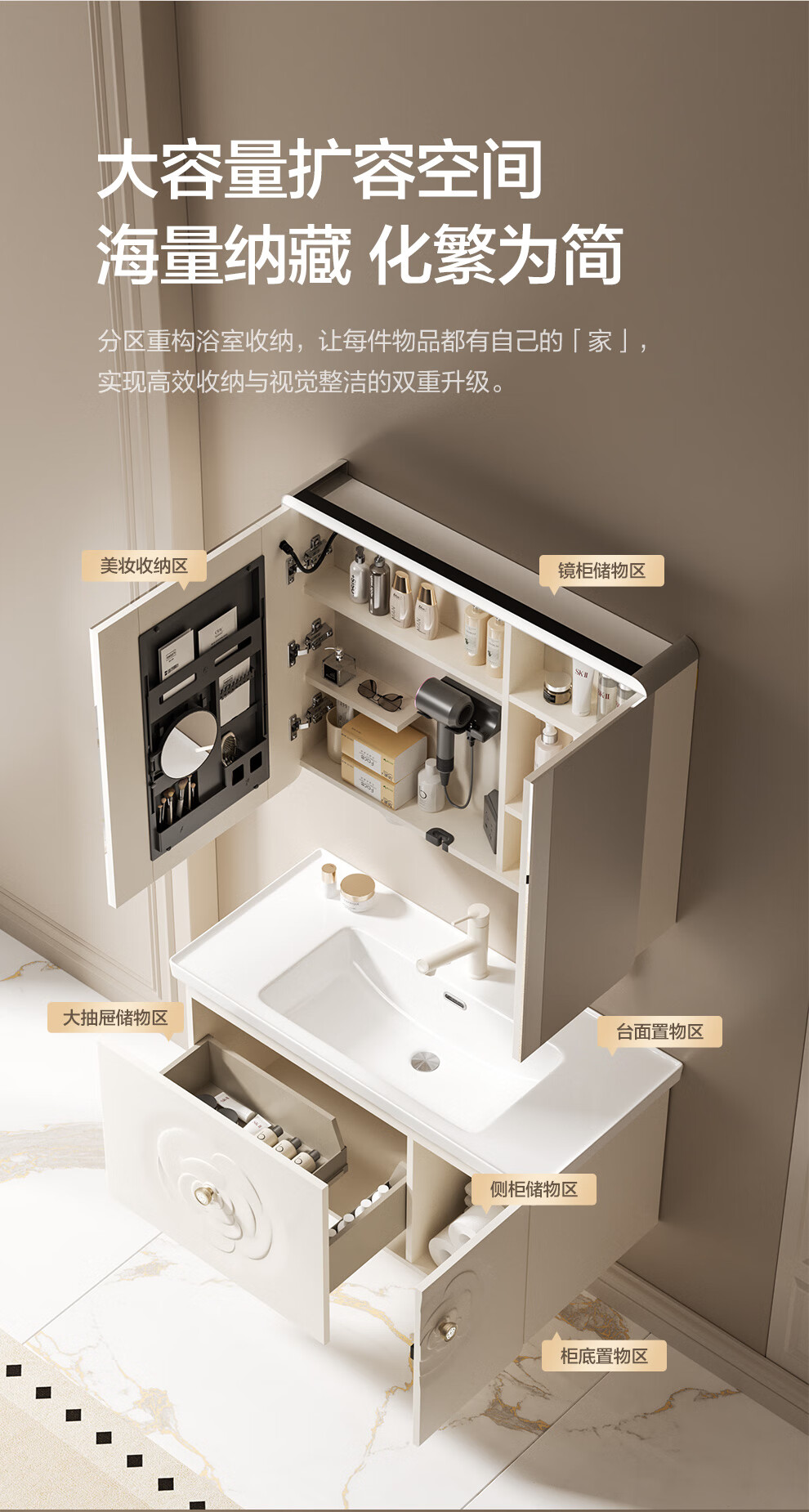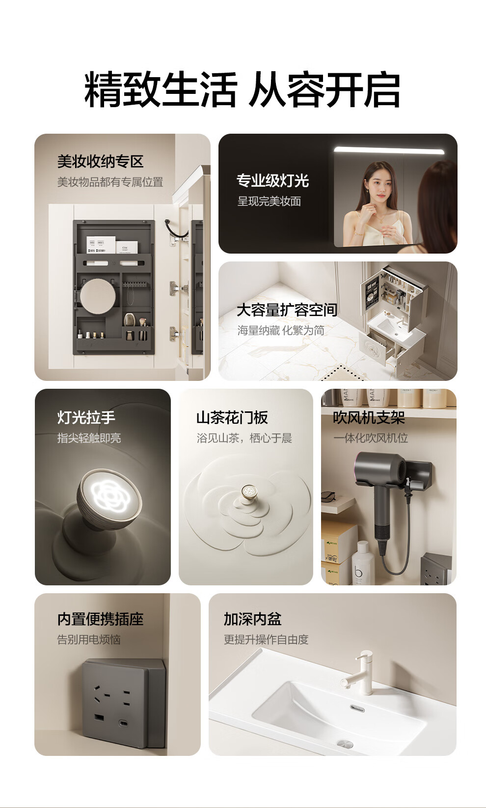 箭牌(ARROW)山茶花系列现代风美妆收纳智能镜柜洗脸盆洗漱台收纳柜浴室柜组合 挥手感应智能柜80cm