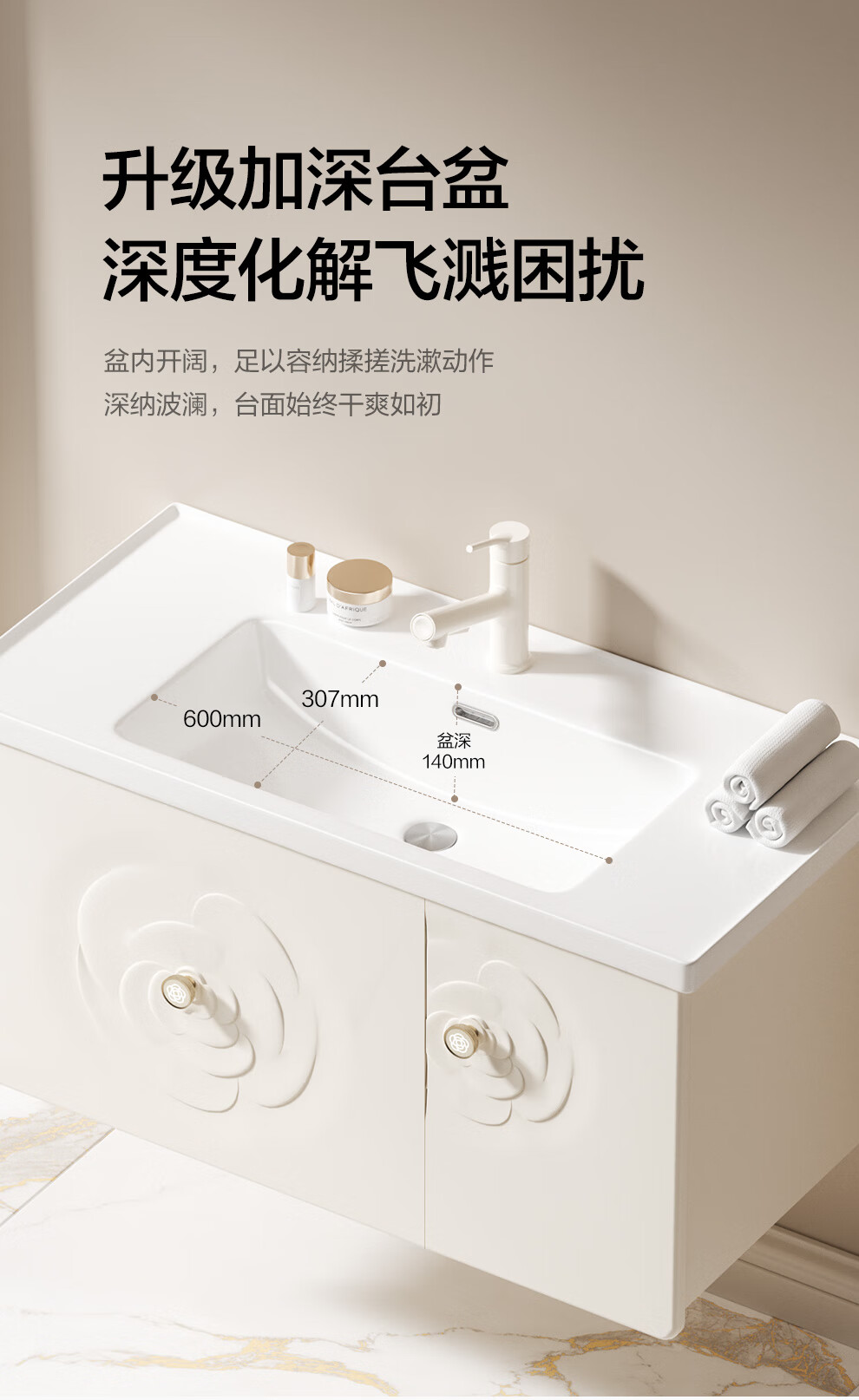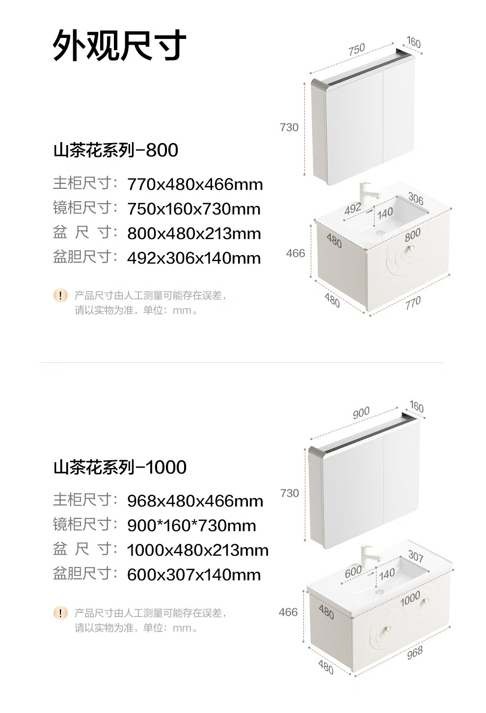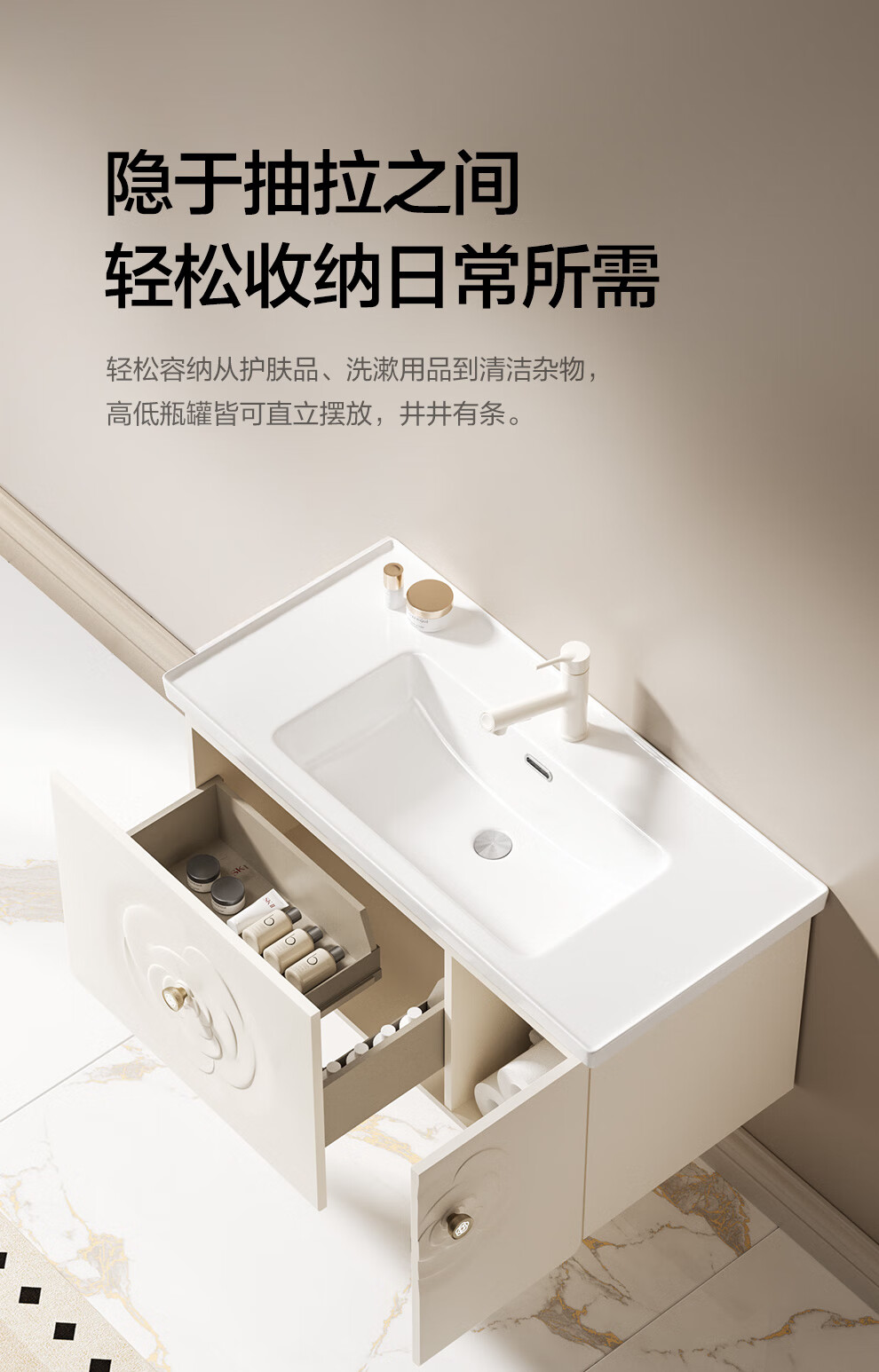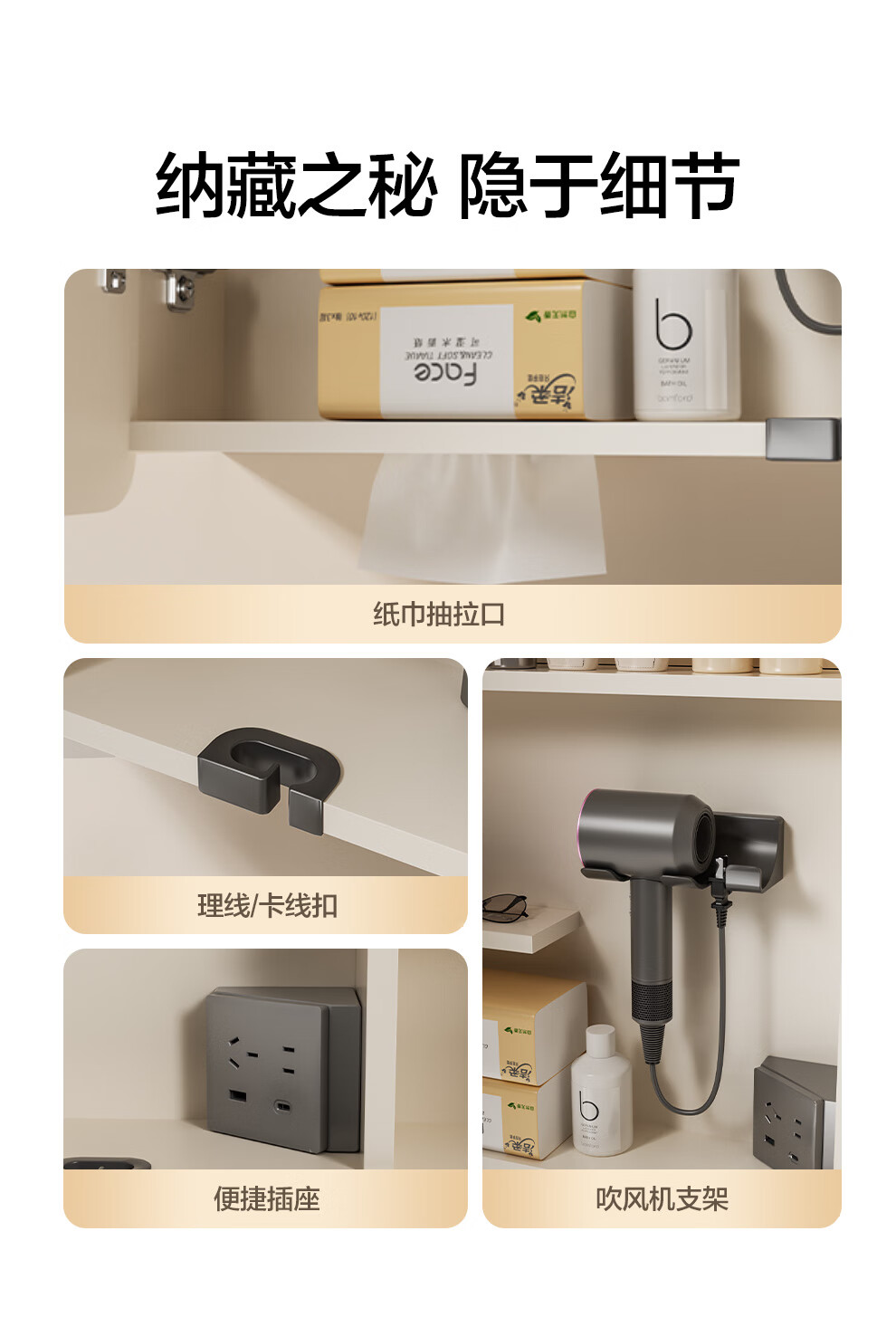 箭牌(ARROW)山茶花系列现代风美妆收纳智能镜柜洗脸盆洗漱台收纳柜浴室柜组合 挥手感应智能柜80cm