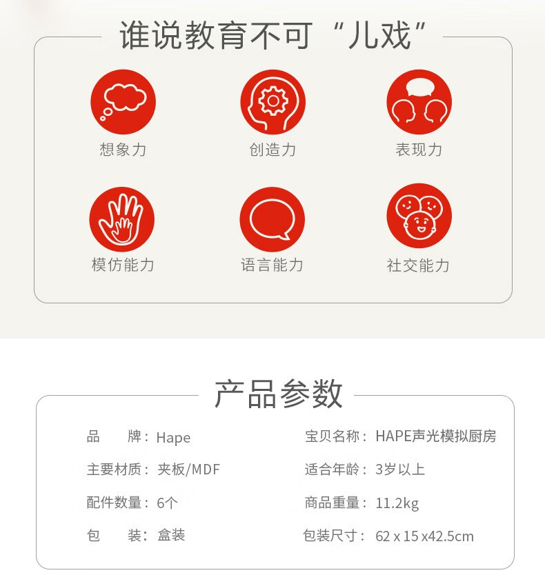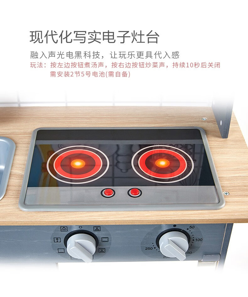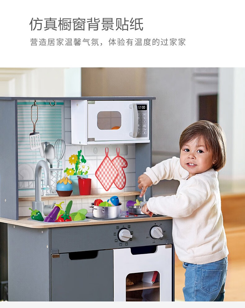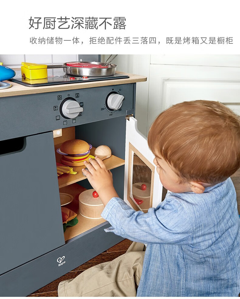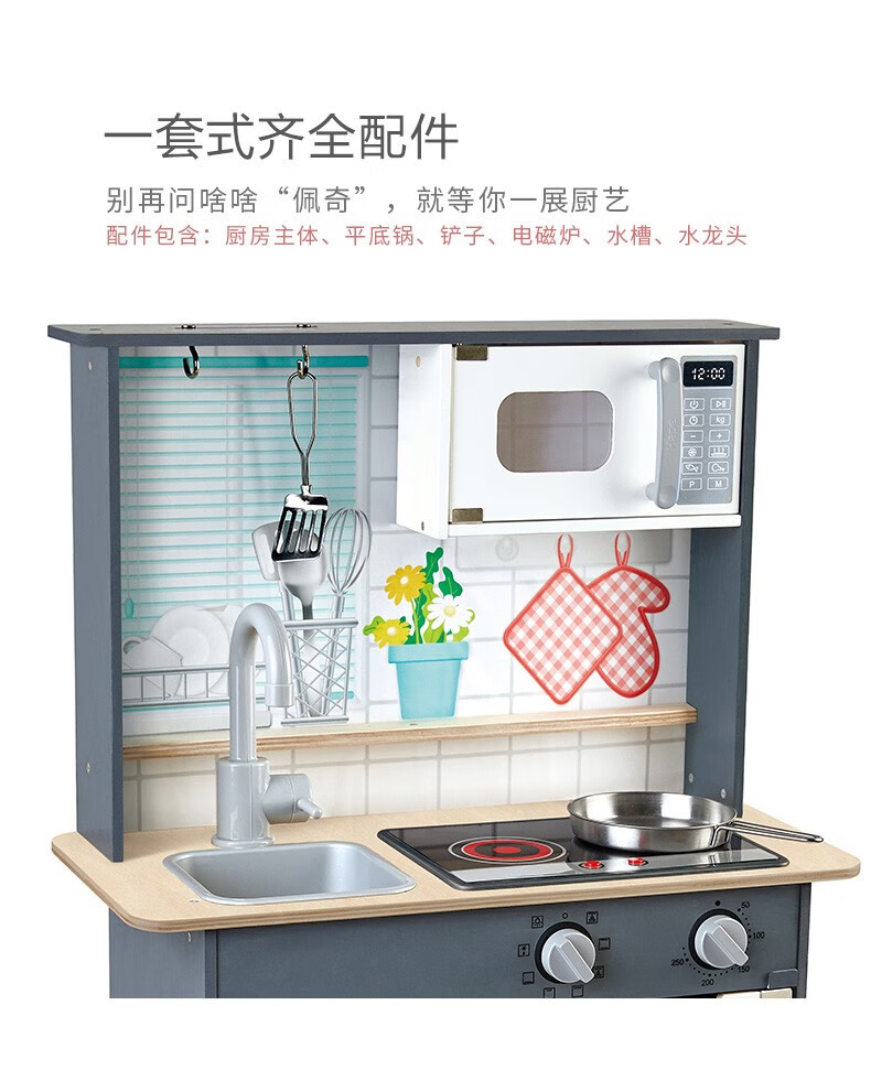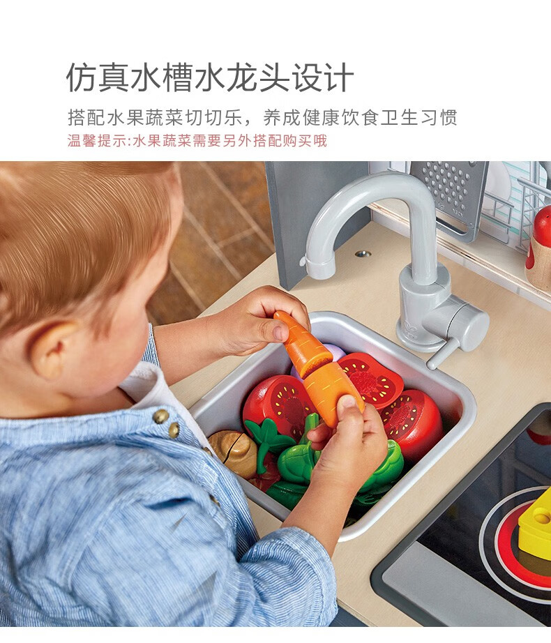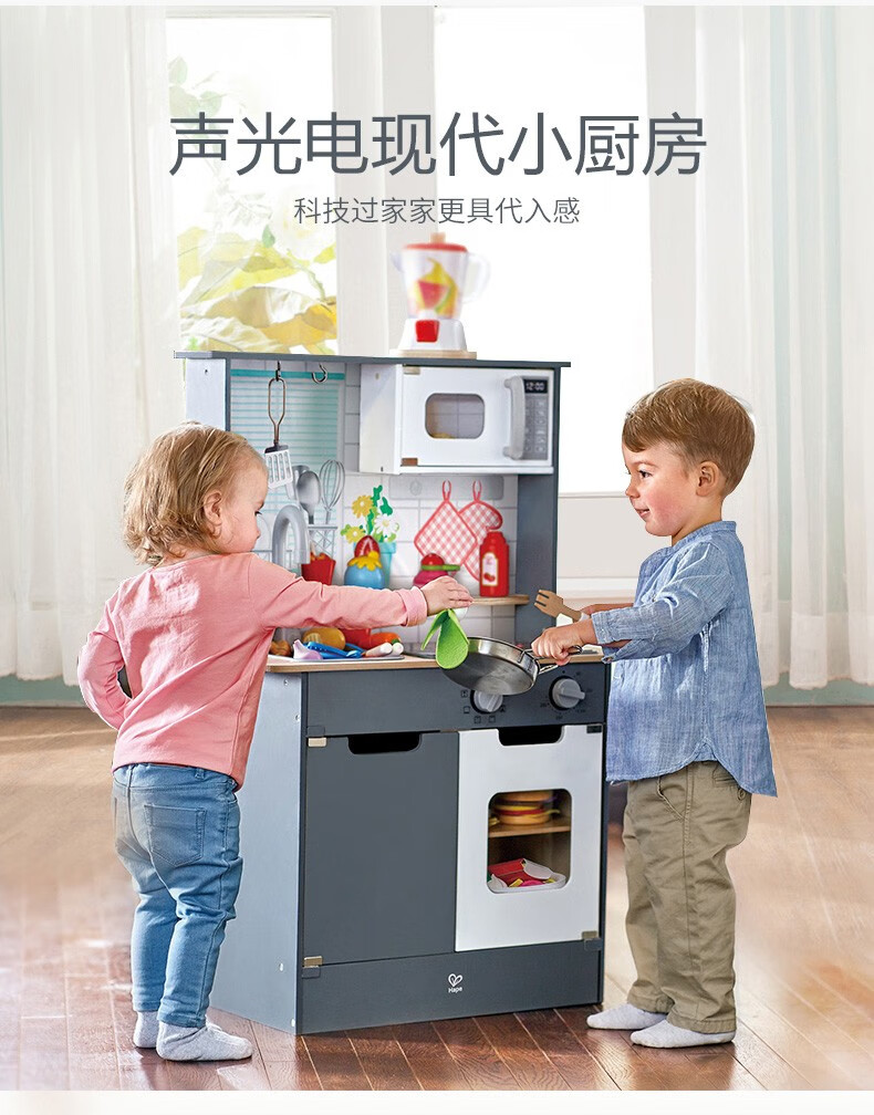 Hape厨房儿童仿真早教玩具声光模拟电子灶台多功能厨房套装岁男女孩 E3166超能声光模拟厨房