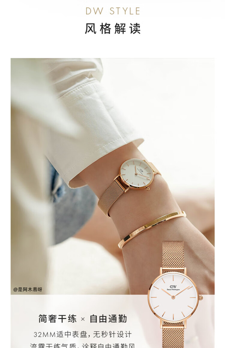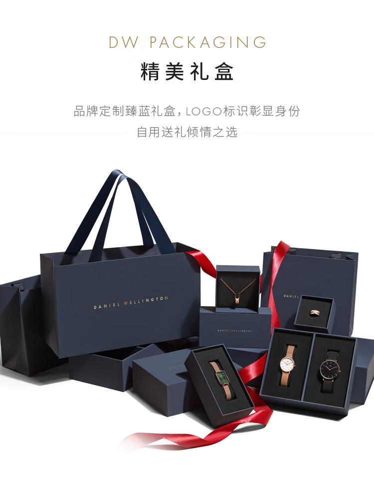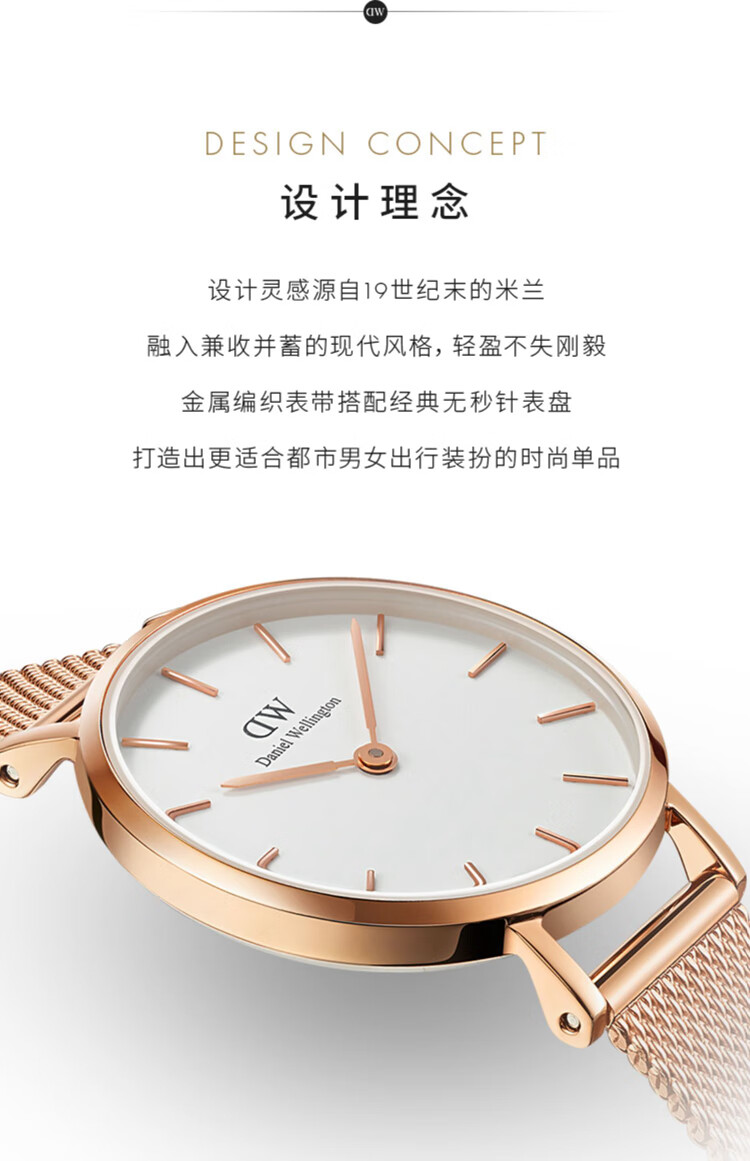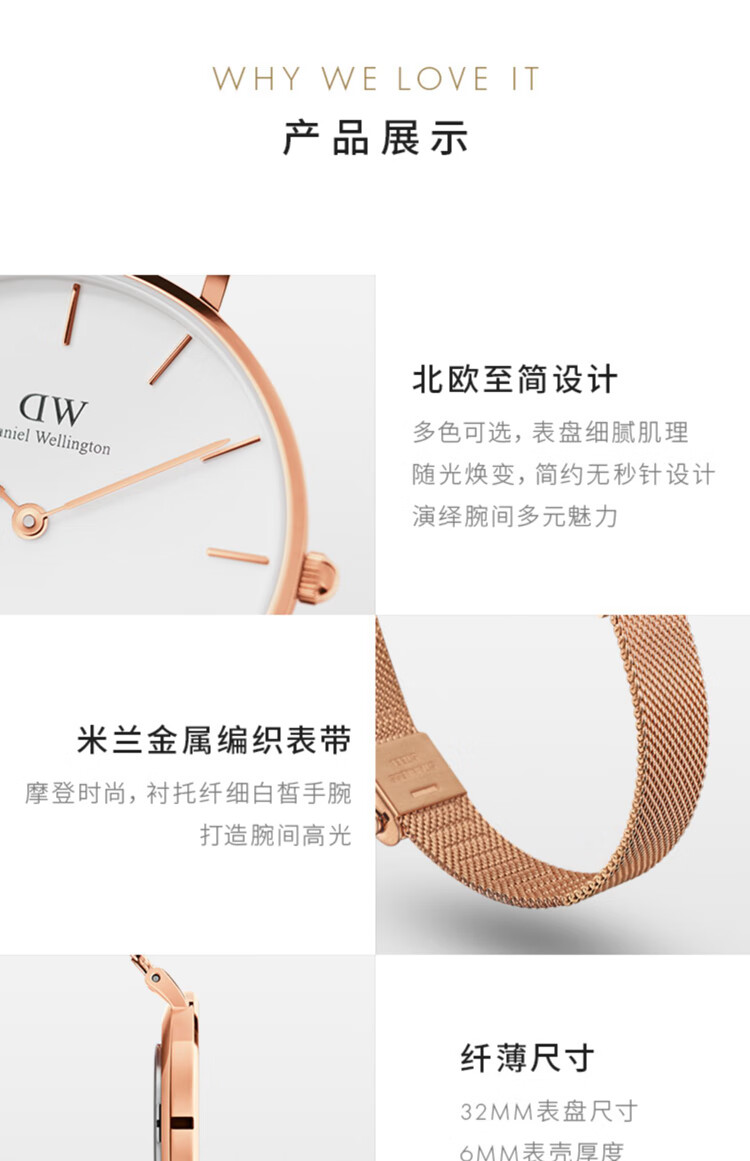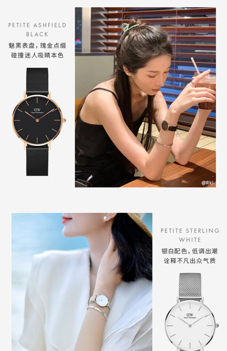 DanielWellingtonDW手表女 流金女士手表简奢石英欧美腕表 生日礼物送女友 32mm银边黑盘银色钢带-DW162