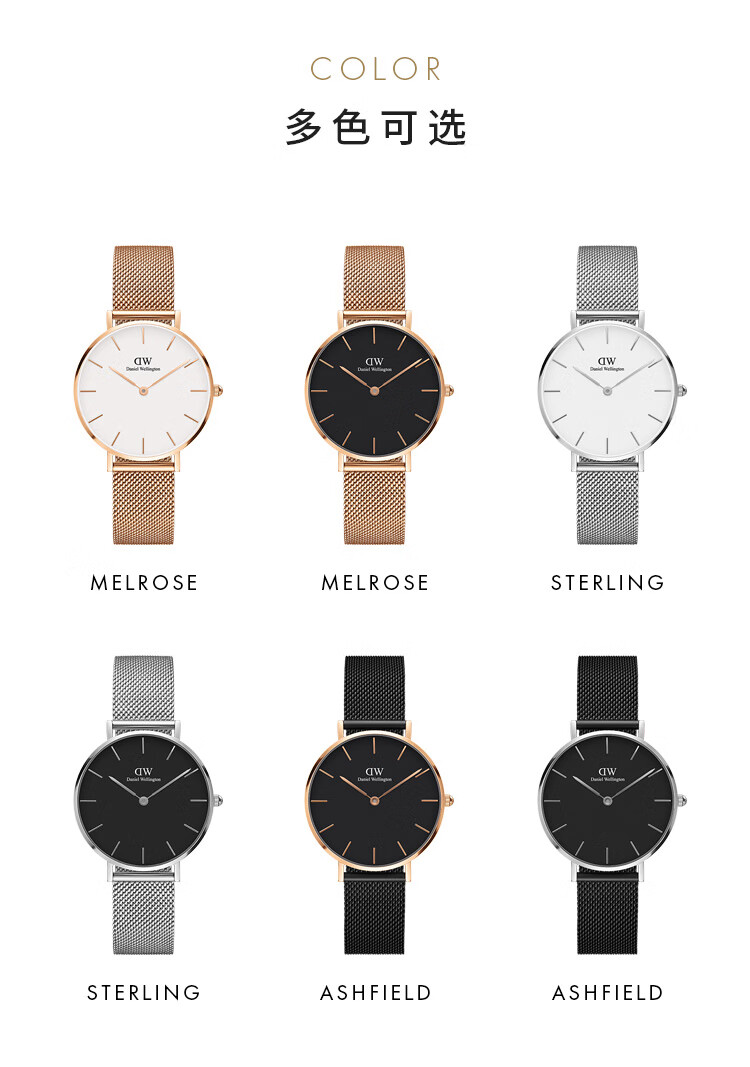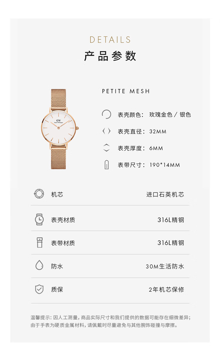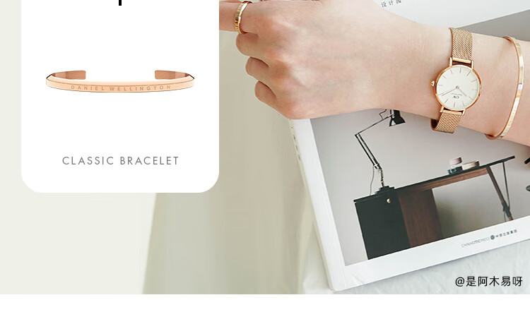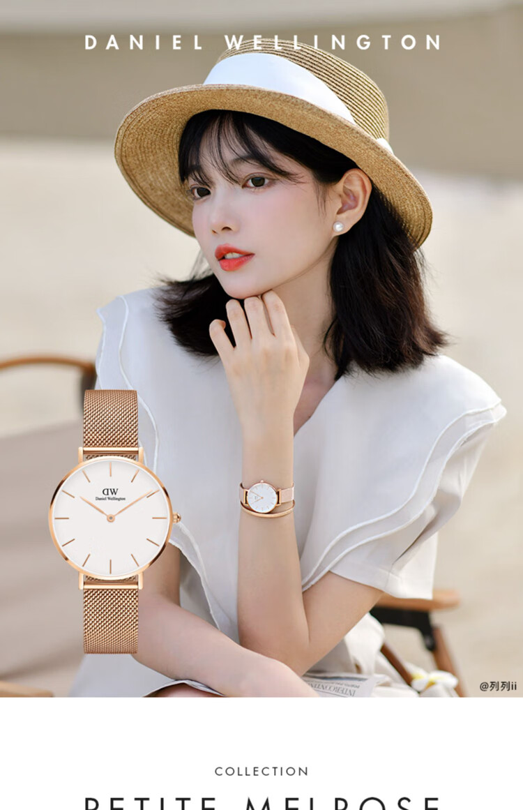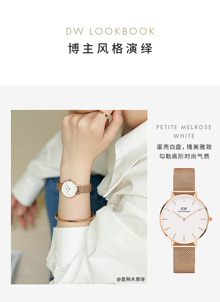 DanielWellingtonDW手表女 流金女士手表简奢石英欧美腕表 生日礼物送女友 32mm银边黑盘银色钢带-DW162