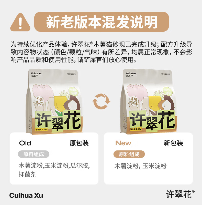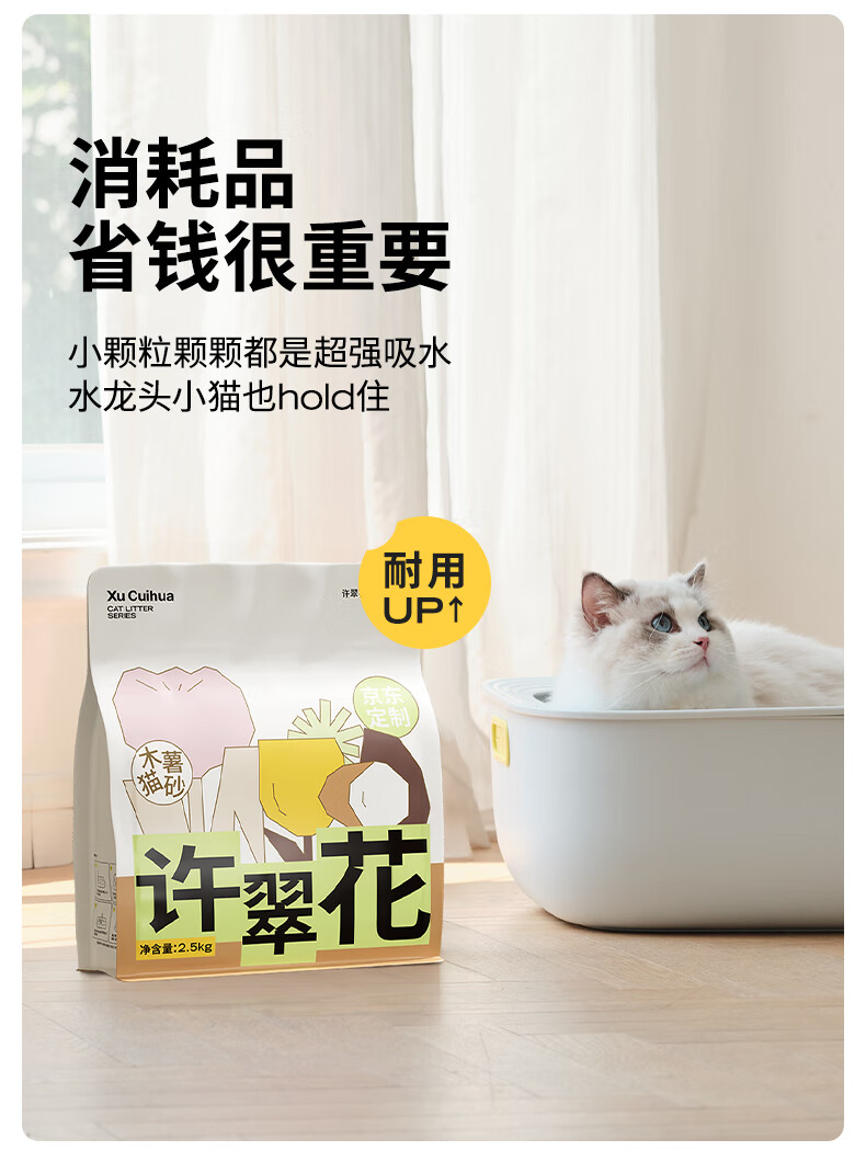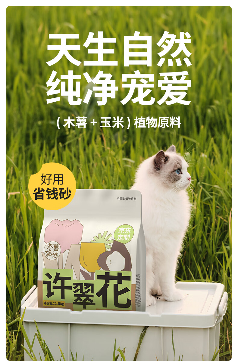 许翠花经典升级纯植物猫砂2.5kg*4包 除臭不易粘底强吸水易结团木薯猫砂