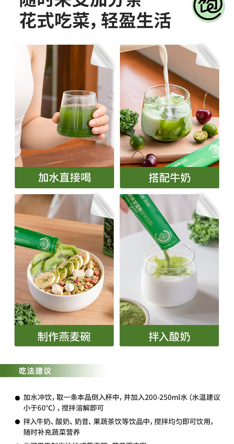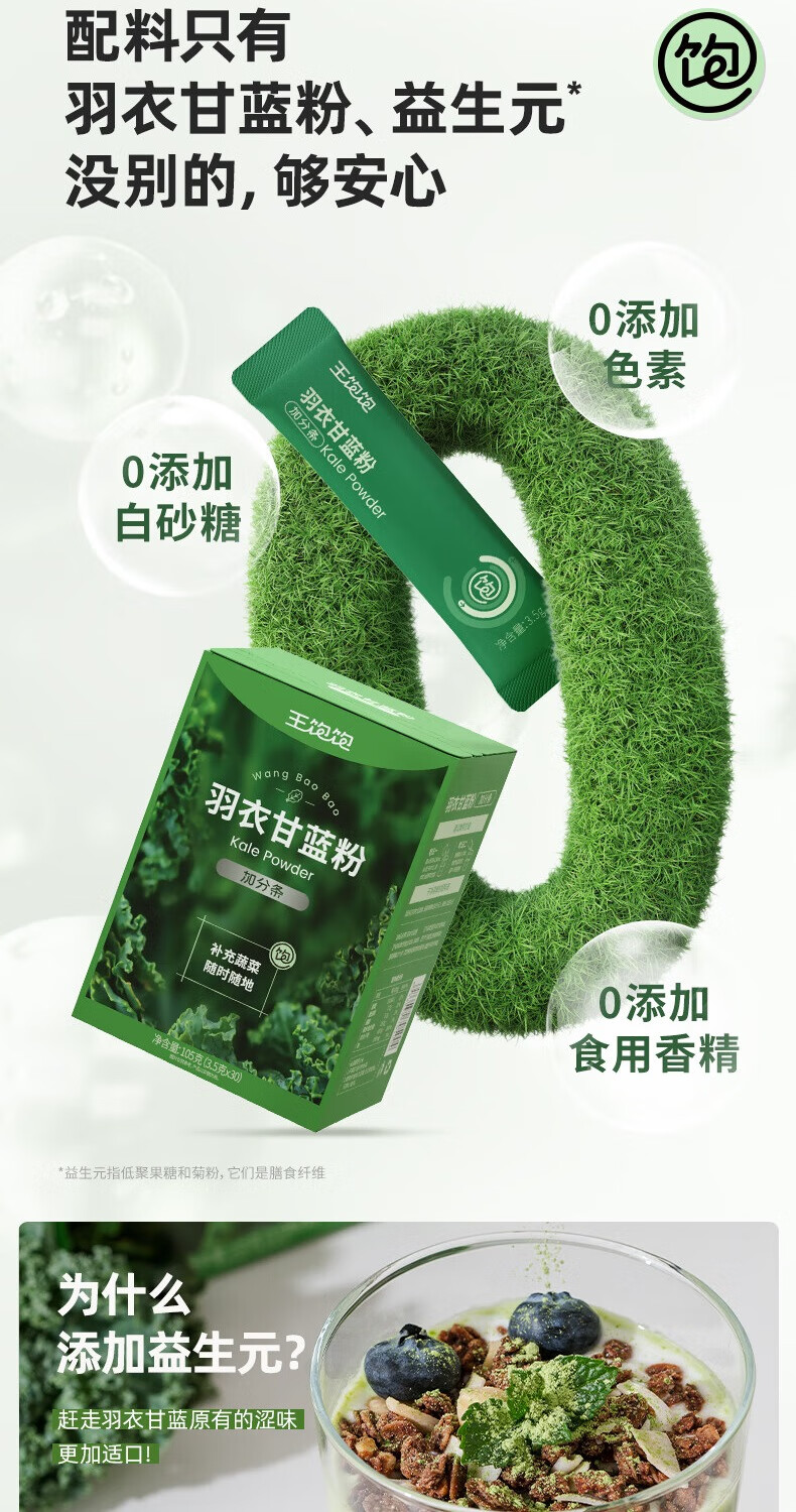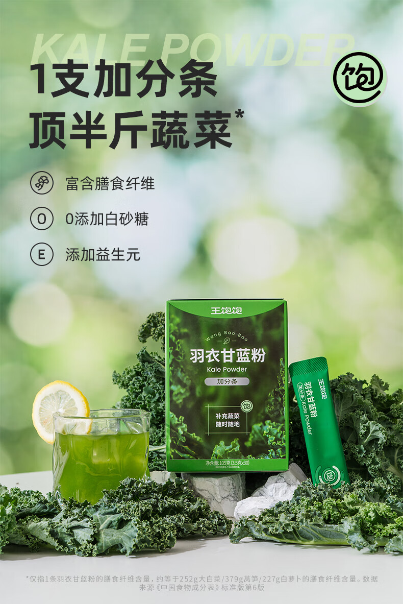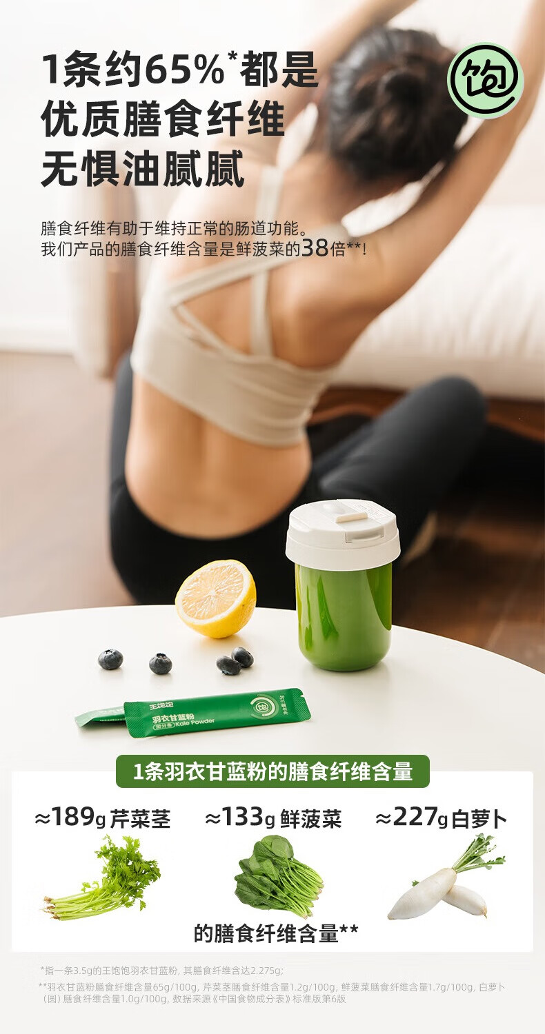 王饱饱【到手40条+赠品杯子】羽衣甘蓝粉 膳食纤维青汁代蔬菜粉 【赠杯子】30条盒装+10条袋装