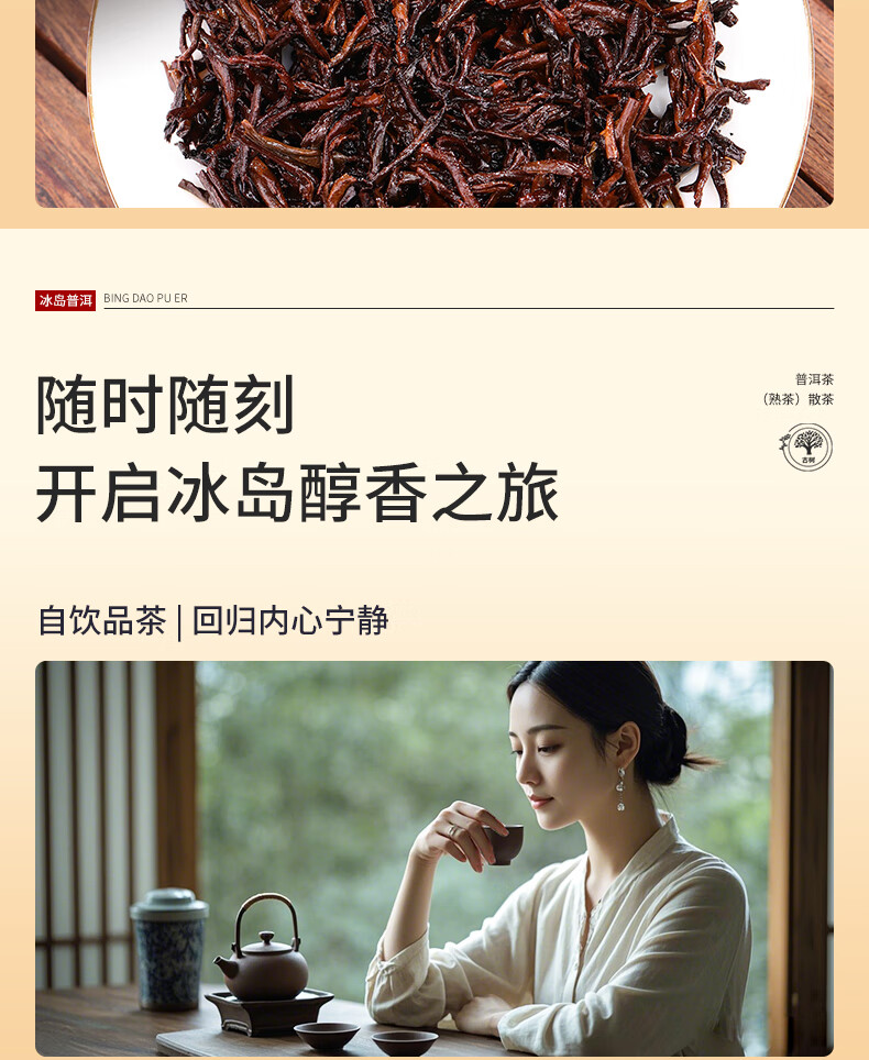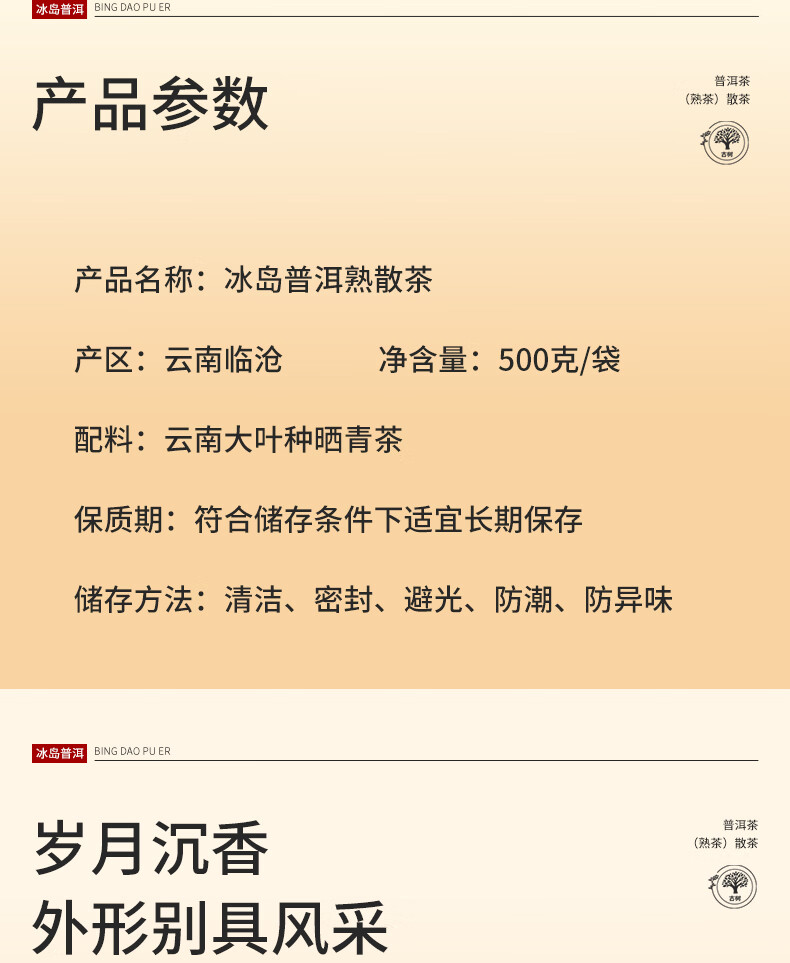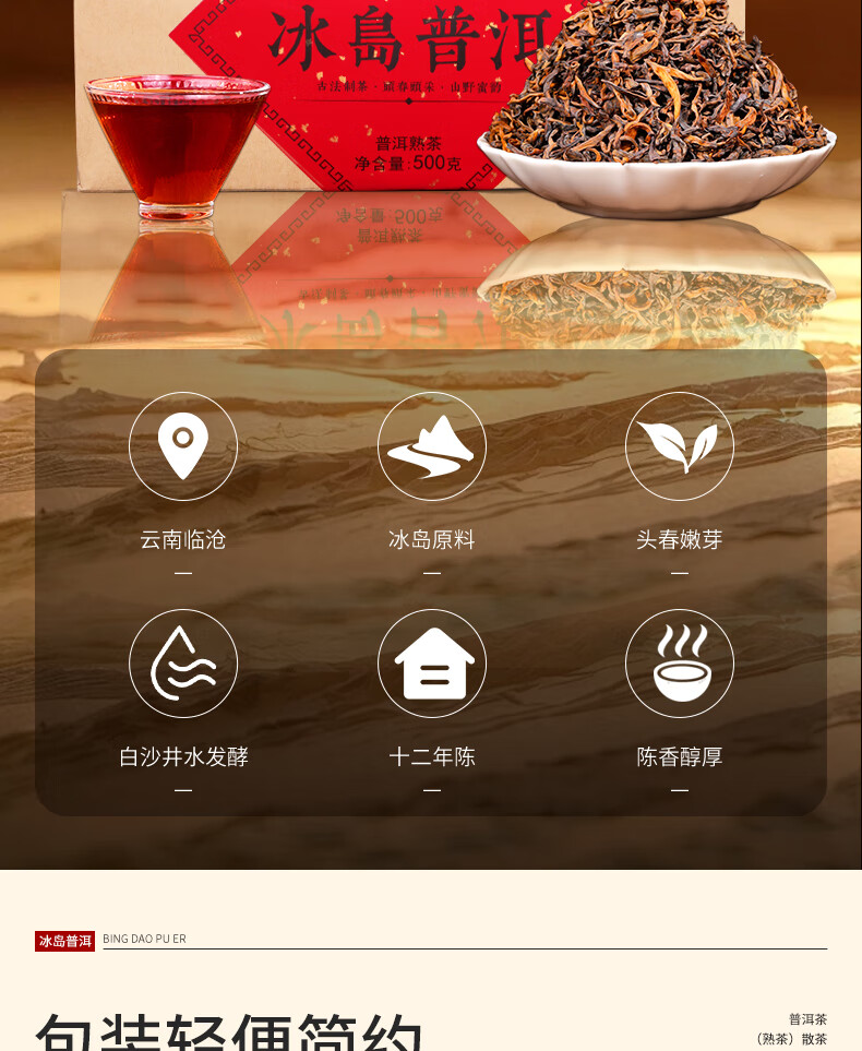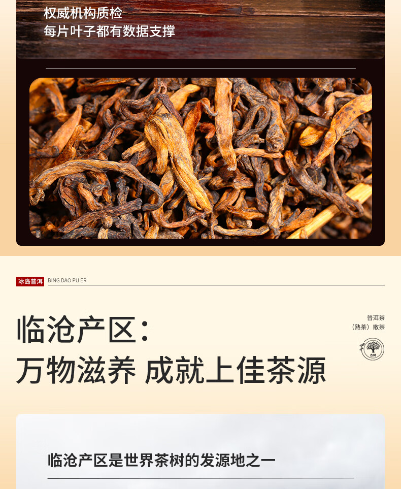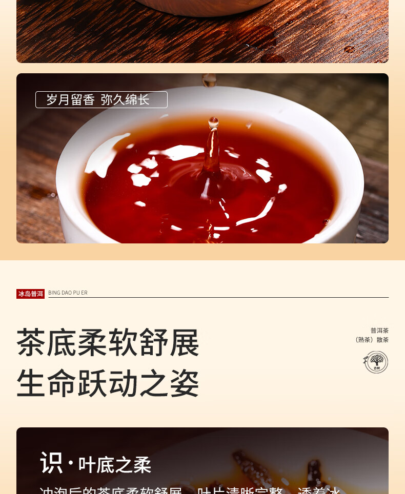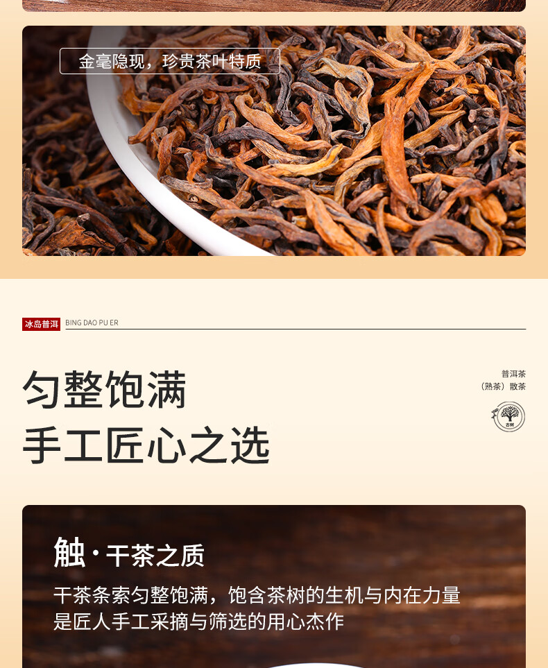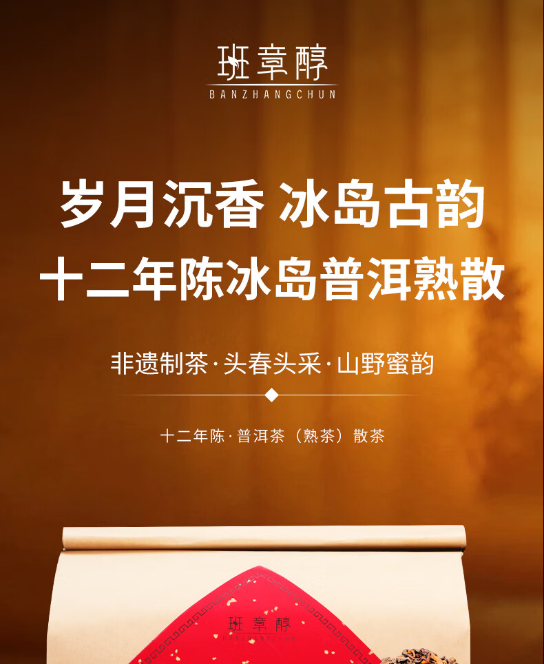 班章醇茶叶普洱茶熟茶十年以上特级冰岛古树宫廷熟普老普洱熟散茶500g