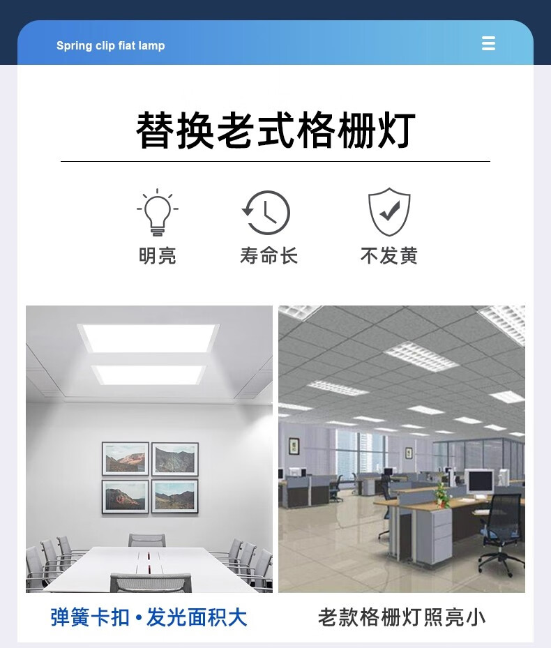 拉伯塔嵌入式弹簧卡扣平板LED吊顶灯595*595商场超市蜂窝石膏板600×600 600*600-38w-白光 【弹簧卡扣】适用于开孔